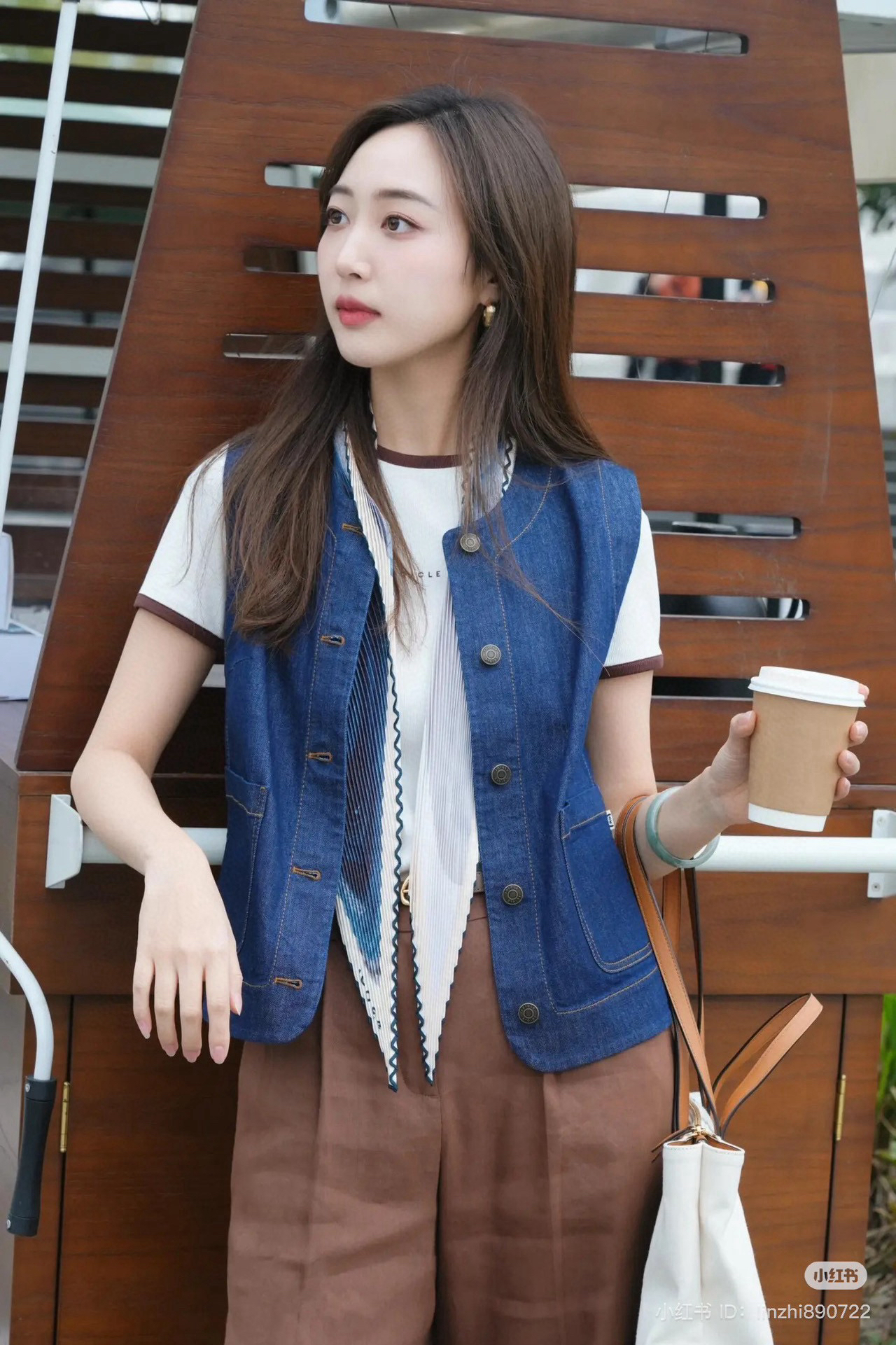 胖瓜167/135,前几天拍的,牛仔马甲38合适,牛仔外套38合适。牛仔裤28码略紧,裤子我要穿29更理想。