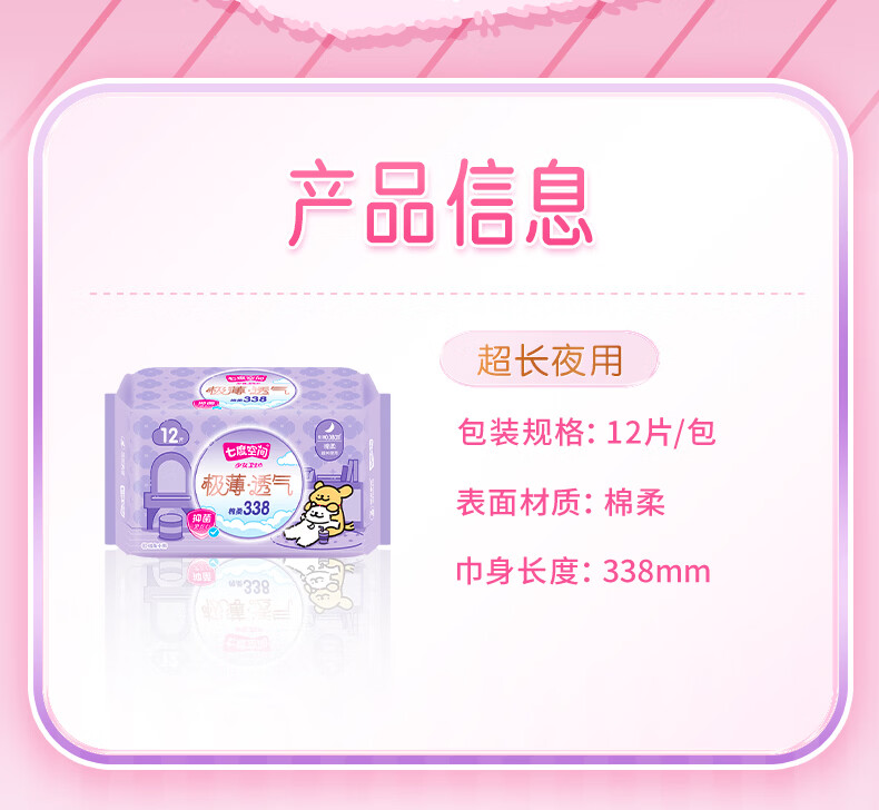 七度空间少女系列极薄透气棉柔超338mm 12片/包
