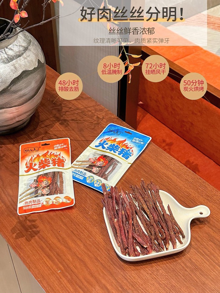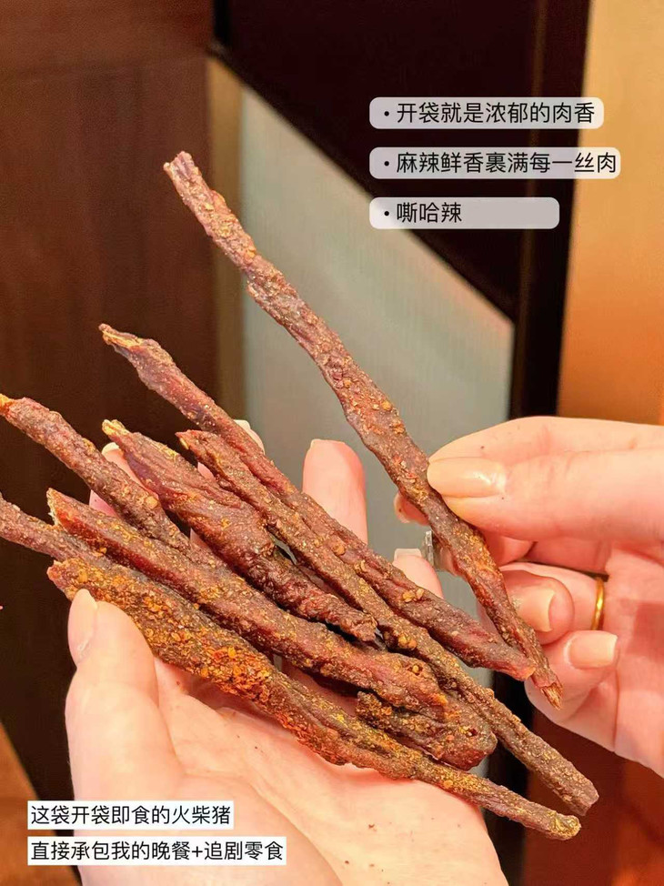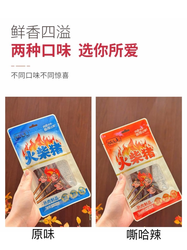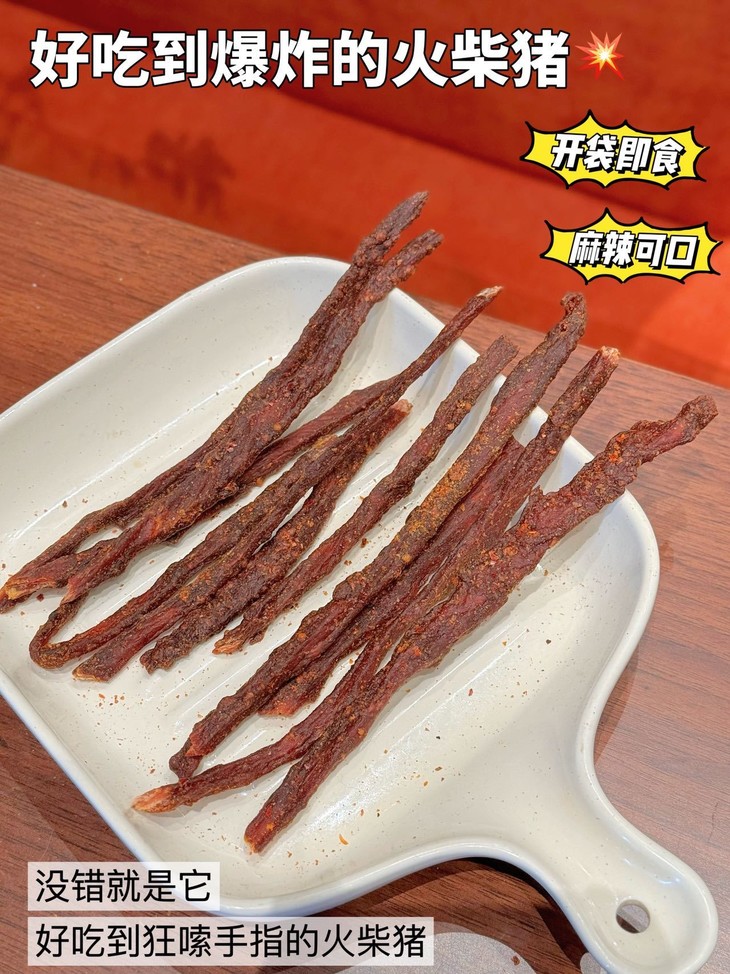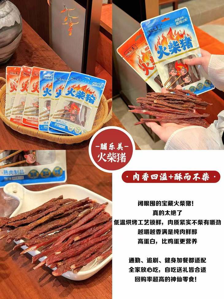 📅一根火柴猪承包你所有快乐时刻🥳 ✅追剧/看球必备——炫着火柴猪追剧,肉香配剧情,一集炫一包超满足!看球嚼一根,进球庆祝、没球解闷,嘶哈辣劲直接拉满氛围😎 ✅上班摸鱼小零嘴——下午困成狗?来根火柴猪!紧实肉香秒提神,独立包装不掉渣,优雅摸鱼不脏键盘💻 ✅深夜解馋救星——嘴馋怕胖又怕麻烦?撕开即食火柴猪,辣香够味超解馋,不用洗碗,吃完幸福感爆棚🥰