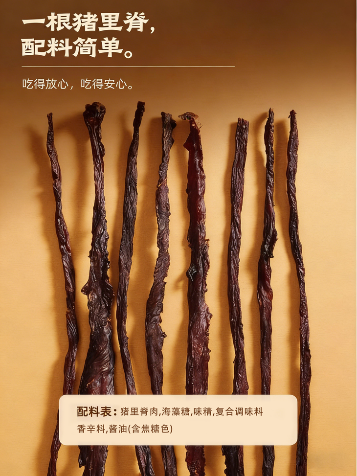 🌟精选原料与工艺✅ 核心原料:100%原切猪里脊肉🥩 不是边角料❗️不是拼接肉❗️更没有淀粉充数😤 每一根都是实打实的猪里脊 四五斤新鲜猪肉才能制成一斤肉干🤯 所以肉质特别饱满扎实 吃起来全是纯肉的香味🥩 拒绝“挂羊头卖狗肉”的廉价货😠