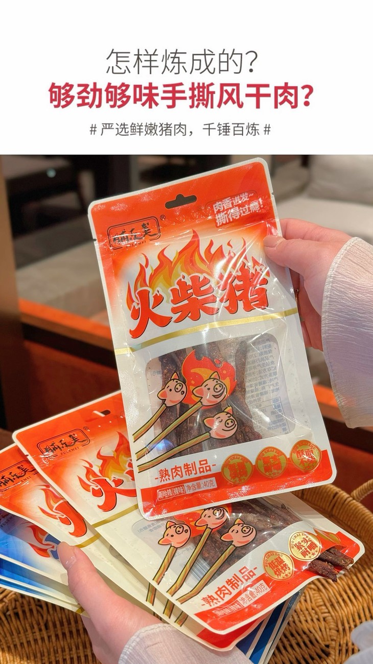 🔥×马同款🔥减脂期续命零食❗【脯乐美火柴猪】39.9💰抢4袋❗肉质酥脆嚼劲足💥辣劲足不烧胃🌶️肉香浓郁🥩麻辣鲜香🤤