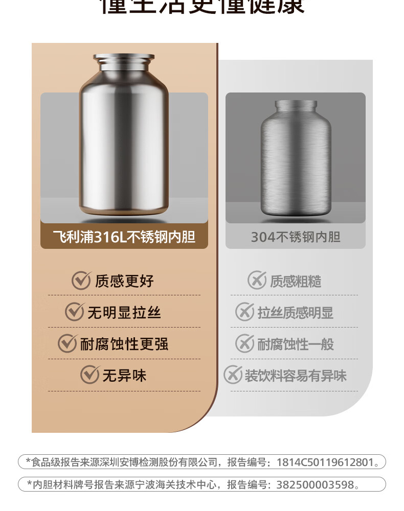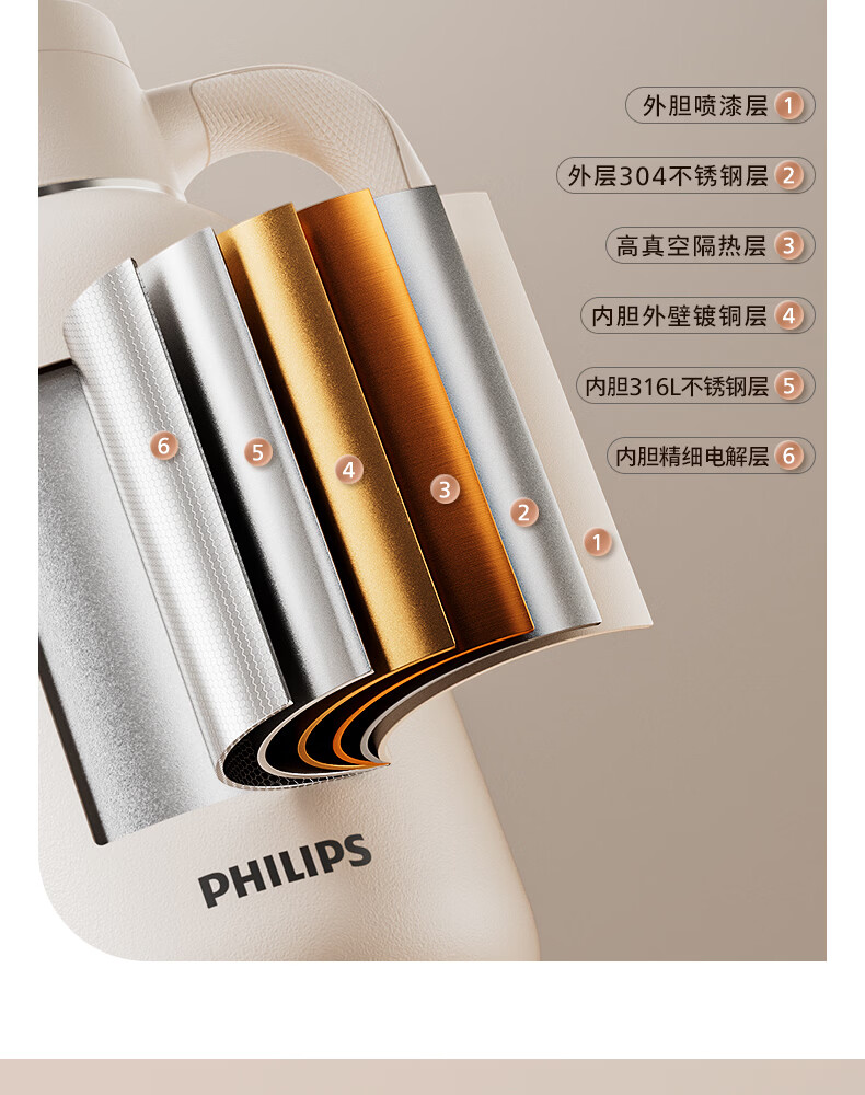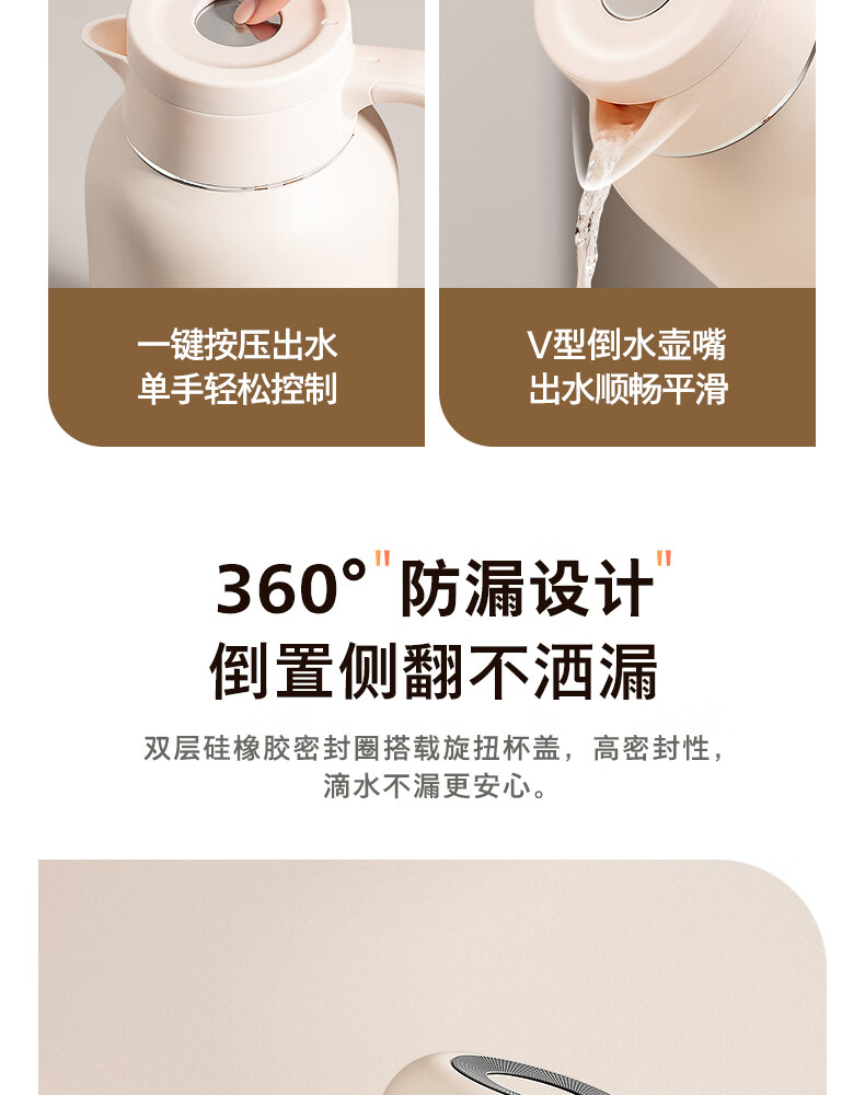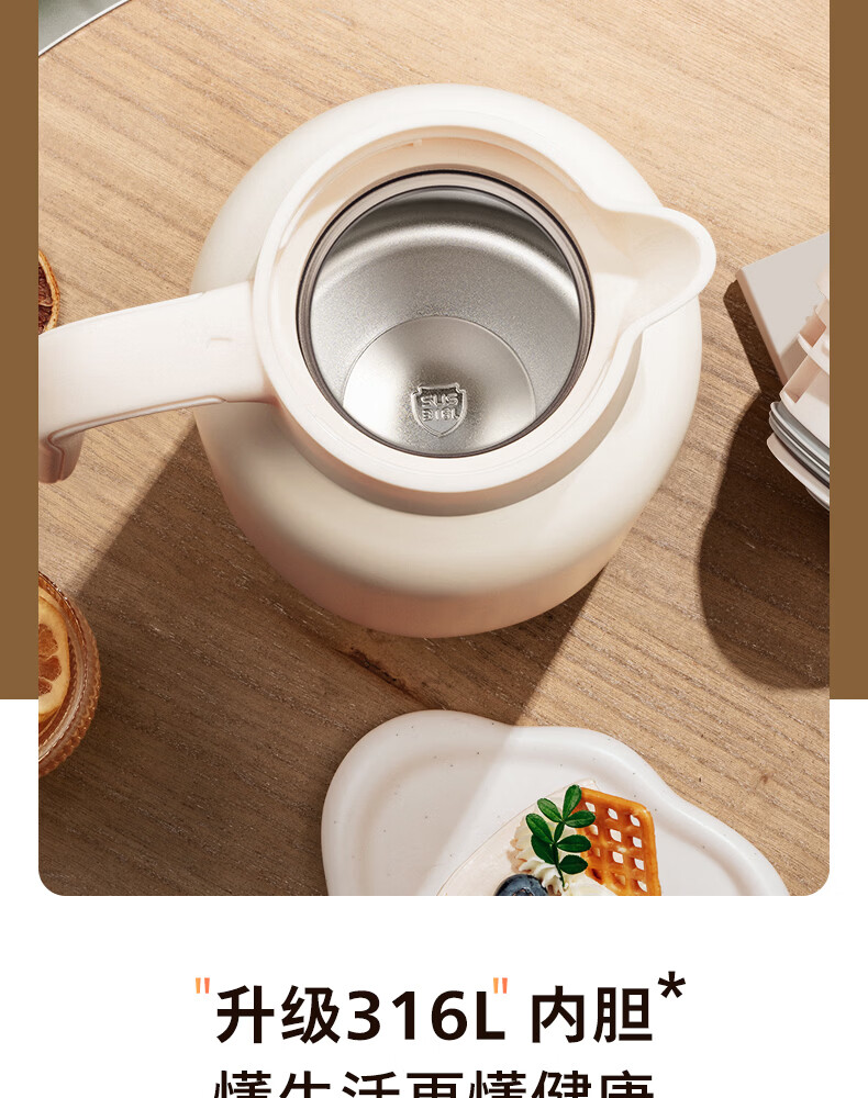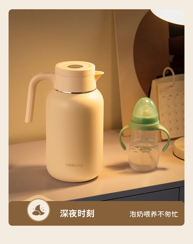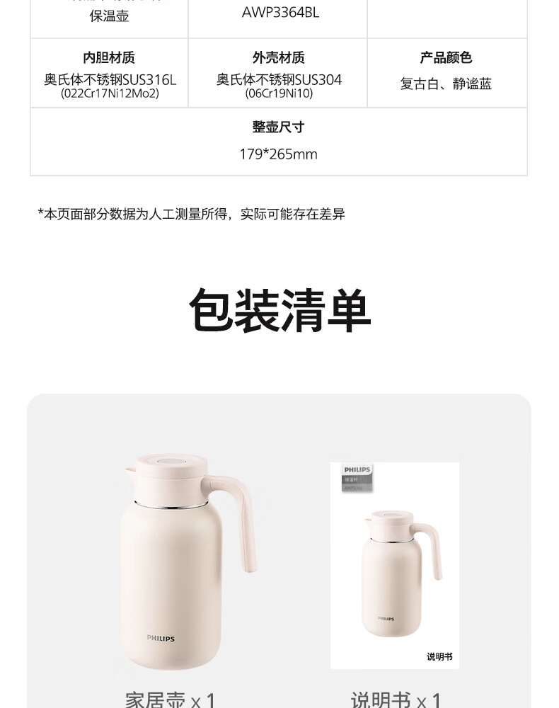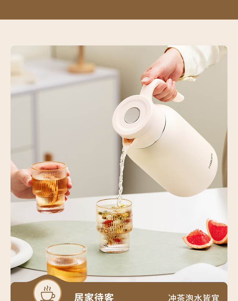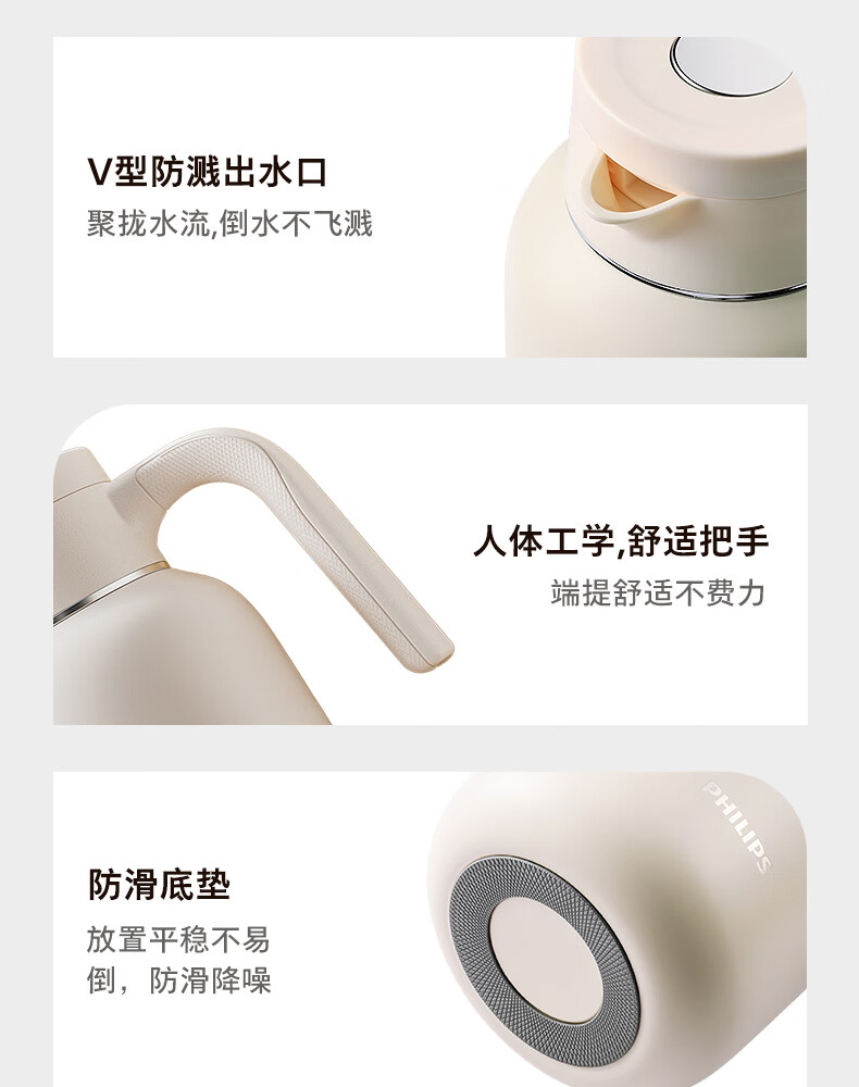 飞利浦PHILIPS保温壶家用 大容量热水壶 316不锈钢内胆保温瓶 按压式开水瓶2L容量 AWP3364