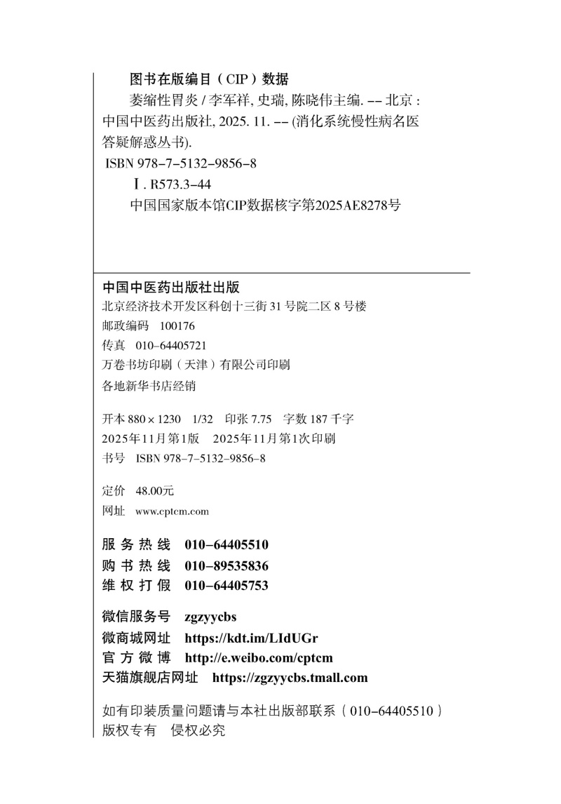 书名:萎缩性胃炎 消化系统慢性病名医答疑解惑丛书