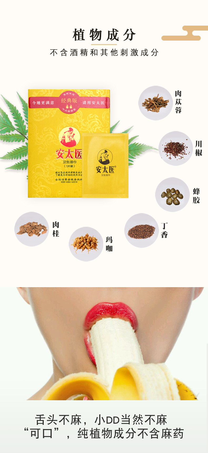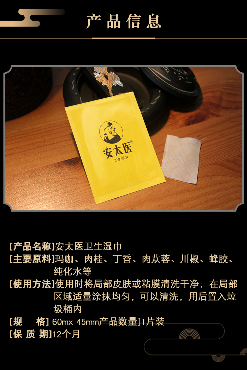 安太医延时湿巾 男用延时中式延时喷雾伴侣 成人情趣用品 经典版1片装