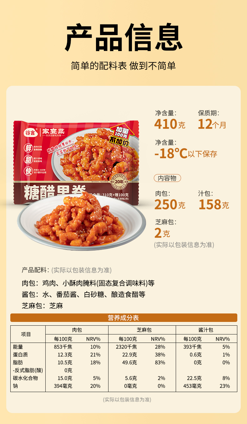 糖醋里脊410g*5袋方便菜半成品-不支持7天无理由