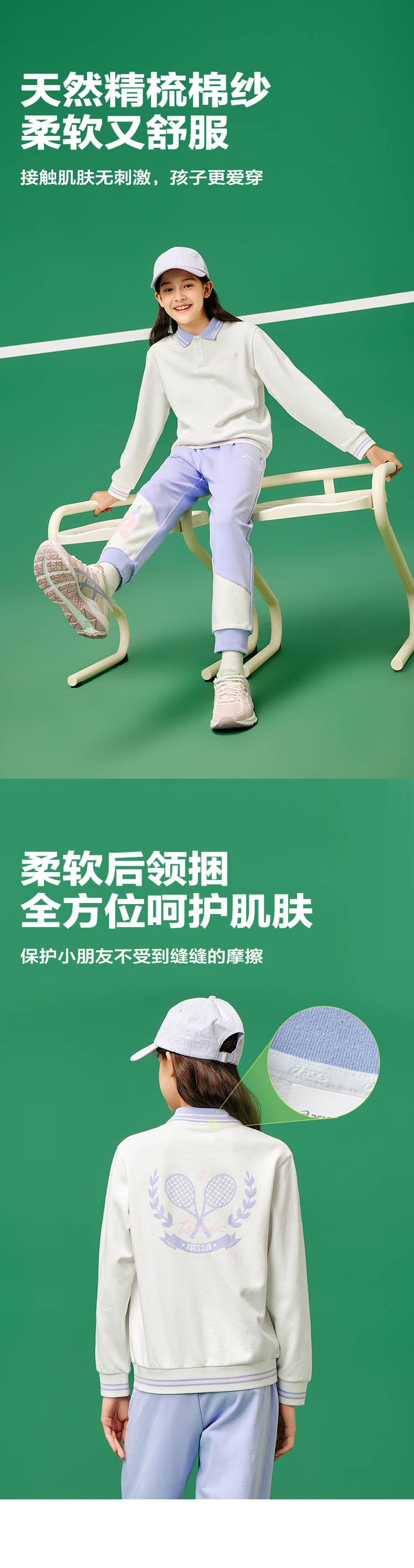 【商城同款】ASICS/亚瑟士童装2024年秋季卫衣网球运动卫衣T恤新