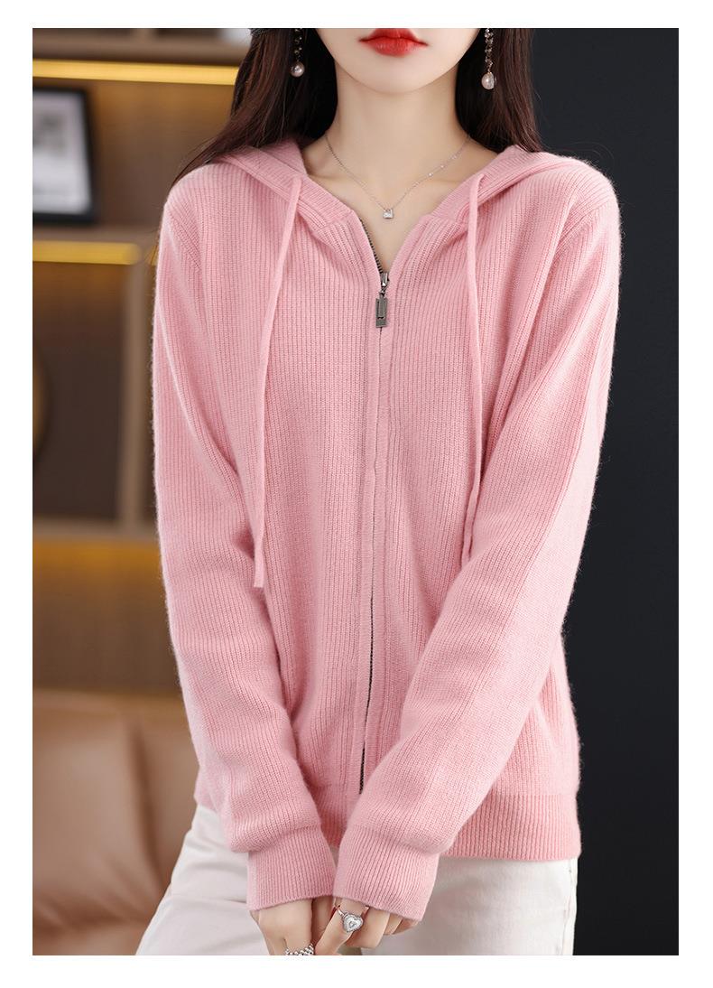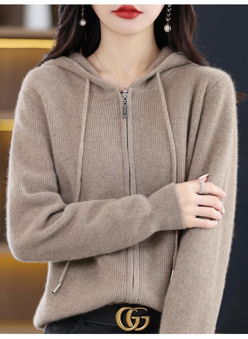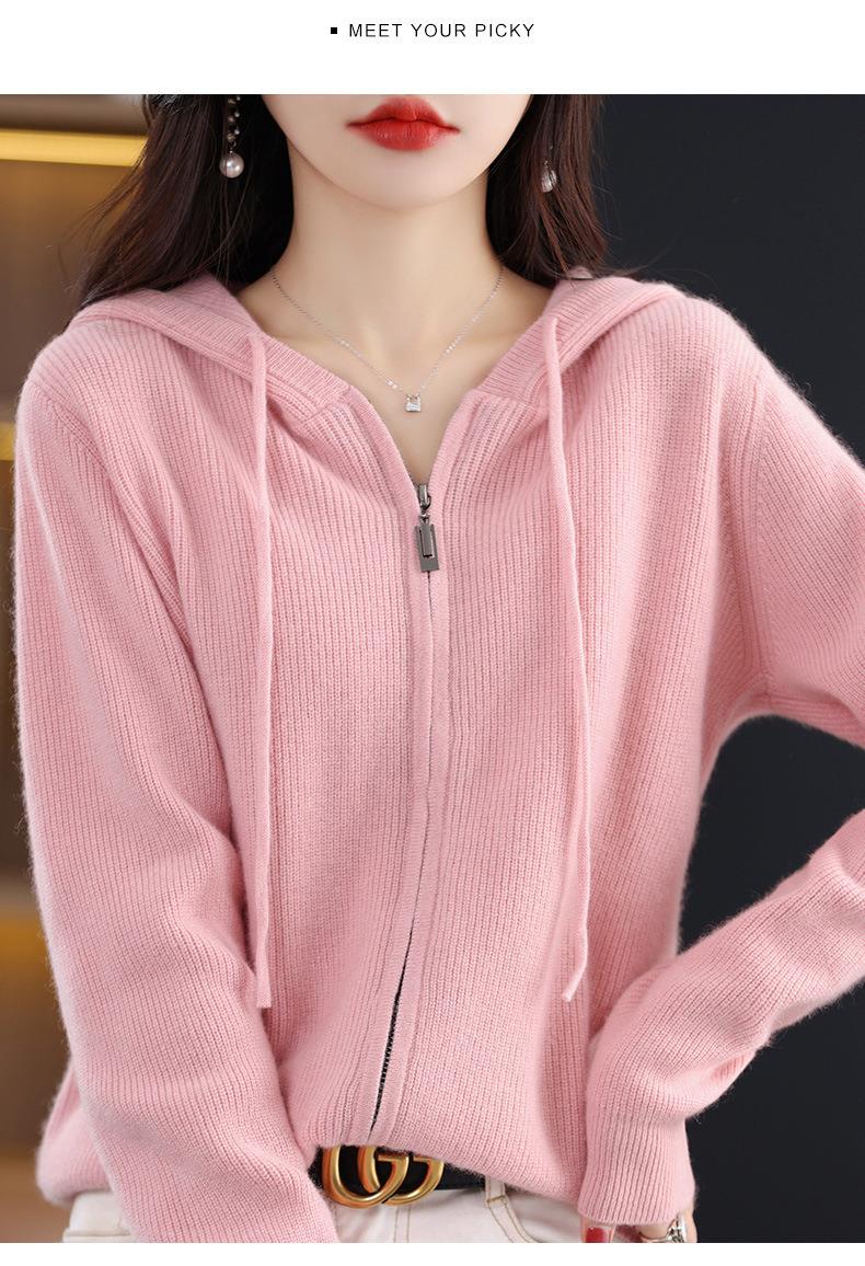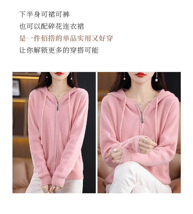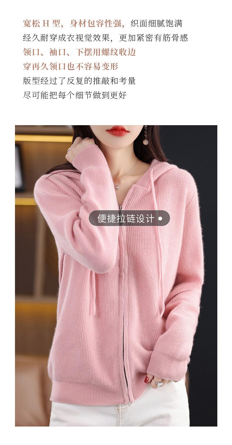 2023秋季套头毛衣女针织衫帽衫连帽外套拉链羊毛绒衫
