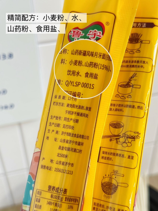✅配料干净,吃着才放心 现在吃东西就怕添加剂多,这款月牙面完全不用担心,配料表干干净净,只有小麦粉、15%山药粉、饮用水、食用盐 没有防腐剂没有色素没有香精,就是纯粹的食材味道,给家里人吃特别安心,就算是小宝宝也能放心吃🥰 🟢对于血糖高的人来说,也是不错的选择,因为山药的升糖指数不高 加上膳食纤维丰富,吃了不会让血糖一下子升上去,还能补充营养❗❗