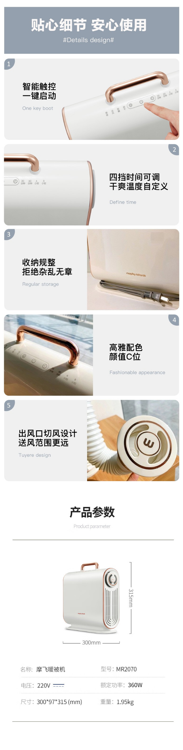 摩飞电器(13526) 烘干机家用干衣机暖被机烘被机烘鞋器小型可折叠烘衣机 MR2070