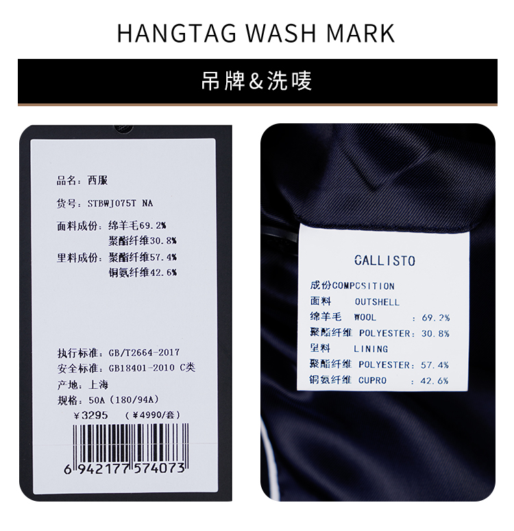 callisto绵羊毛混纺西服 STBWJ075T