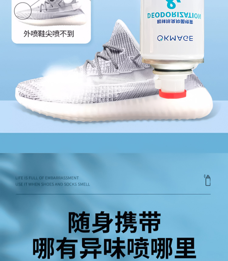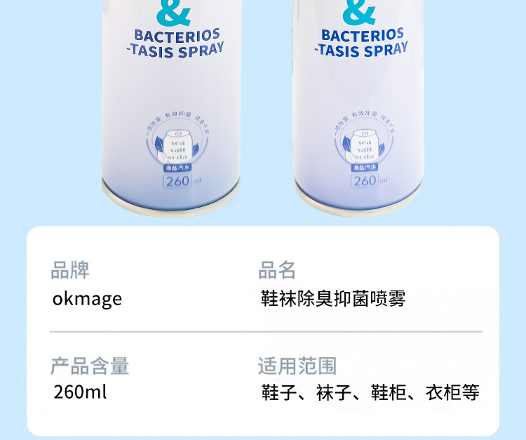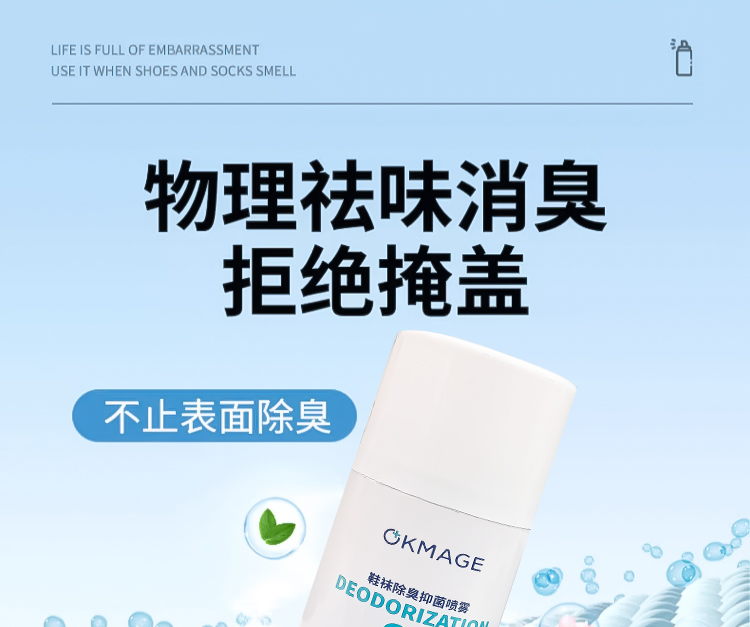 【超值3瓶装】OKMAGE 鞋袜除臭抑菌喷雾 可倒喷 除臭净味 260ml*3瓶
