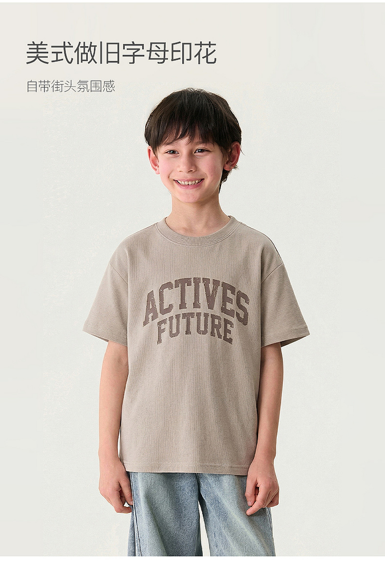 马克珍妮美式复古男童液氨字母T2026年夏装新款560983