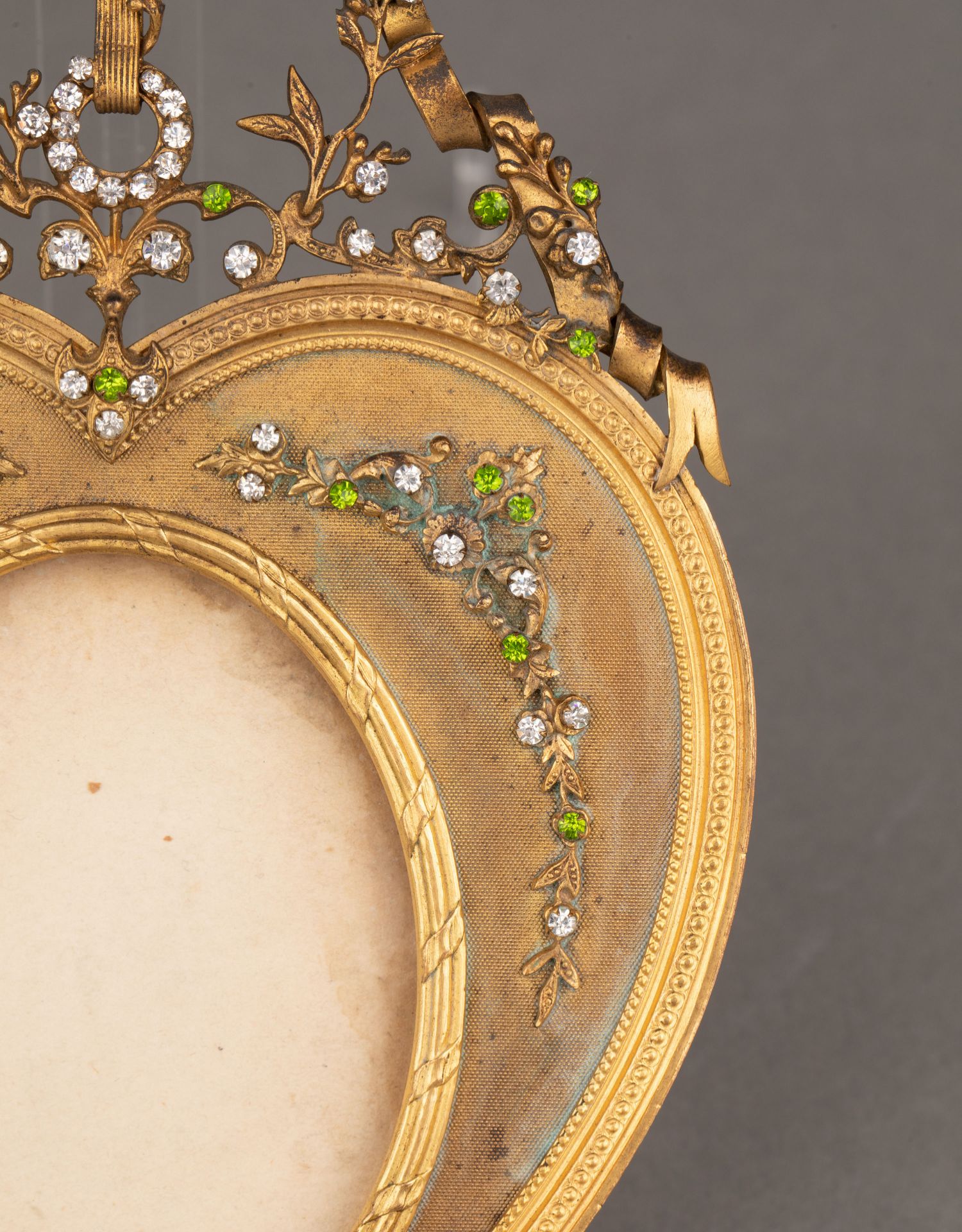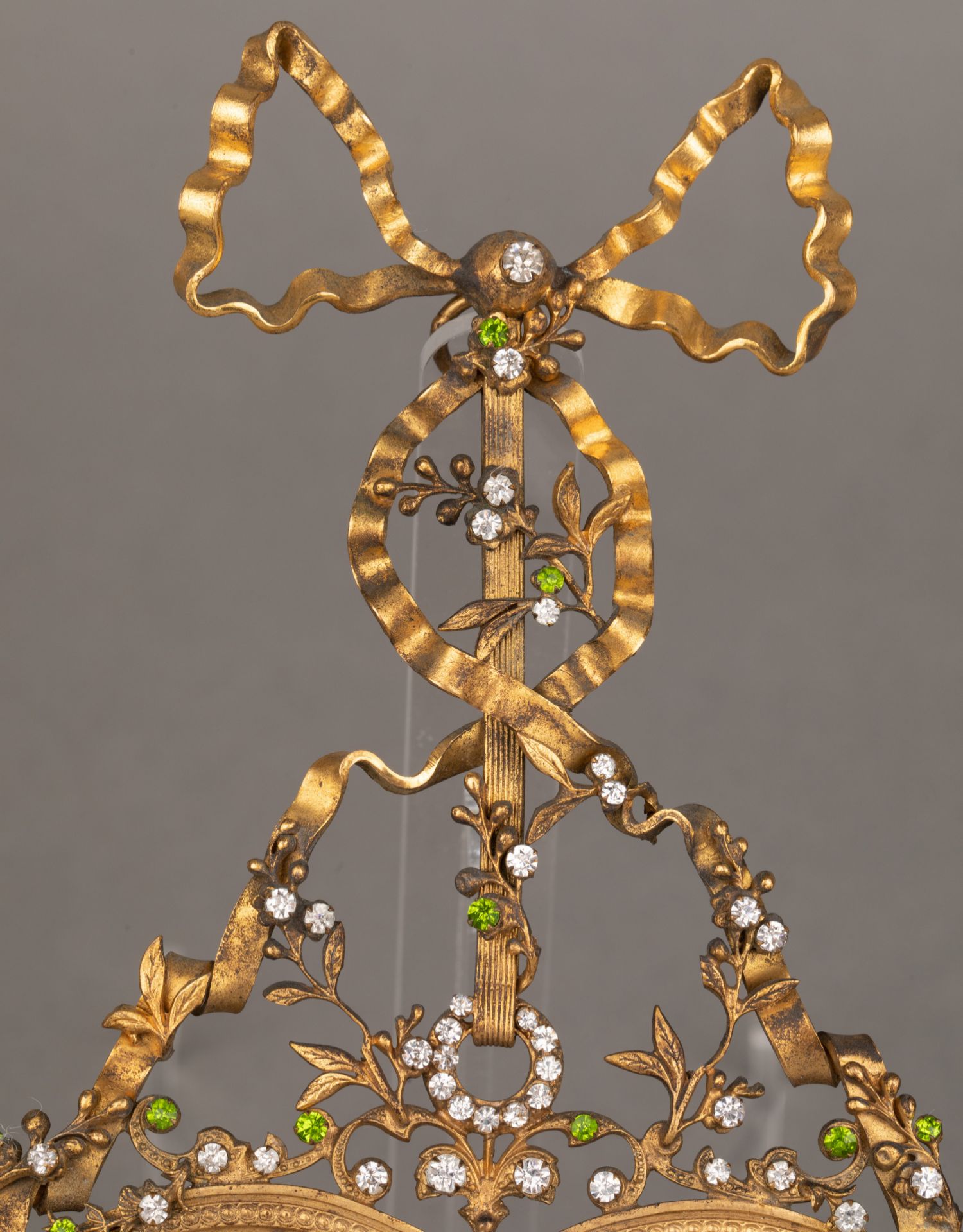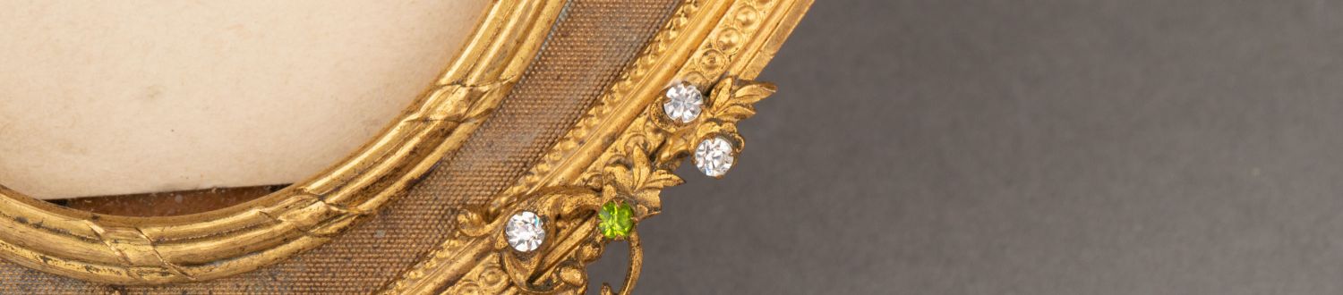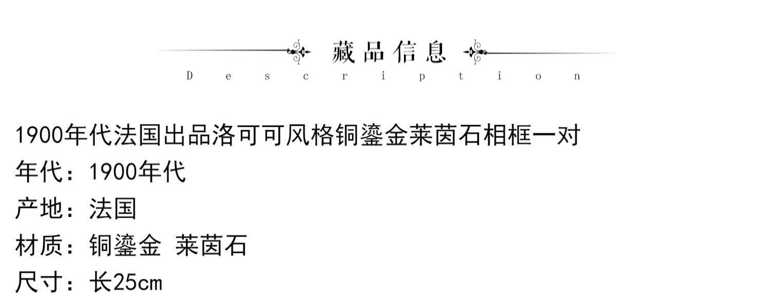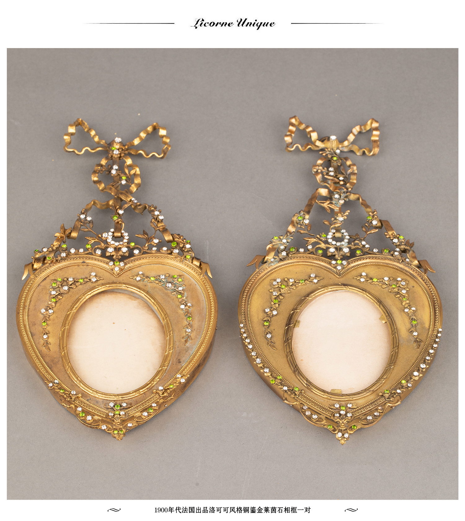 独角鹿西洋古董1900年代法国出品洛可可风格铜鎏金莱茵石相框一对