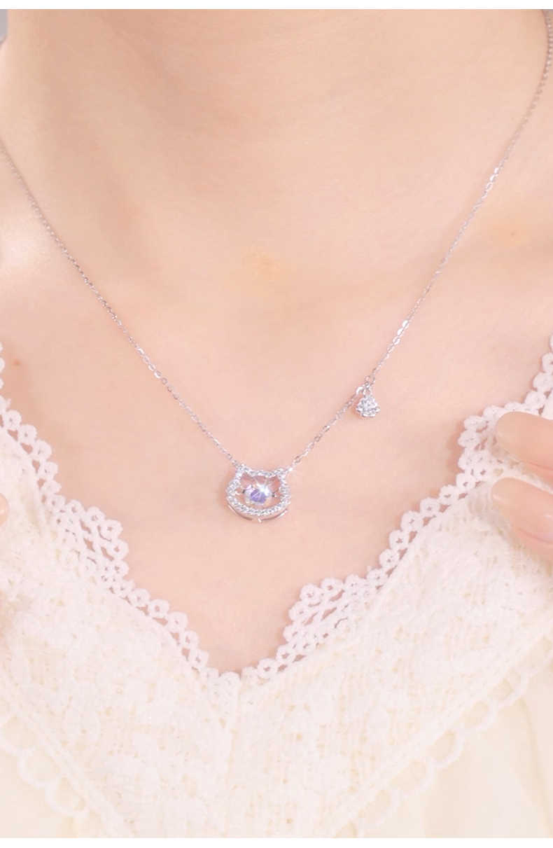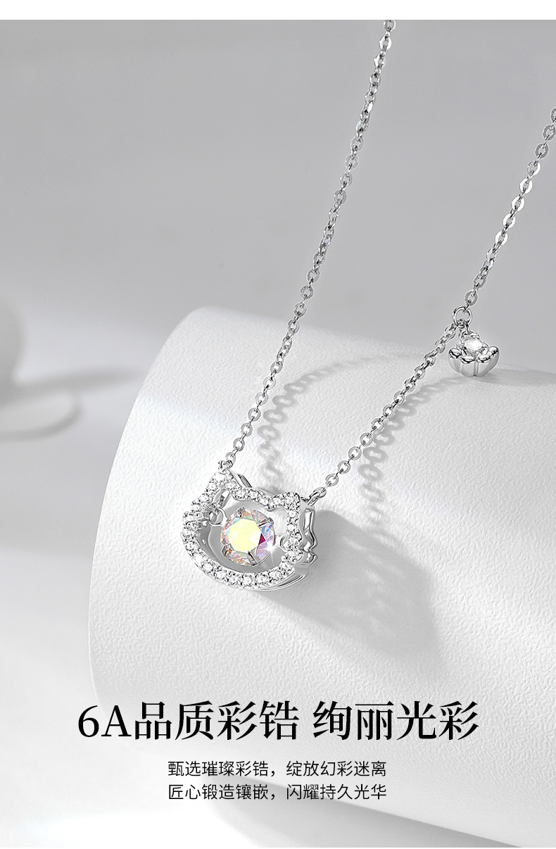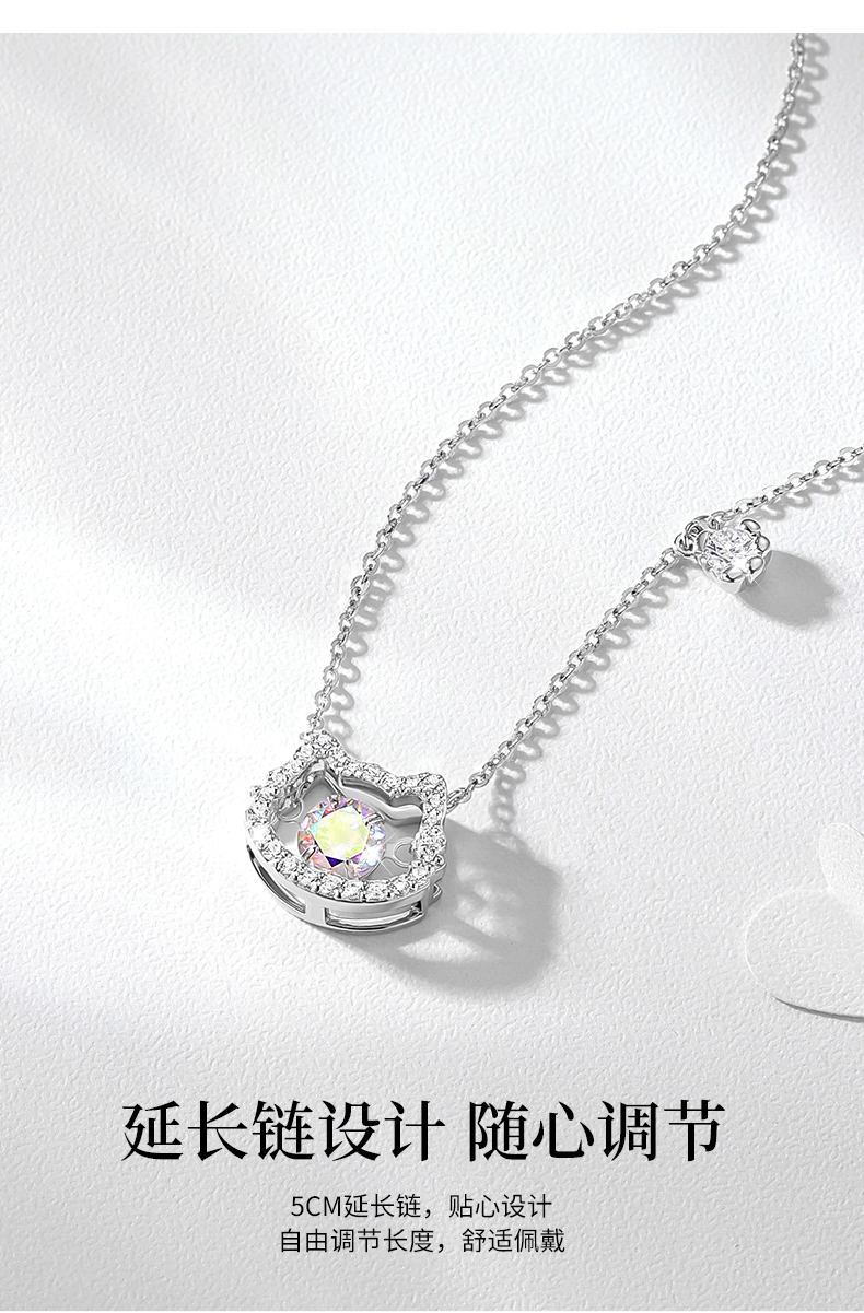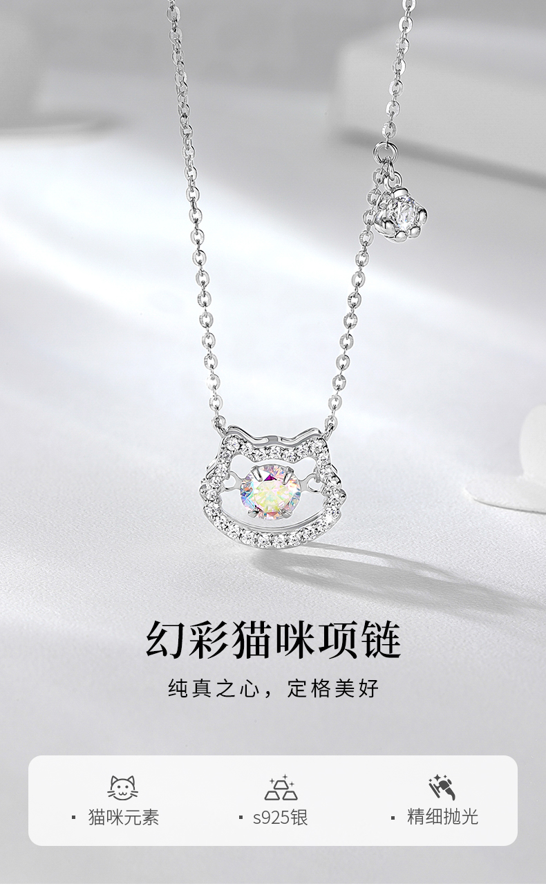 卡蒂罗KADER 幻彩猫咪项链 跳动的心可爱灵动猫咪立体镂空可爱俏皮原创创意设计锁骨链 轻奢高级感甜美吊坠 925银 项链 女款