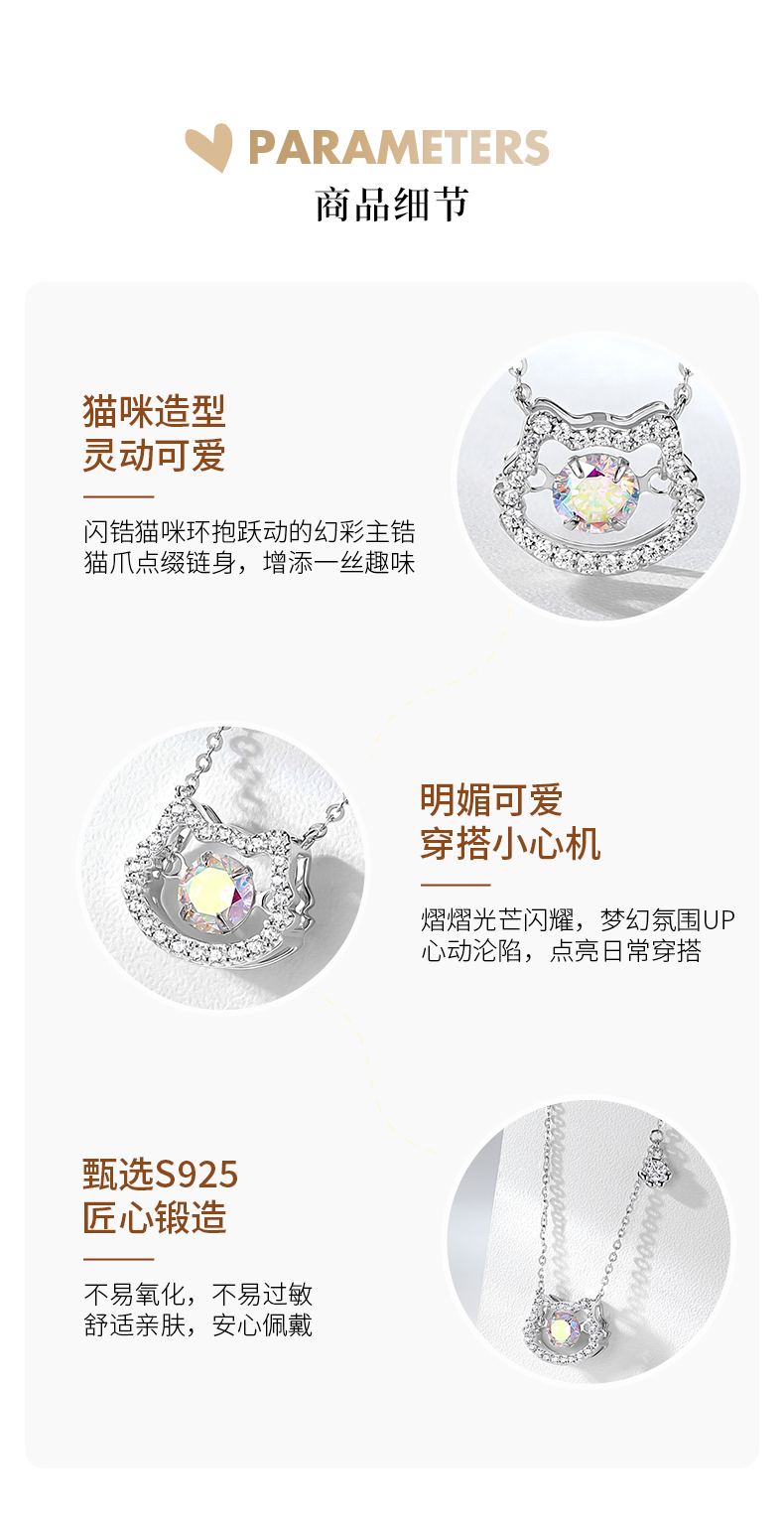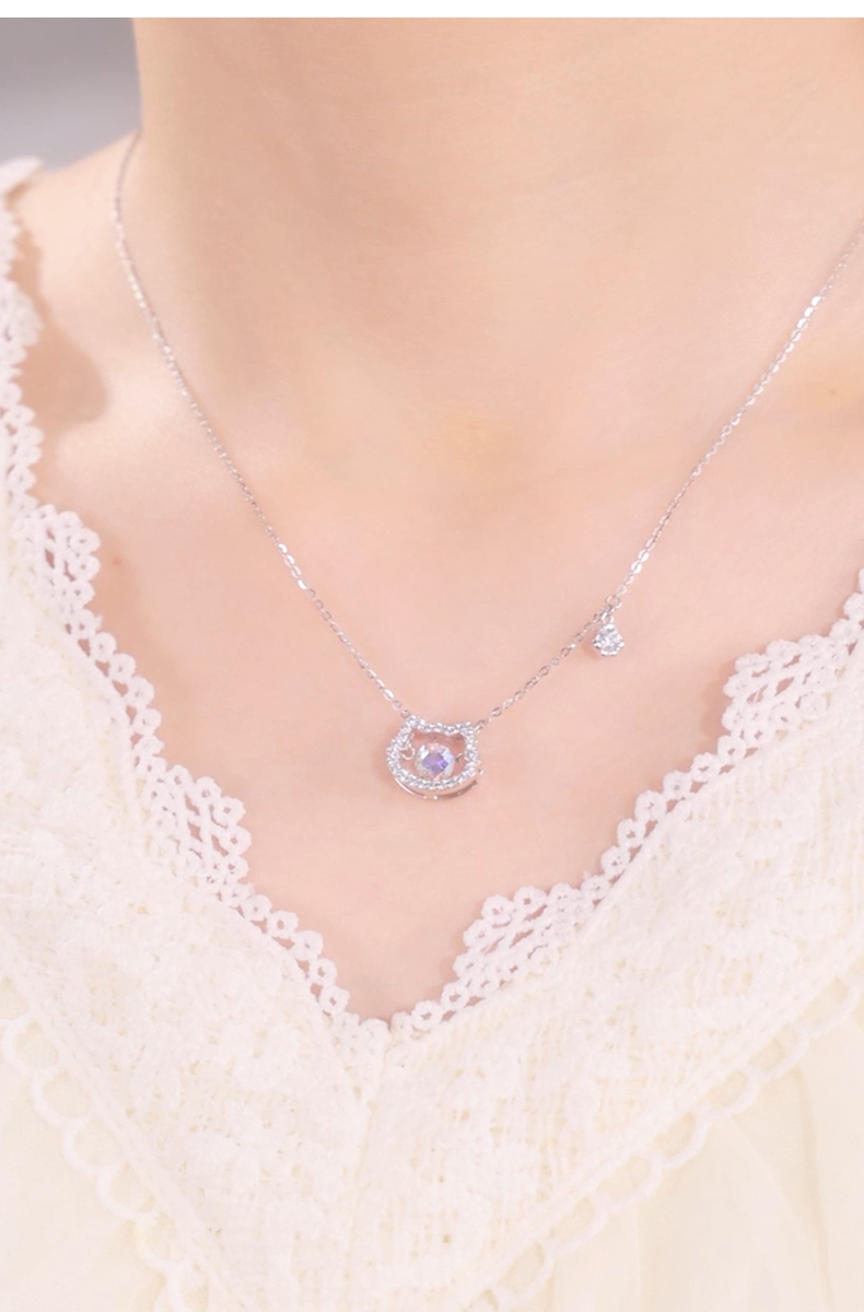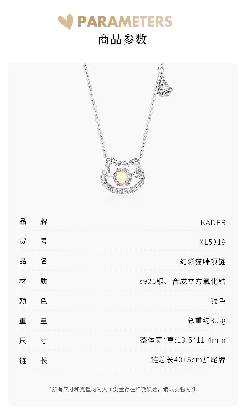 卡蒂罗KADER 幻彩猫咪项链 跳动的心可爱灵动猫咪立体镂空可爱俏皮原创创意设计锁骨链 轻奢高级感甜美吊坠 925银 项链 女款