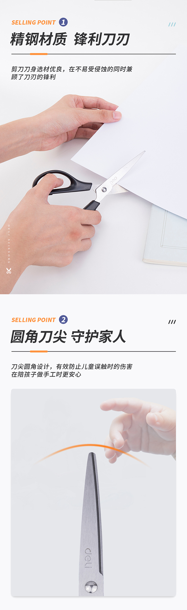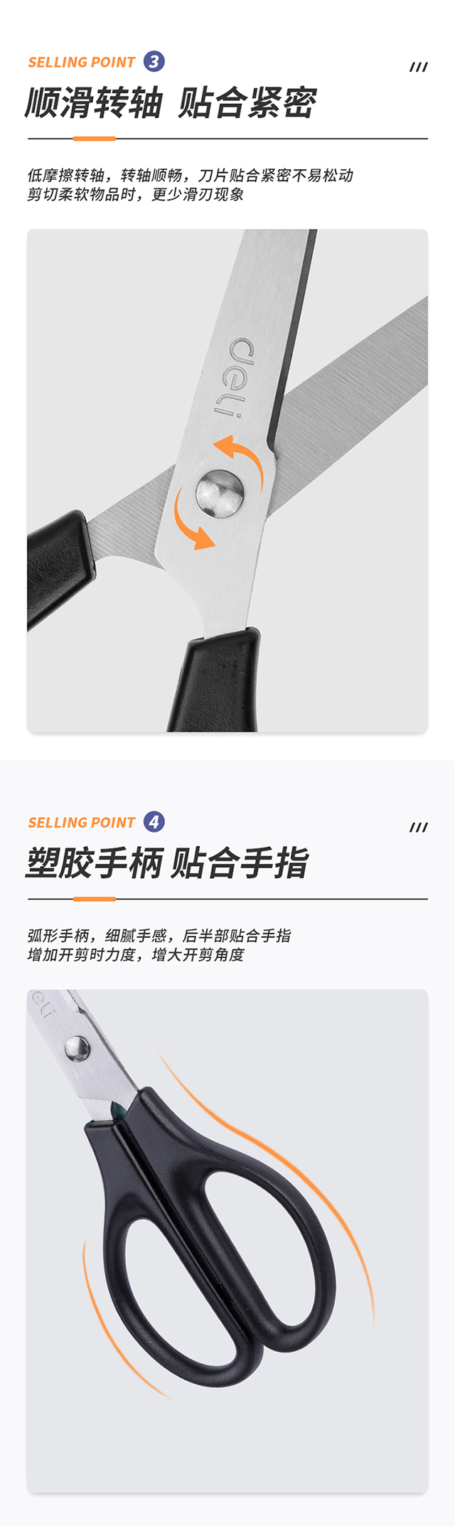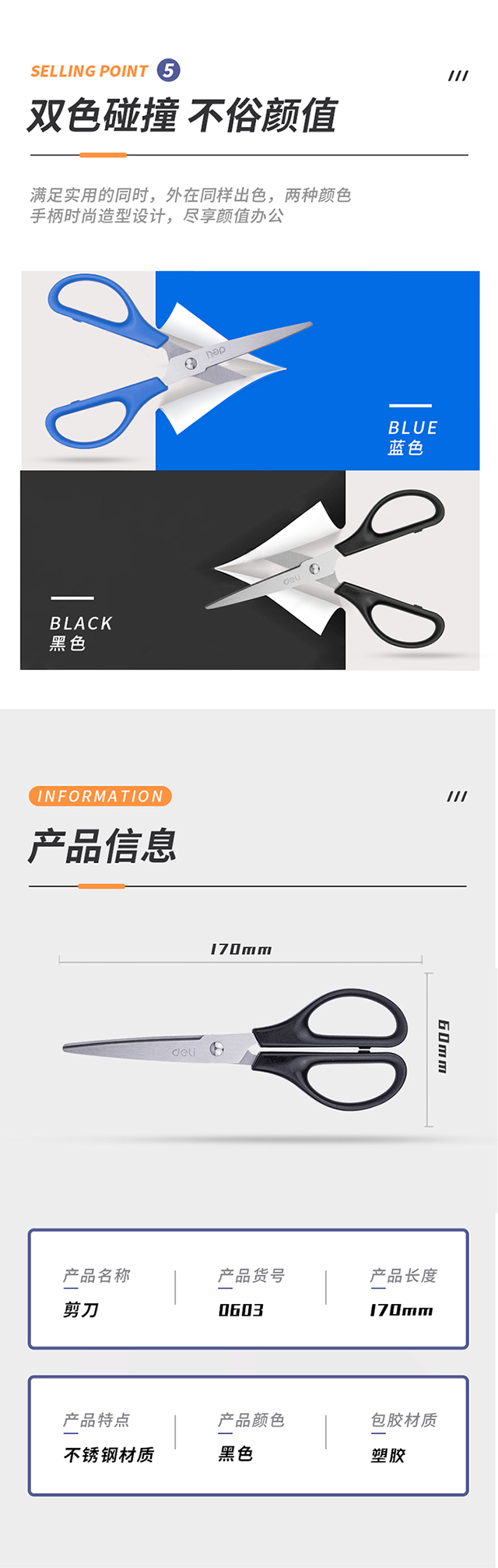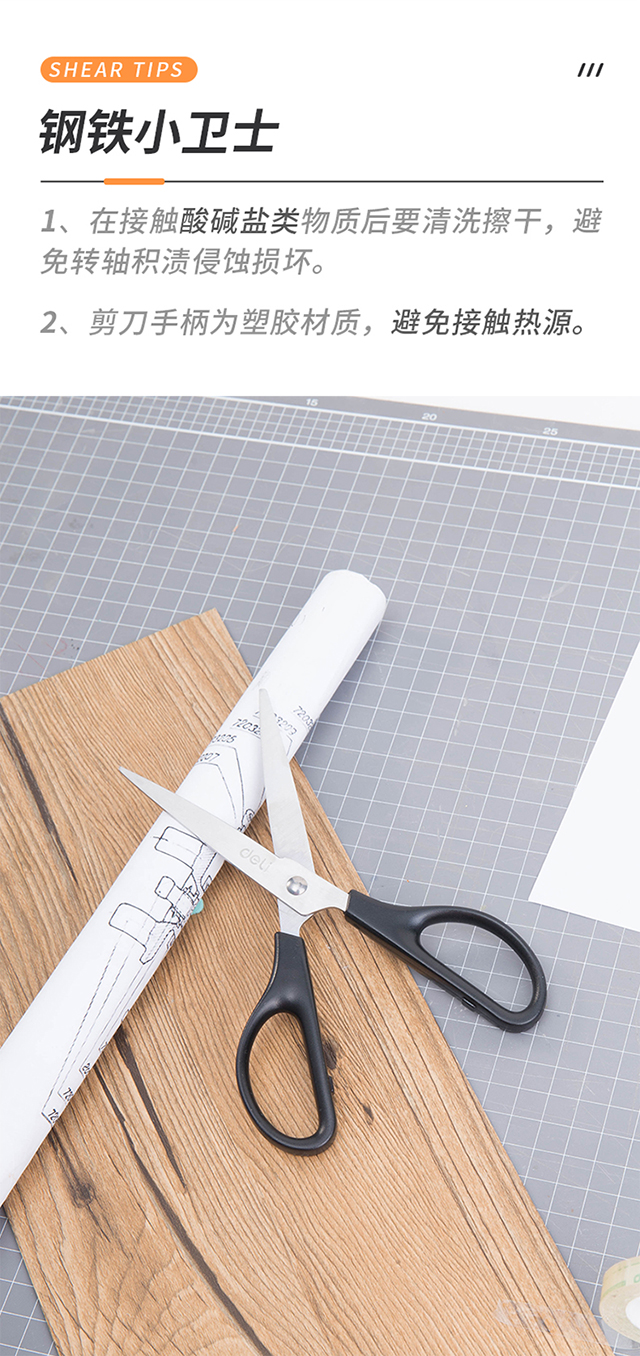 得力(deli)170mm办公家用生活剪刀 1把 办公用品 黑色0603
