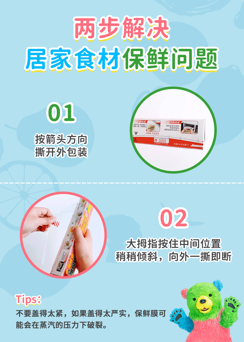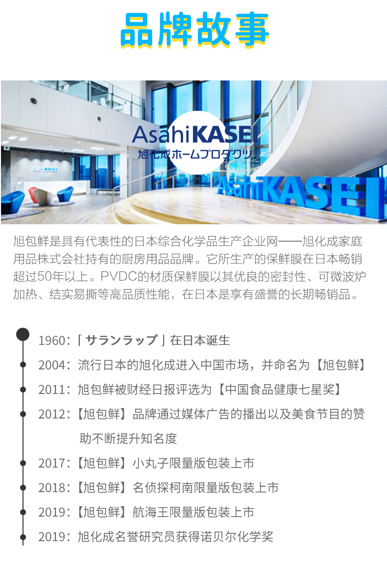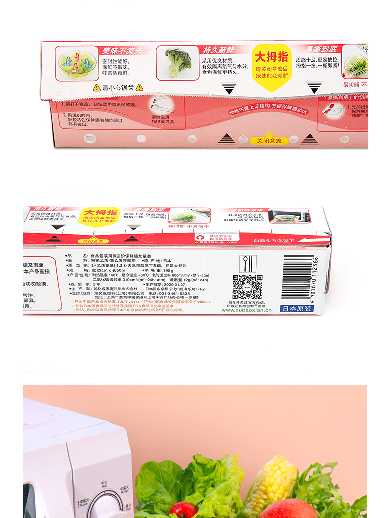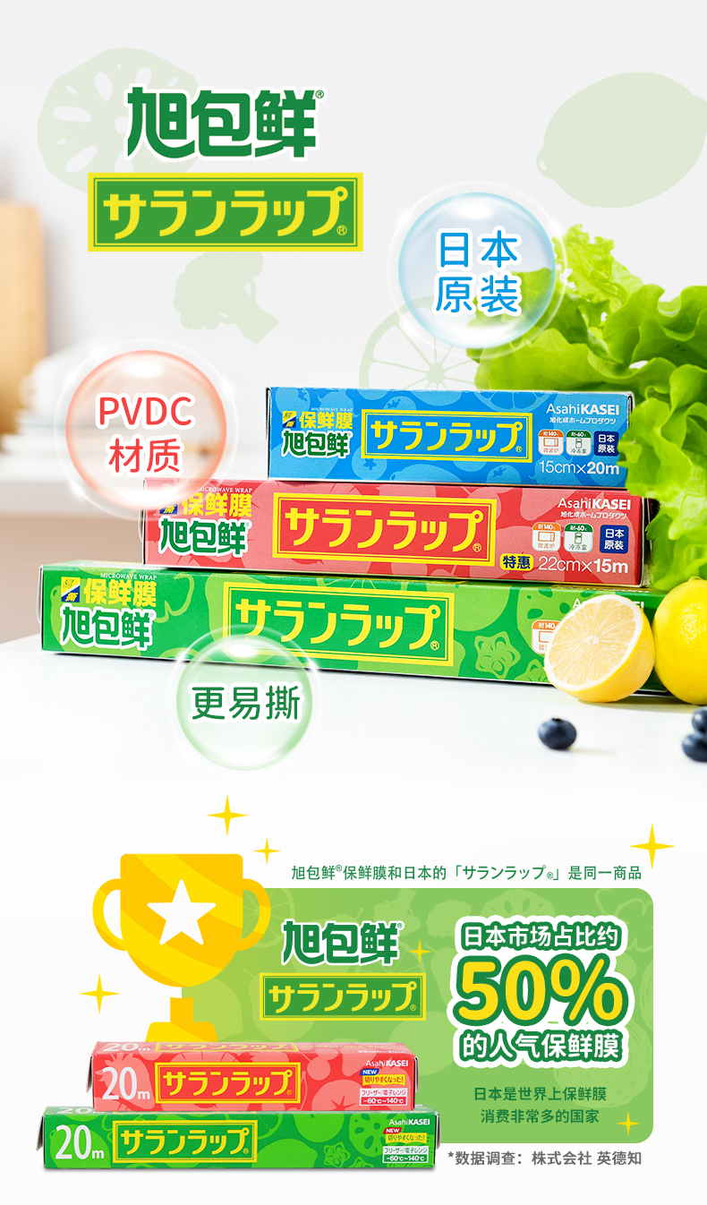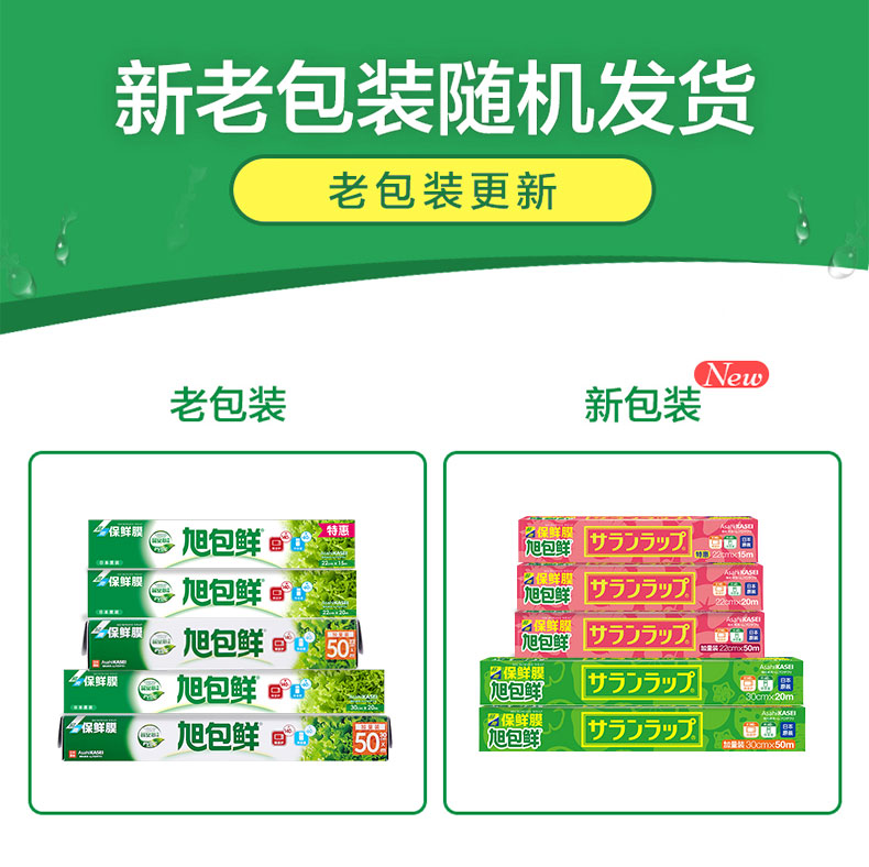 旭包鲜 日本原装进口一次性保鲜膜大卷耐高温带切割器30cm×20m PVDC材质 可微波炉加热