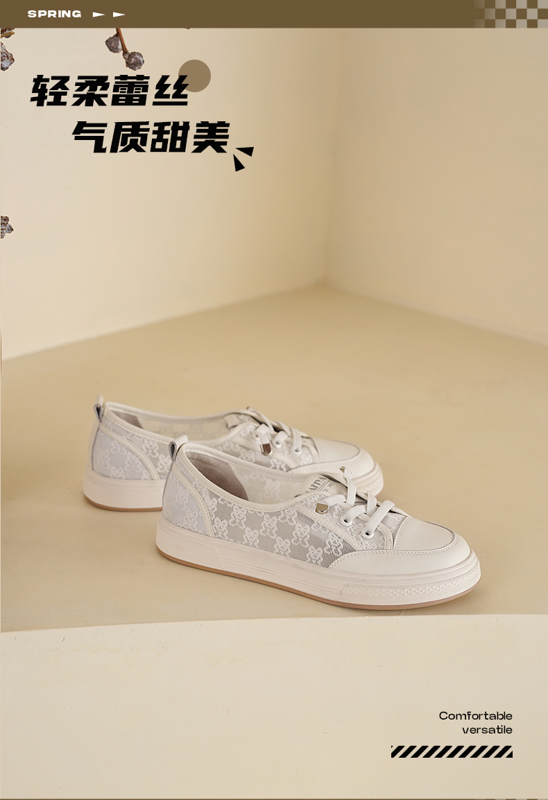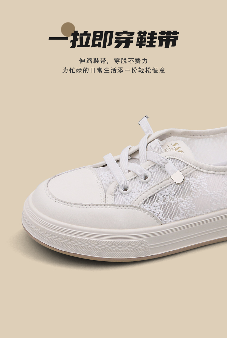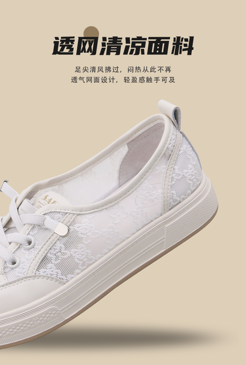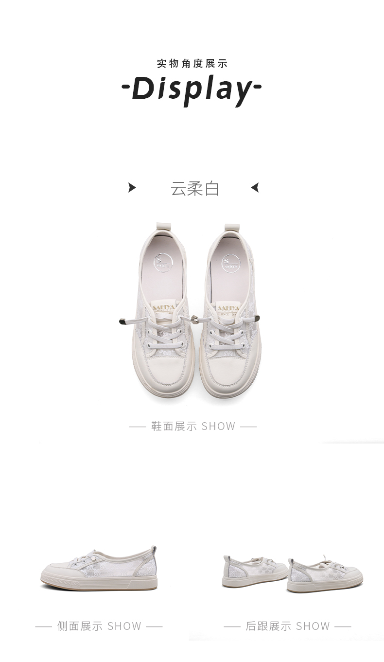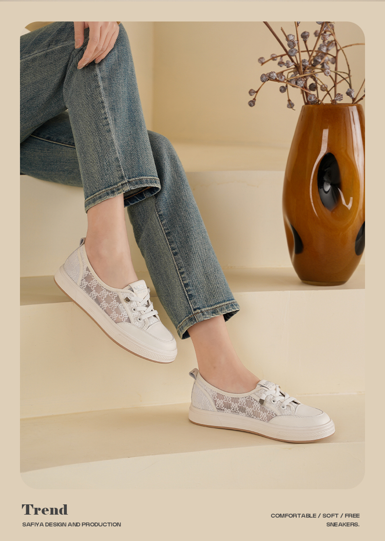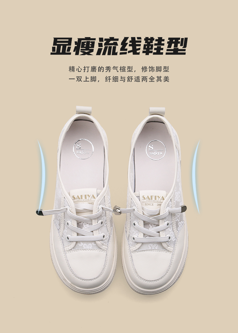 预售7天|Safiya/索菲娅2025春夏浅口百搭休闲蕾丝网面小白鞋SFD1112107
