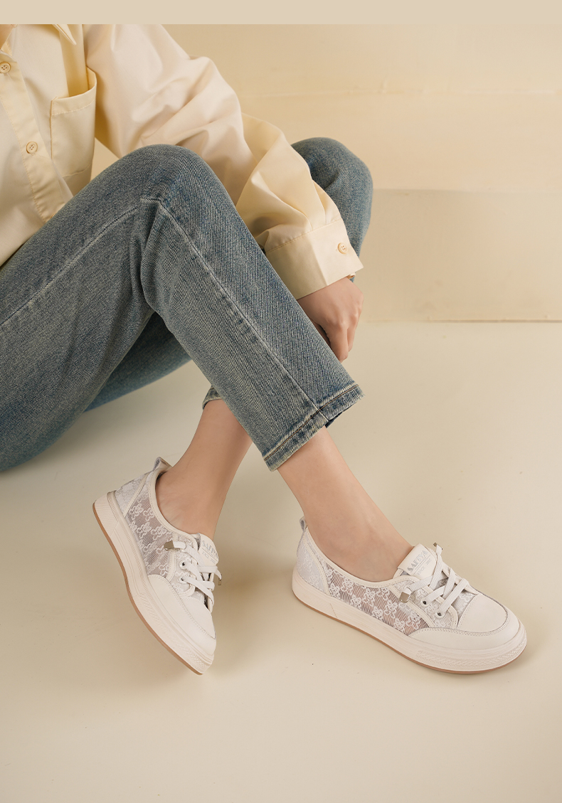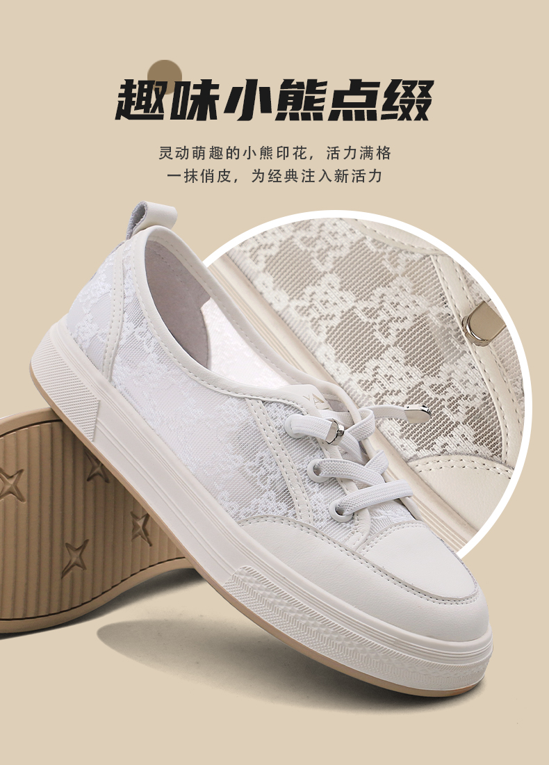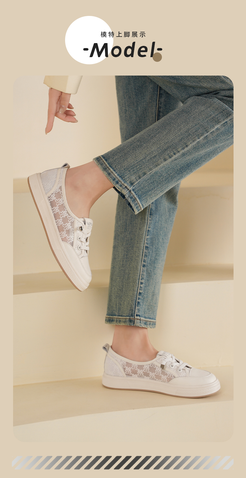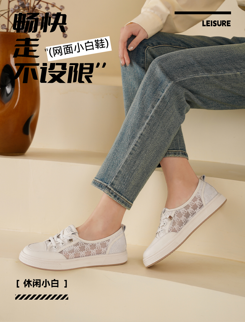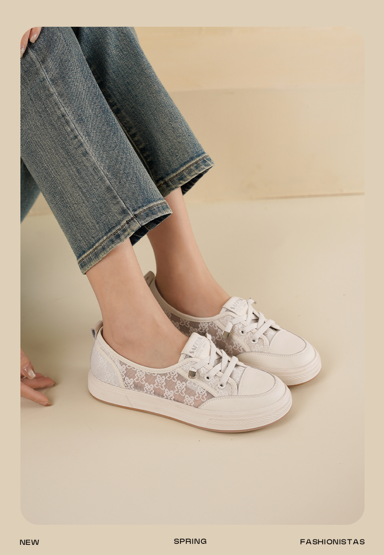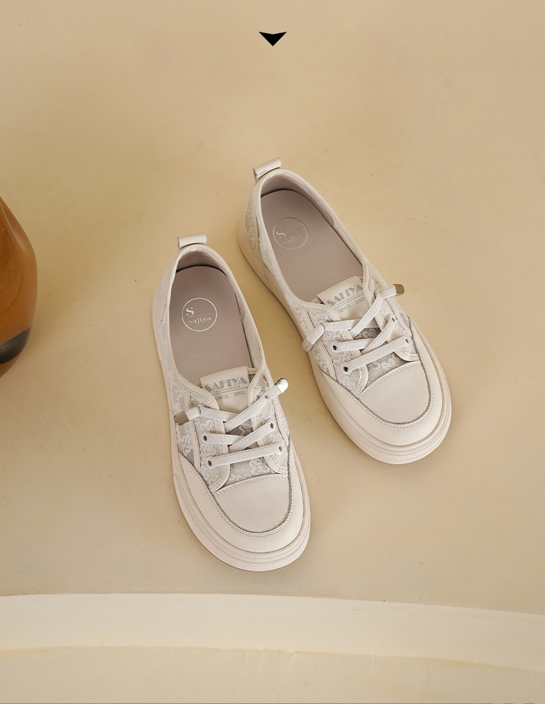 预售7天|Safiya/索菲娅2025春夏浅口百搭休闲蕾丝网面小白鞋SFD1112107