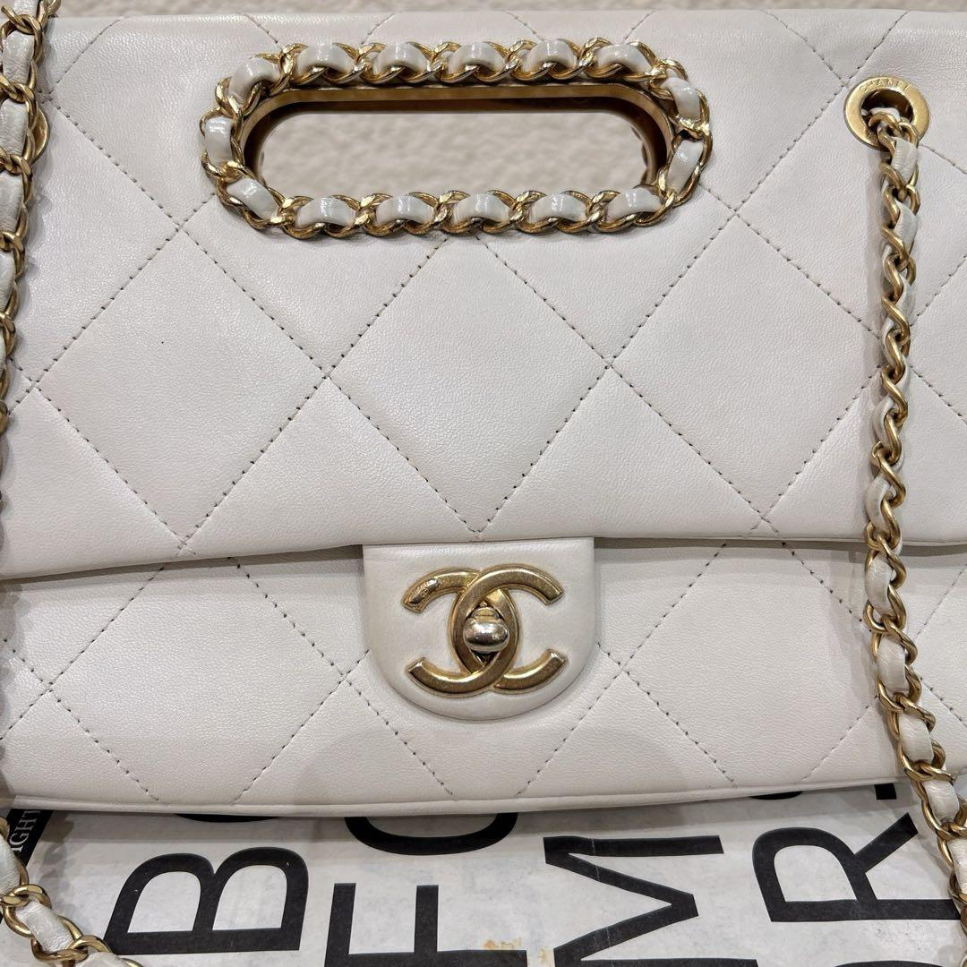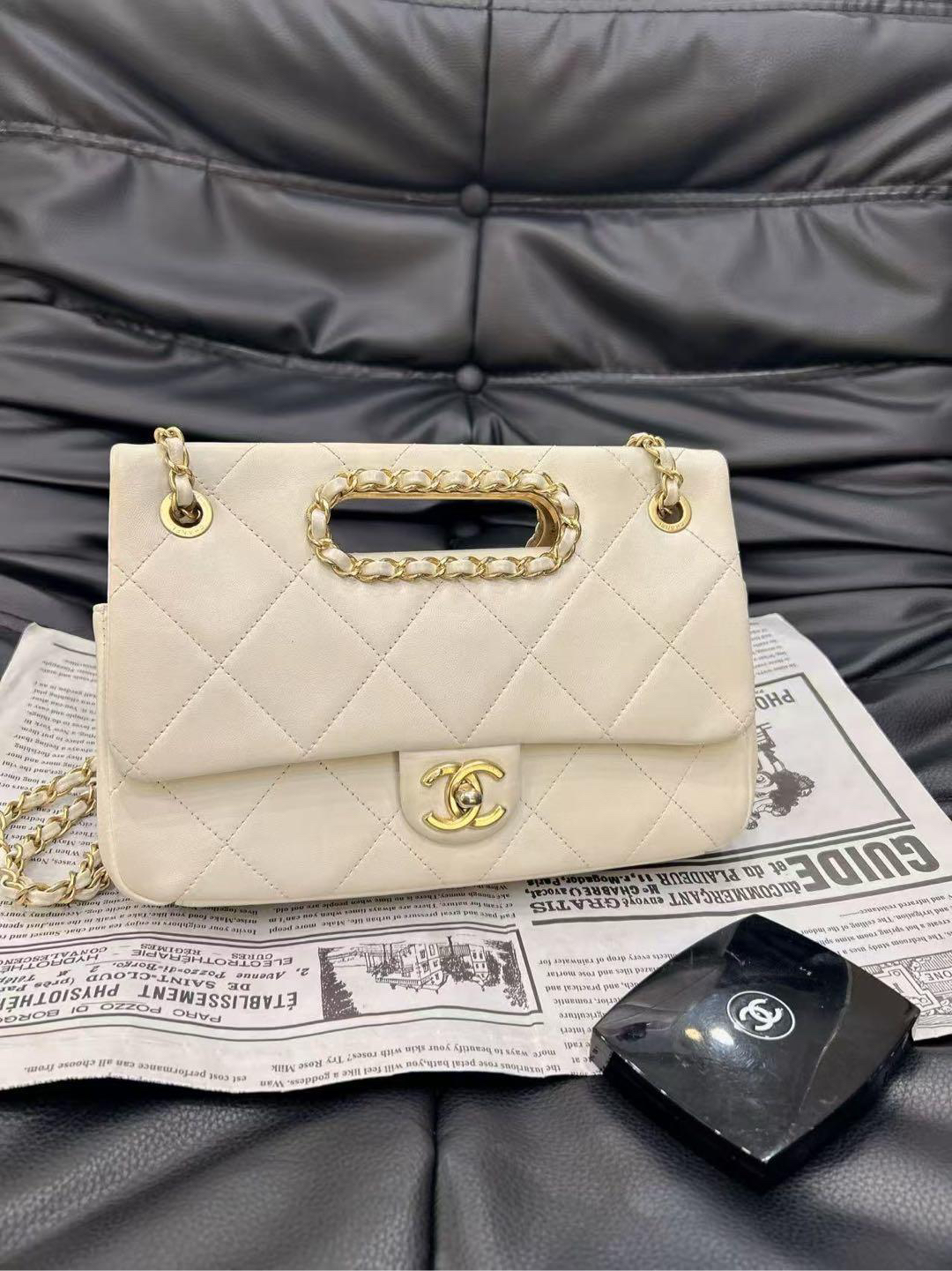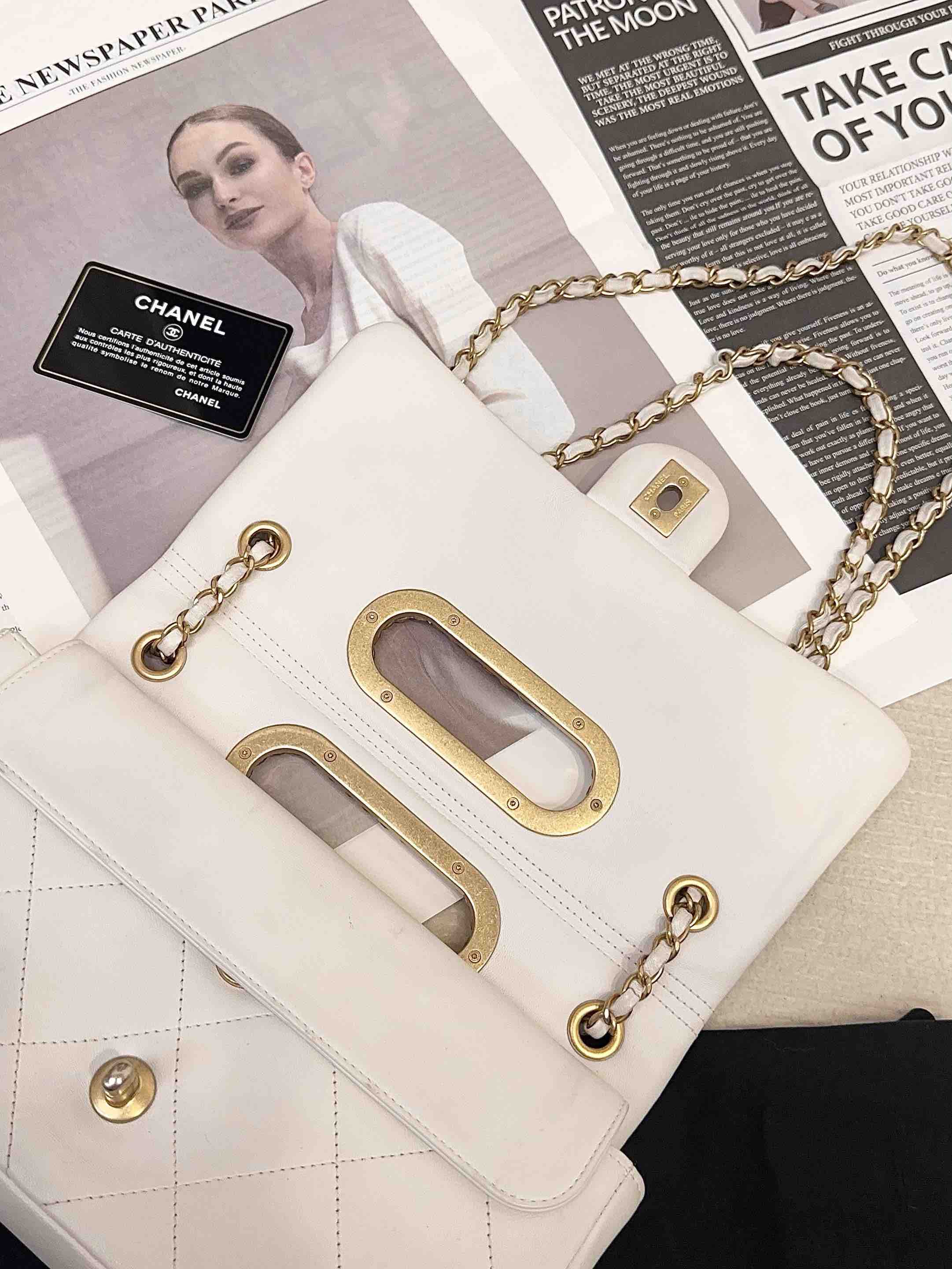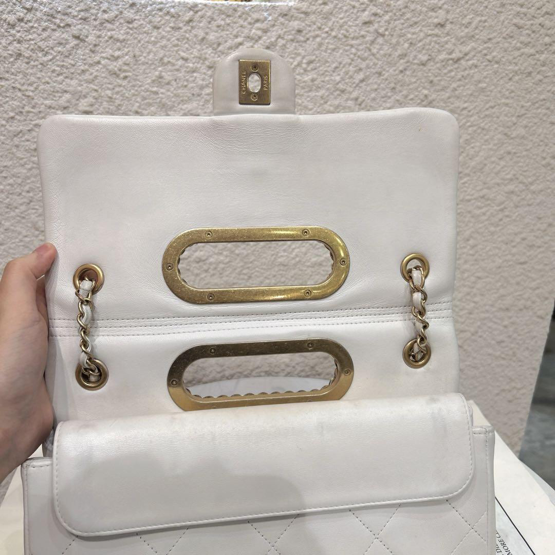 正品二手 CHANEL 2020 春夏限定 CF 羊皮 白色镂空 手提翻盖包 🎡95新 26×17 镭射29开配件:卡 小票 防尘袋。包身包面轻微使用痕迹 包型立挺