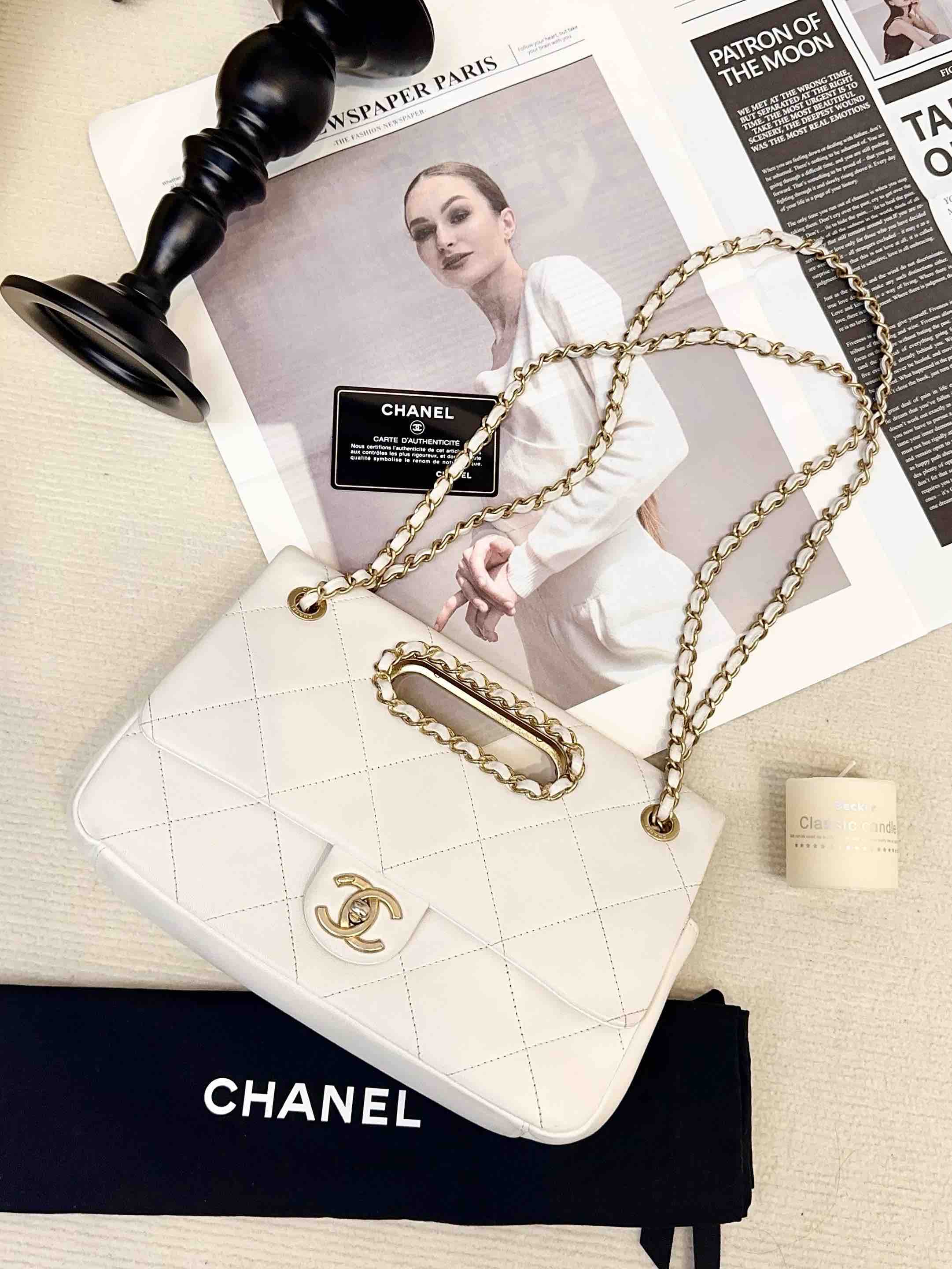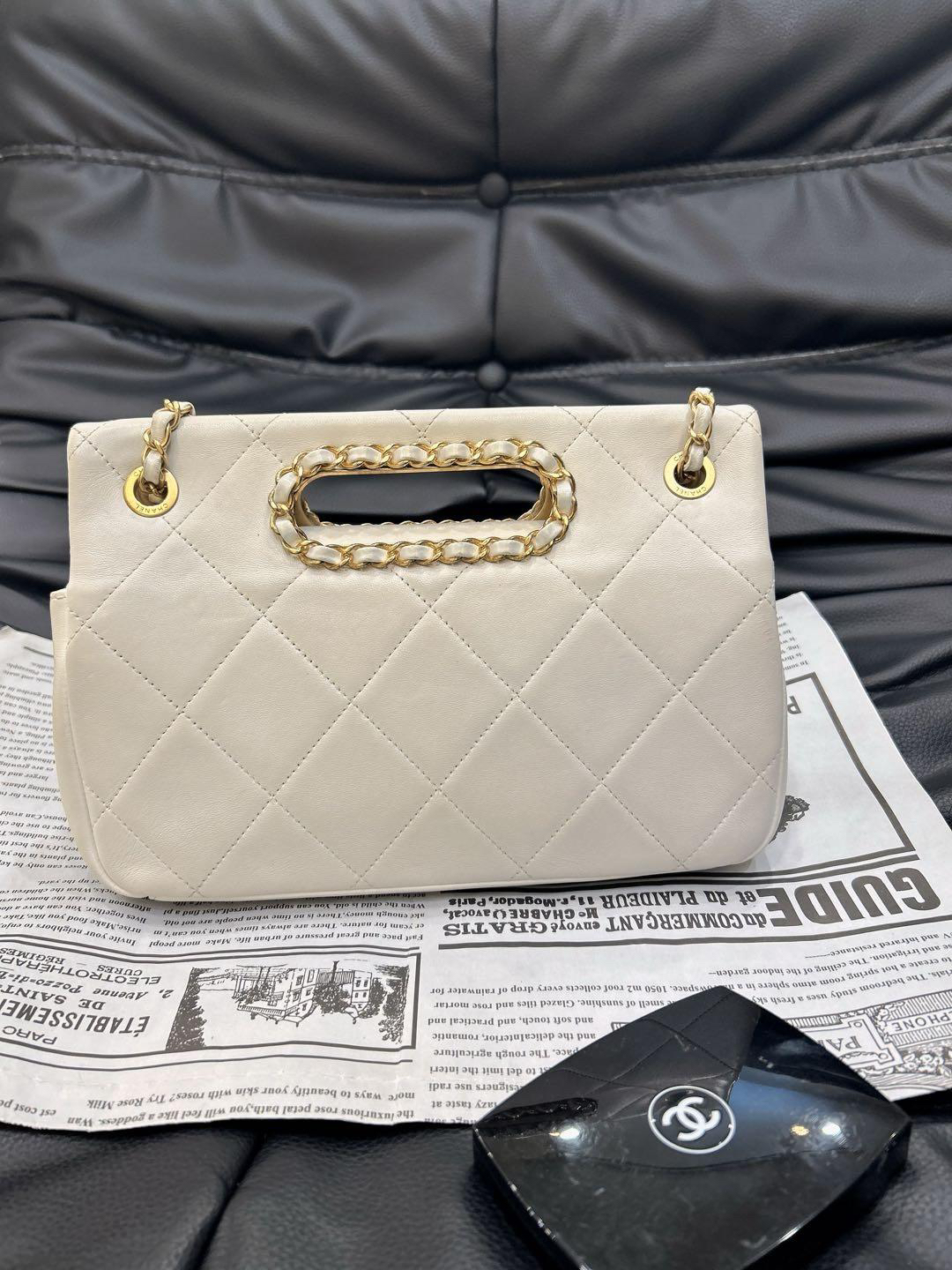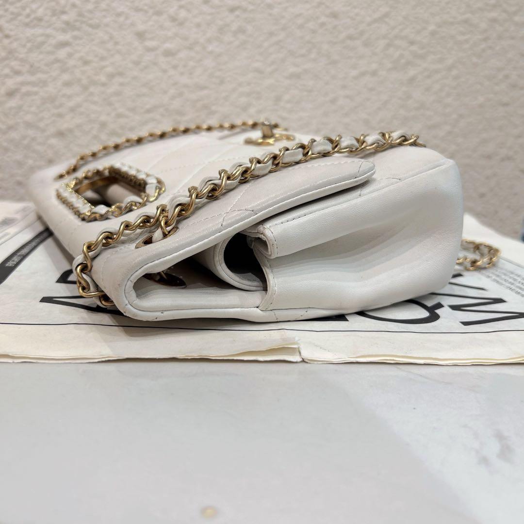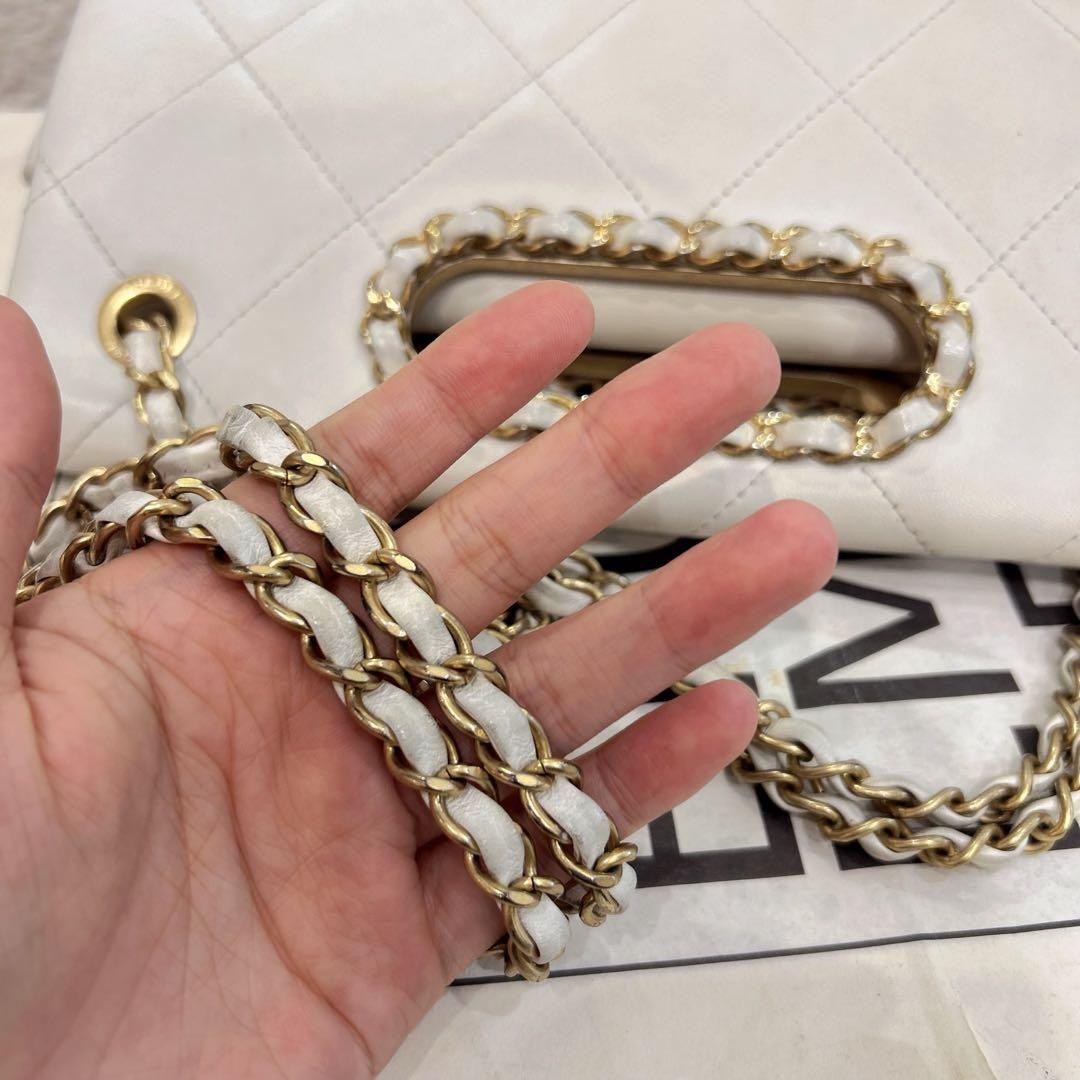 正品二手 CHANEL 2020 春夏限定 CF 羊皮 白色镂空 手提翻盖包 🎡95新 26×17 镭射29开配件:卡 小票 防尘袋。包身包面轻微使用痕迹 包型立挺