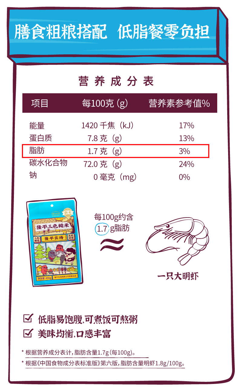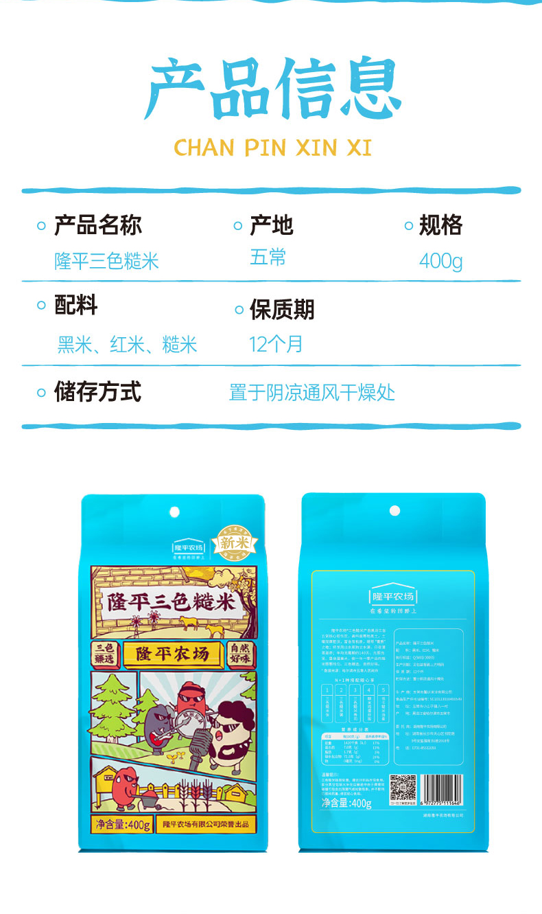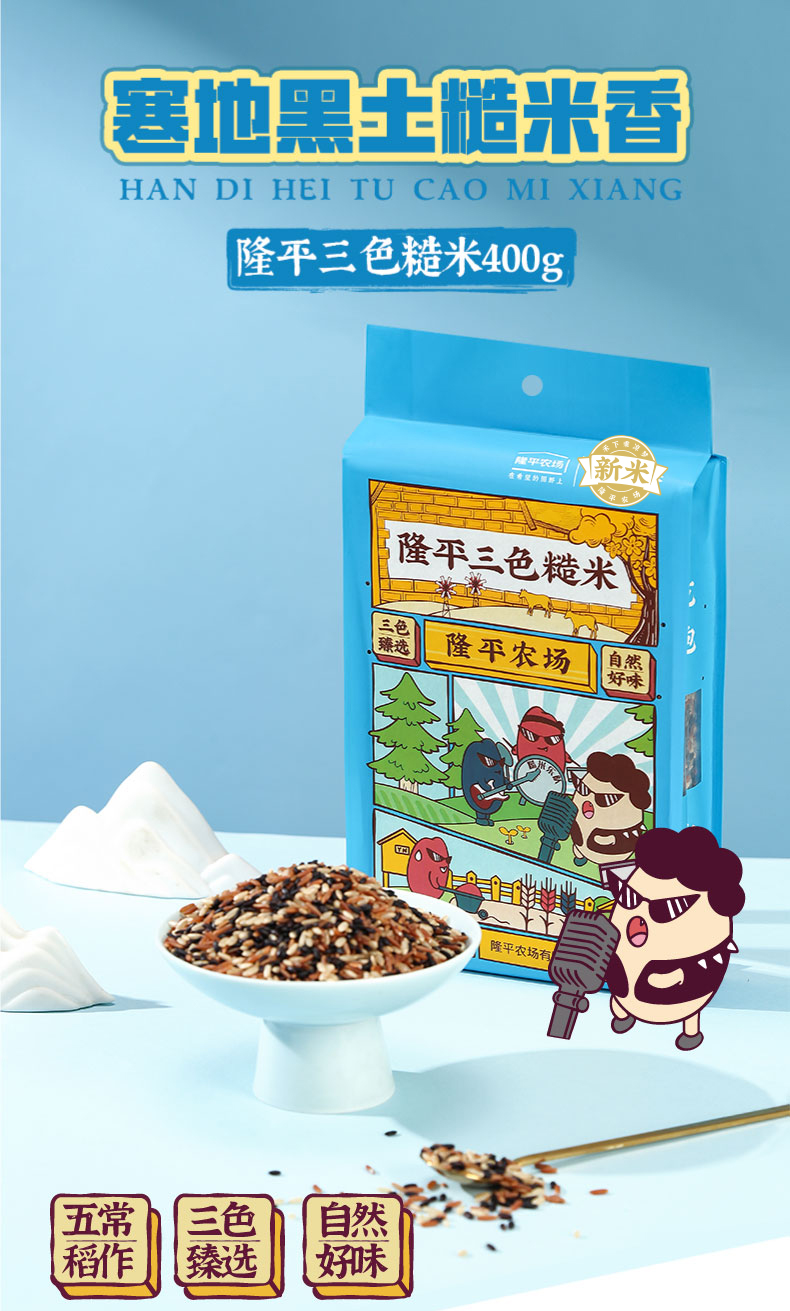 隆平农场三色糙米400g五谷杂粮 粗粮 糙米饭 黑米红米 糙米