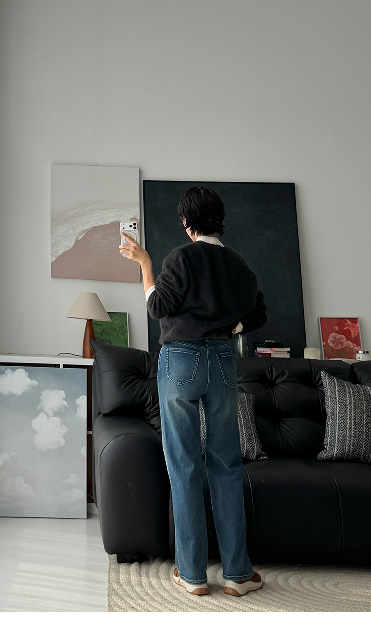 黑科技双重发热 复古直筒牛仔裤