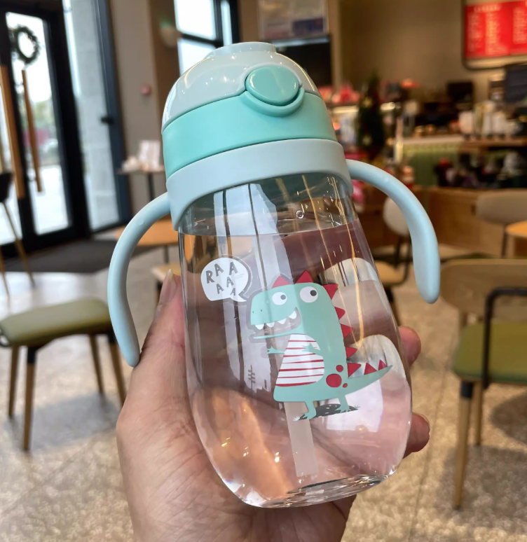 Z2658儿童吸管杯宝宝奶瓶学饮杯卡通带手柄防摔防漏幼儿园喝水塑料杯子
