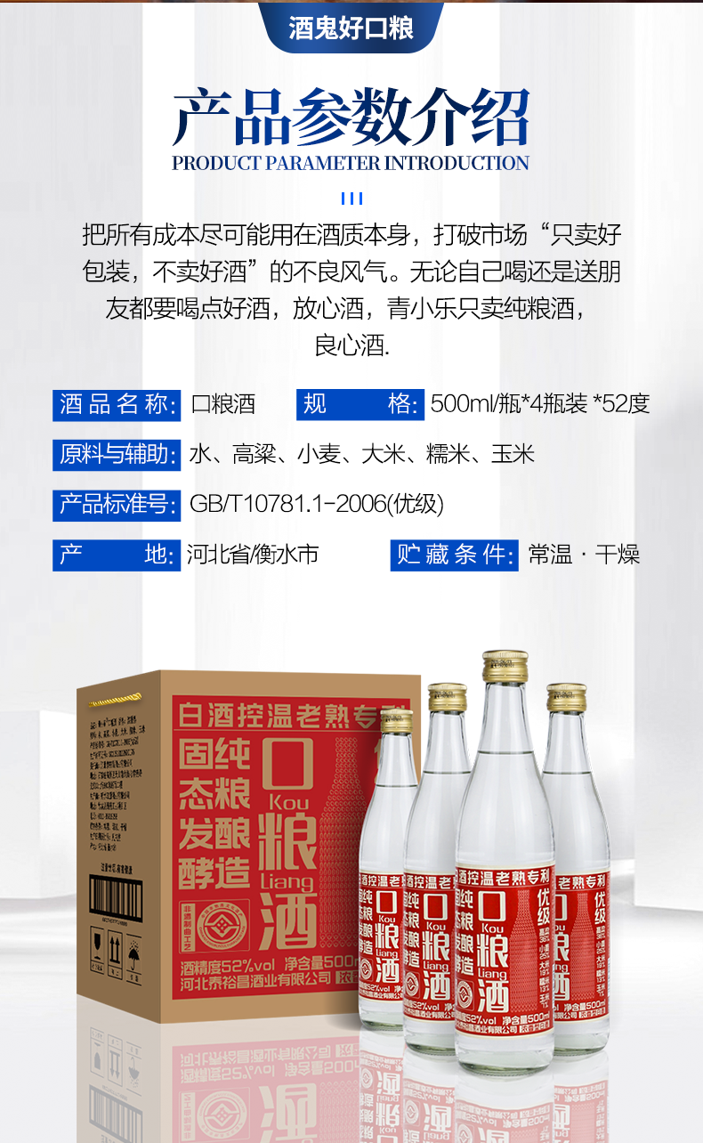 [口粮酒]42/52度-青小乐光瓶装-浓香型白酒-500ml-4瓶整箱