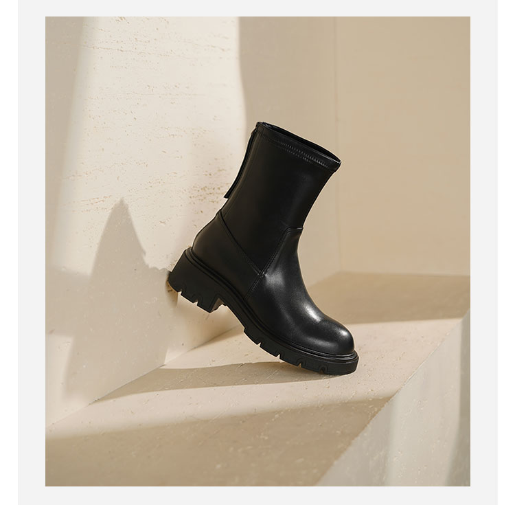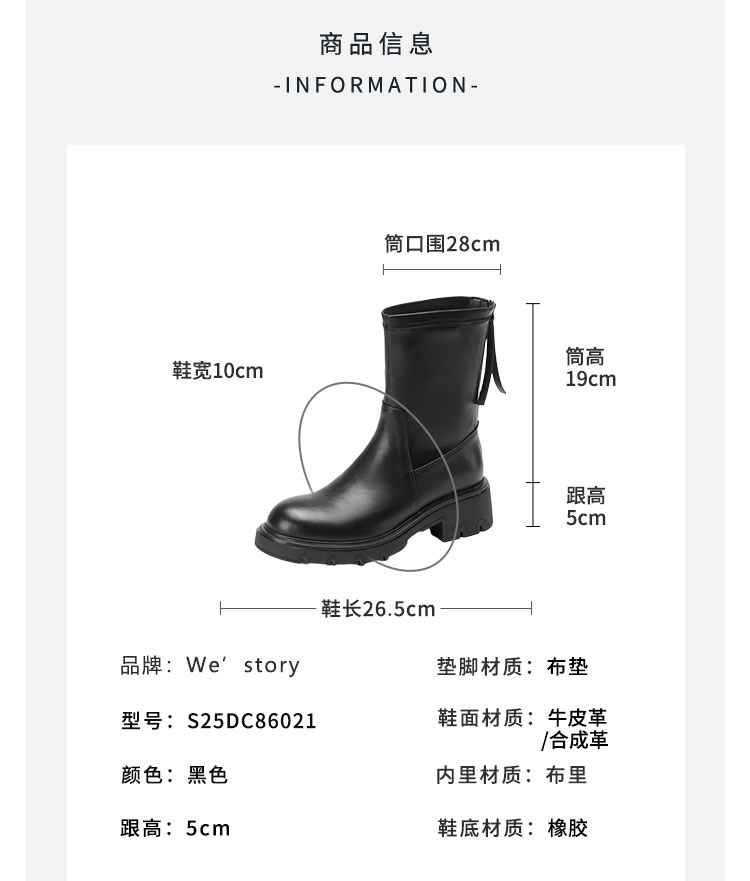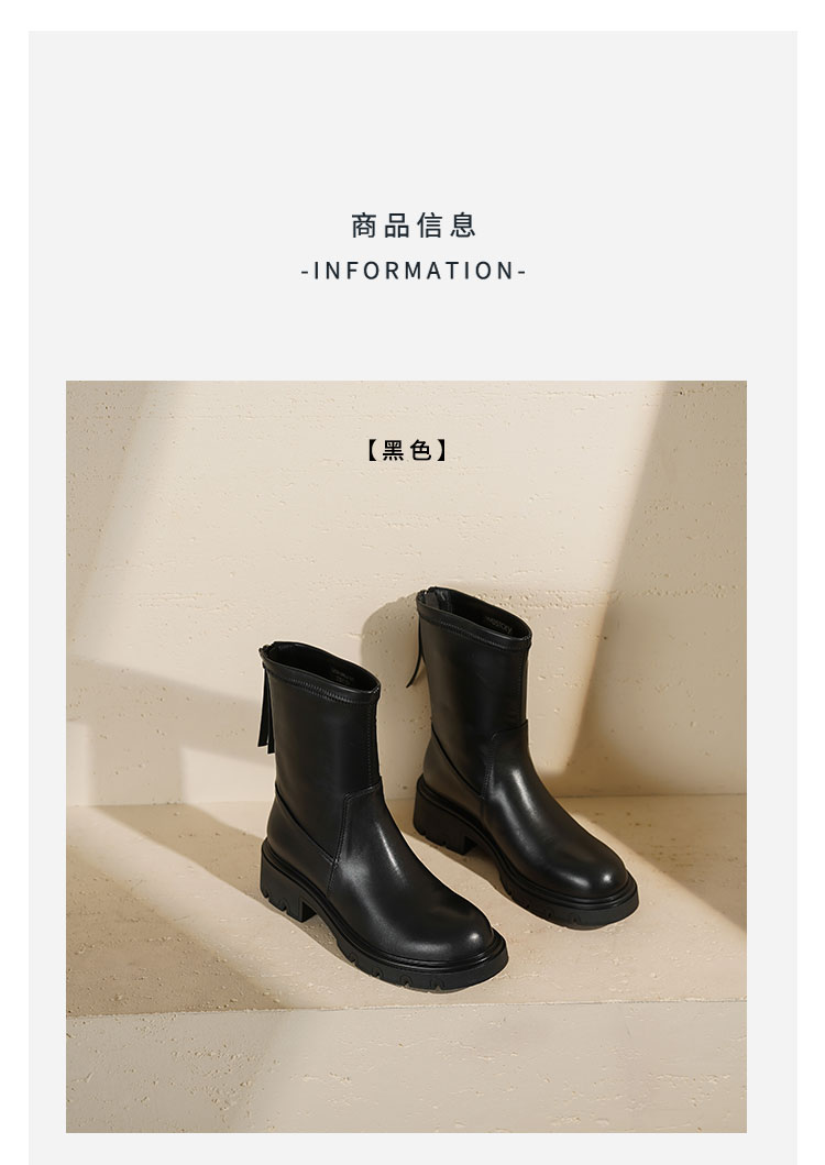 Westory2025年冬季休闲光面弹力筒皮切尔西靴简约百搭休闲短靴S25DC86021