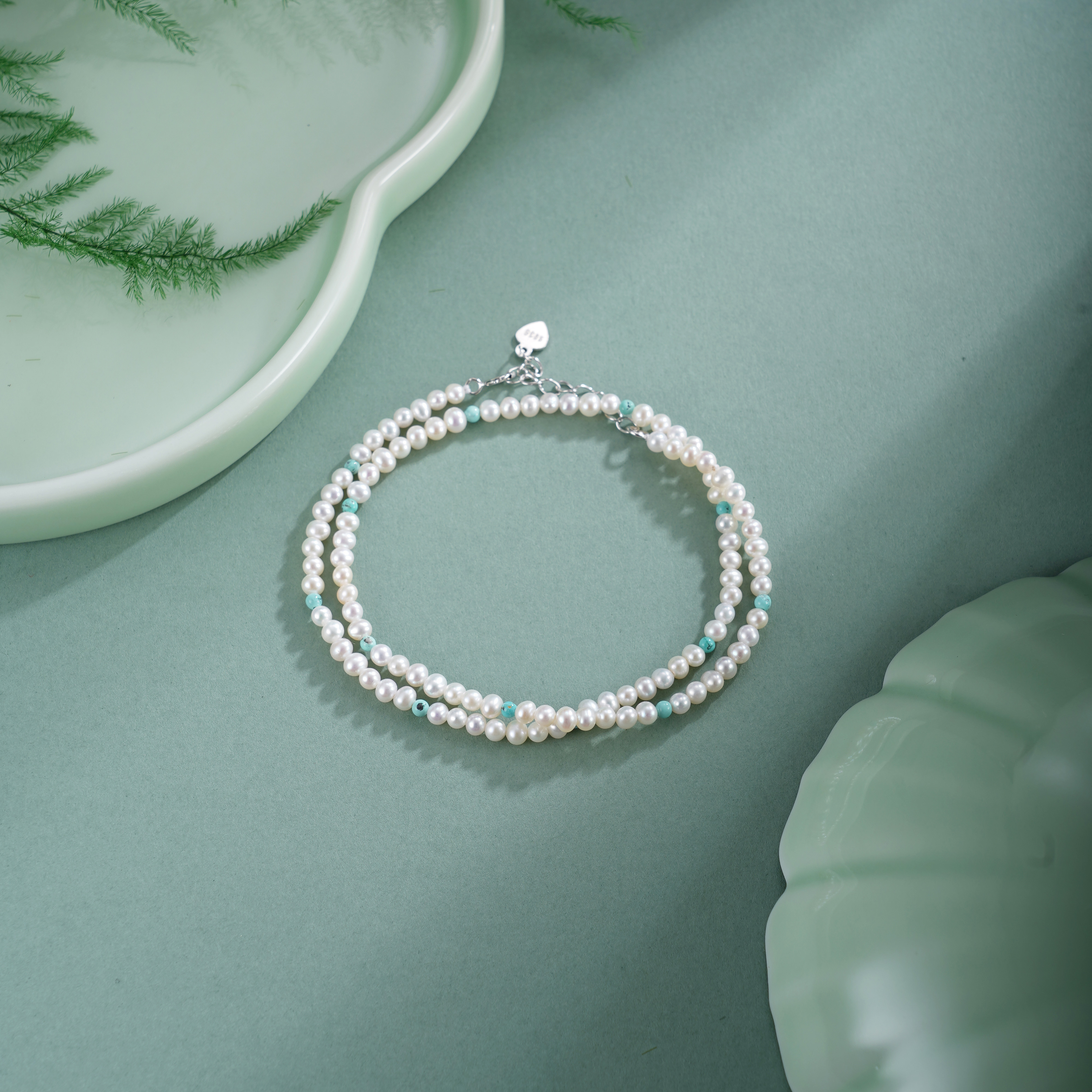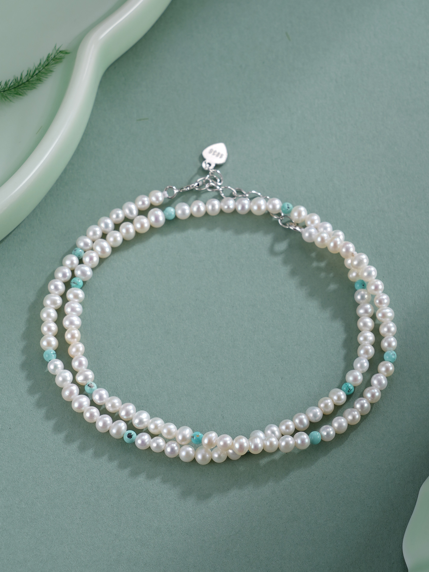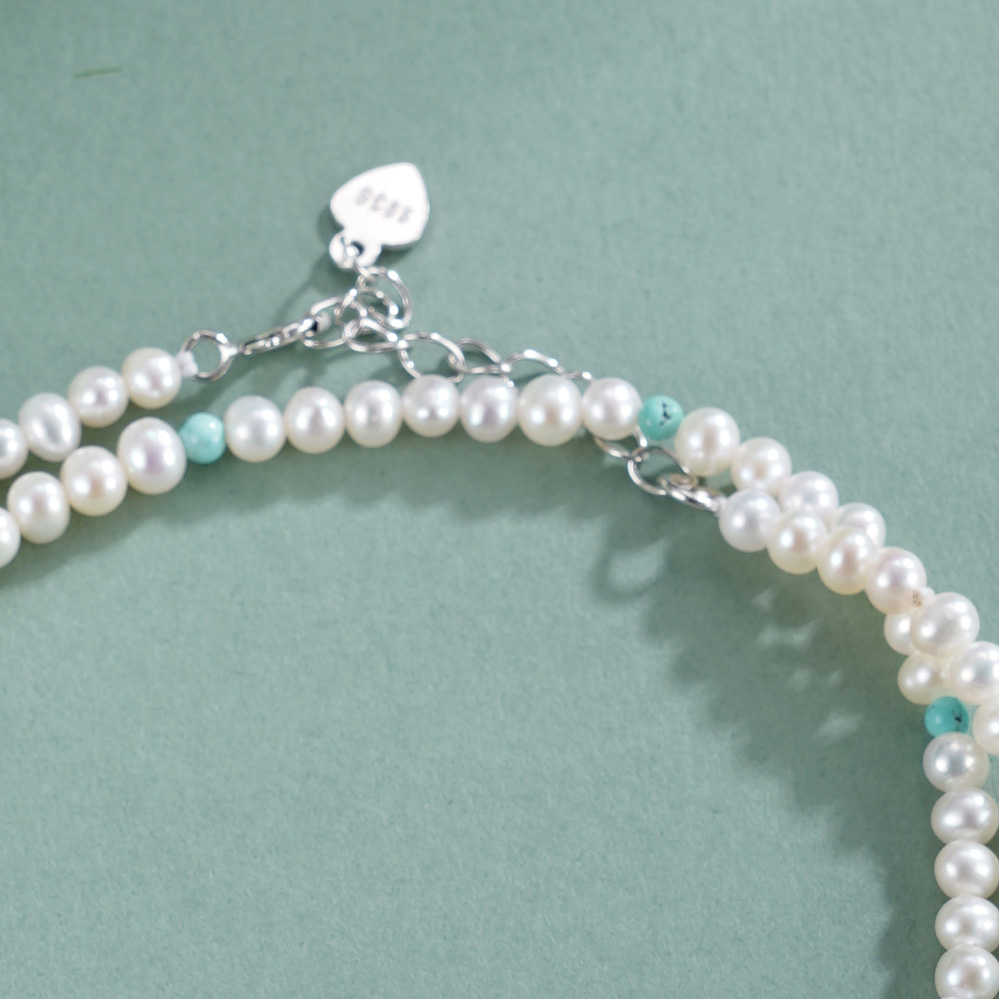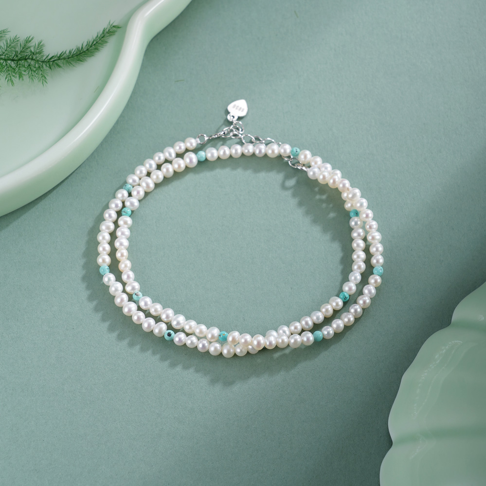 子佩集【沧海雪月】银S925珍珠惜王妃手链【QNS0025-20】3mm珠绿松石2601