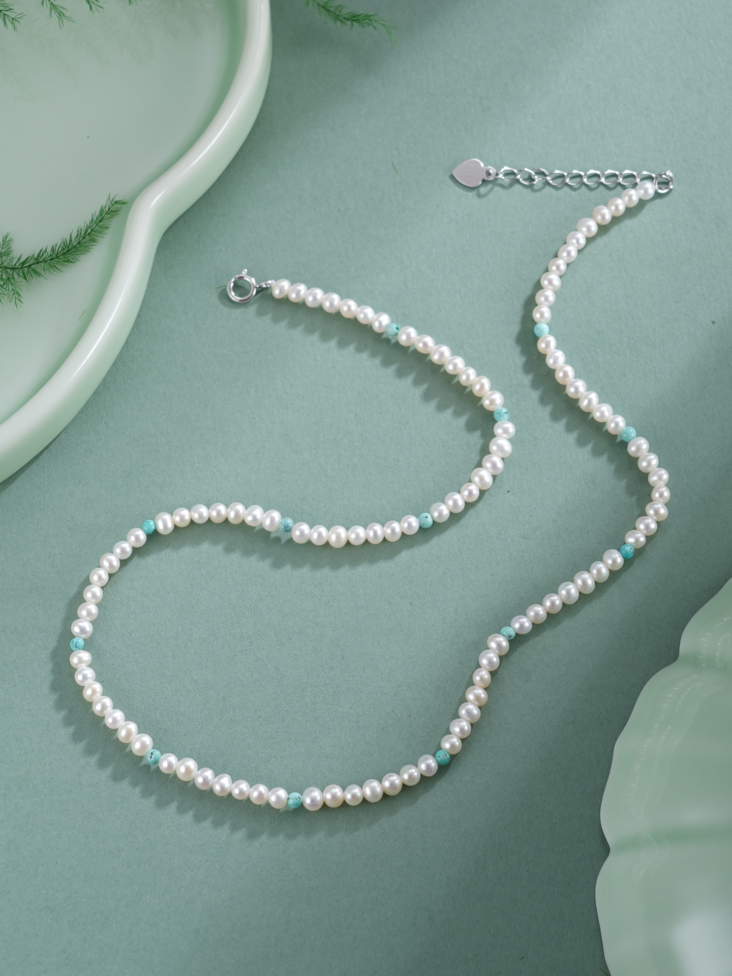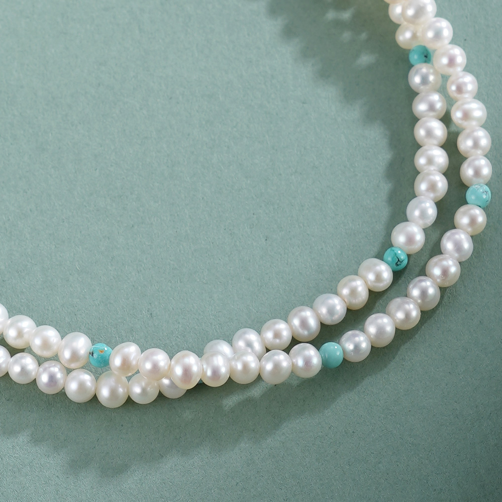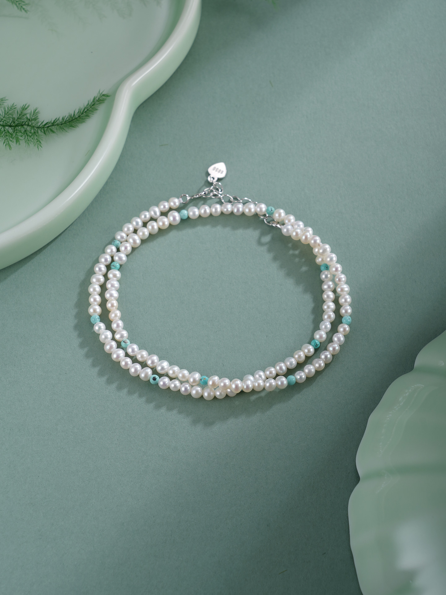 子佩集【沧海雪月】银S925珍珠惜王妃手链【QNS0025-20】3mm珠绿松石2601