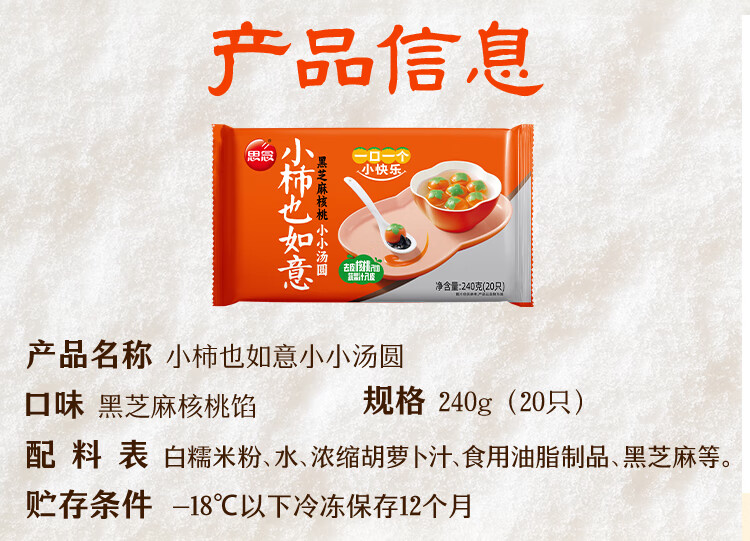 思念小柿也如意黑芝麻核桃小小汤圆240g