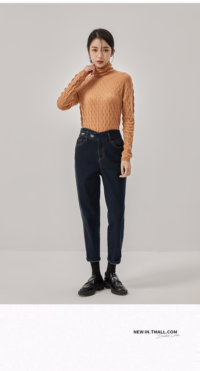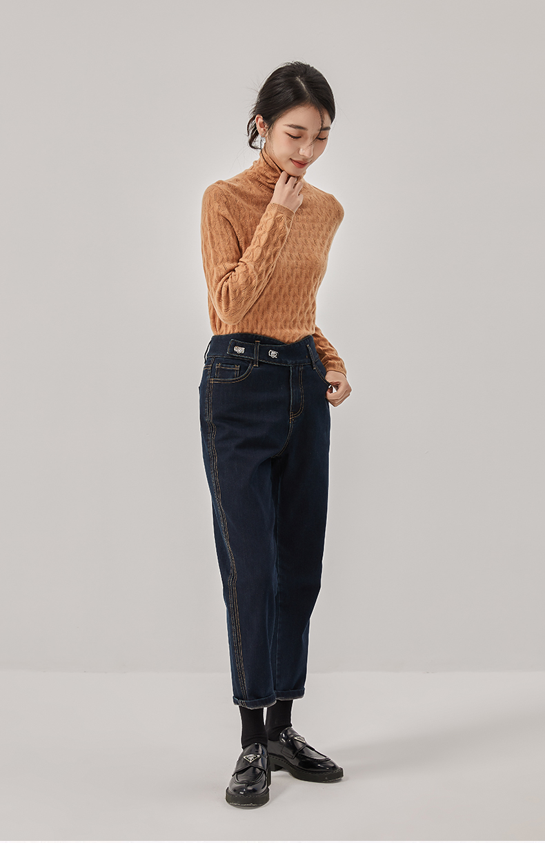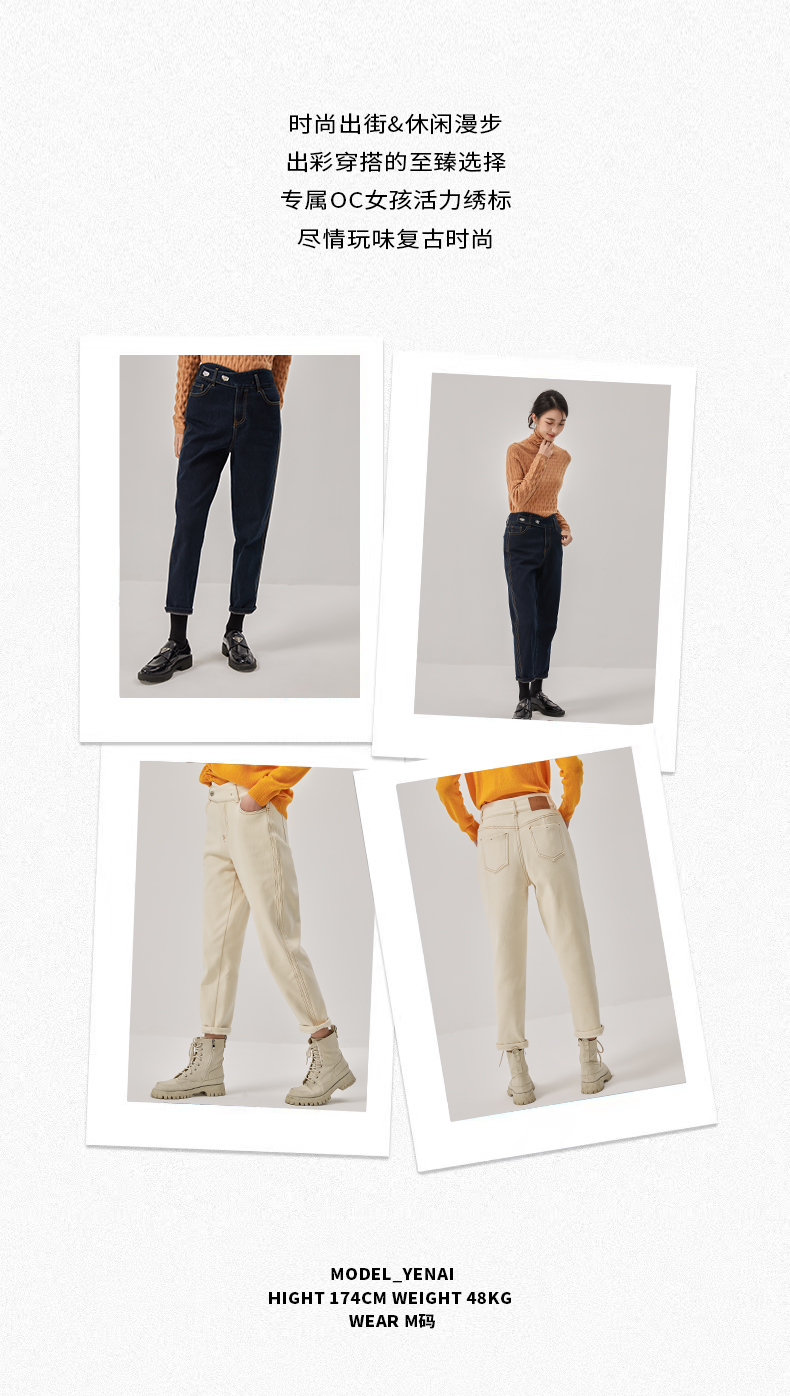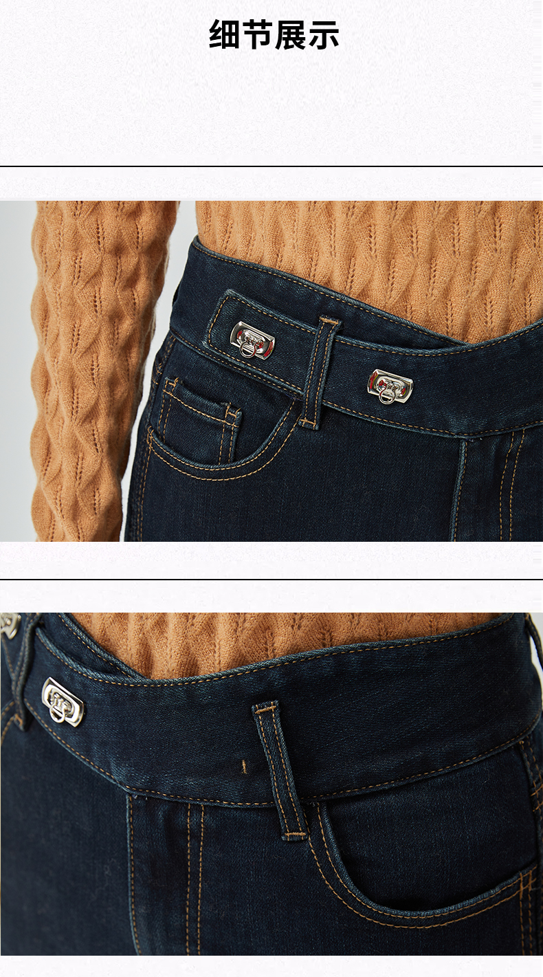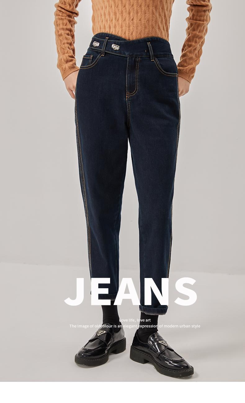 oldcolour冬季新款高腰显瘦直筒加绒九分牛仔裤女O42113223