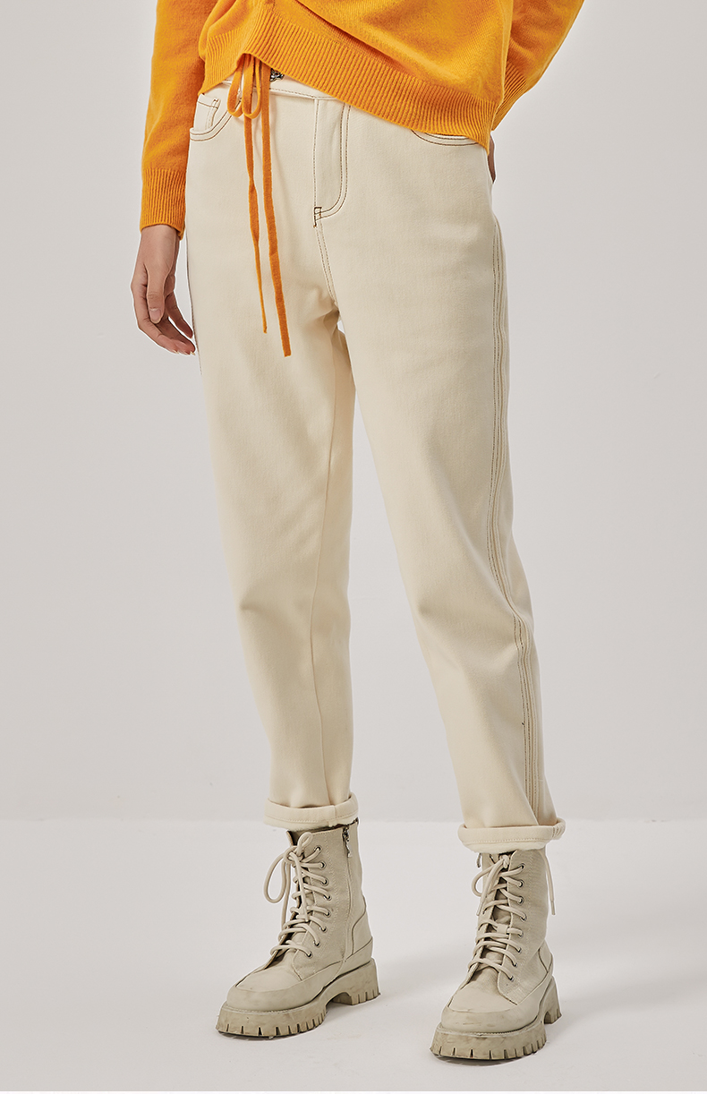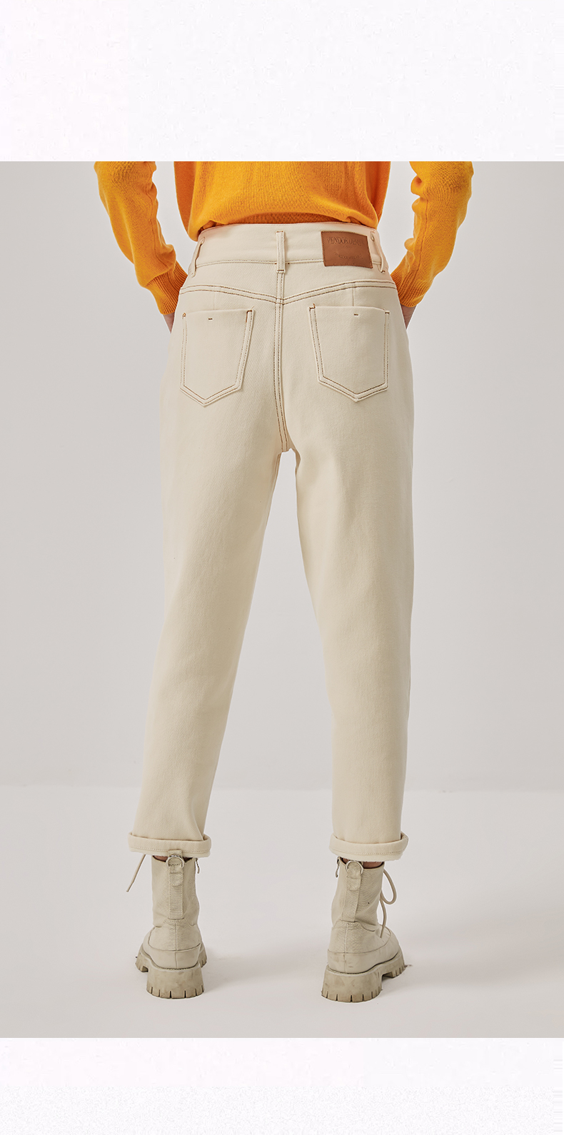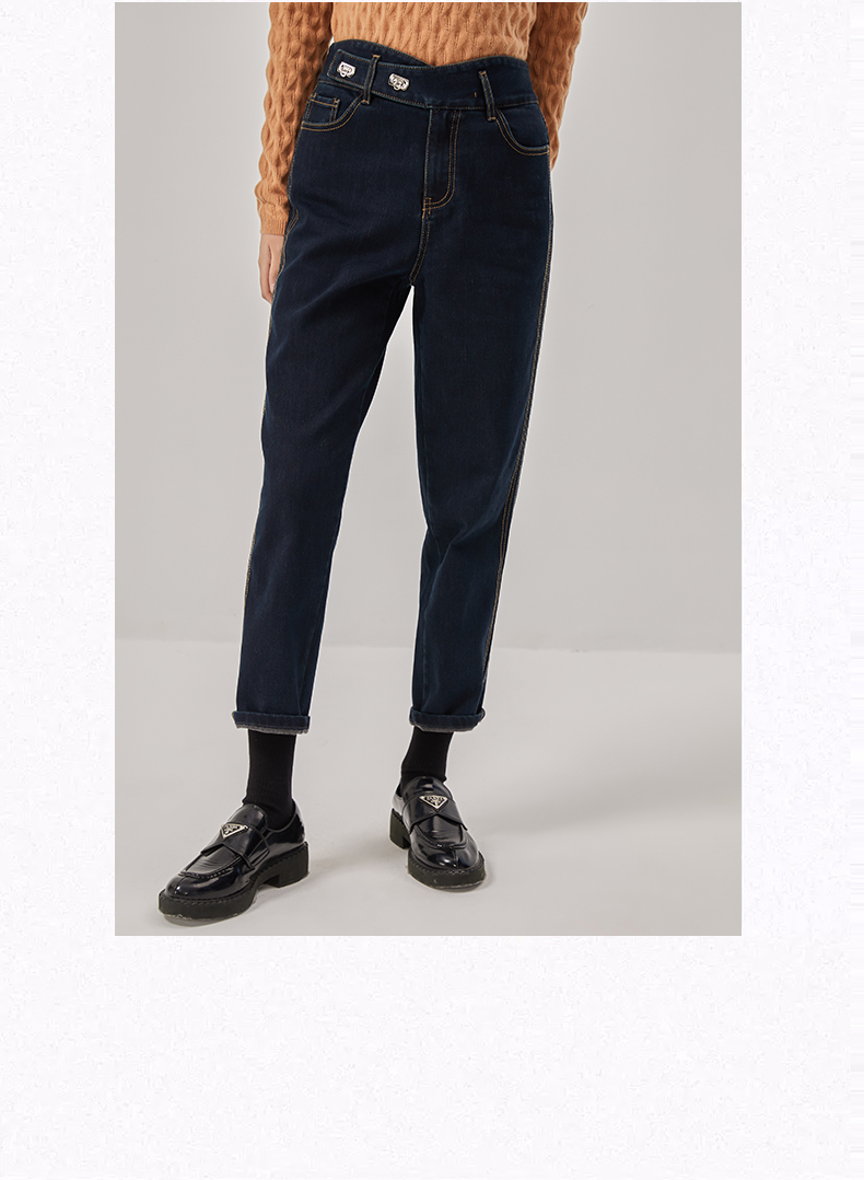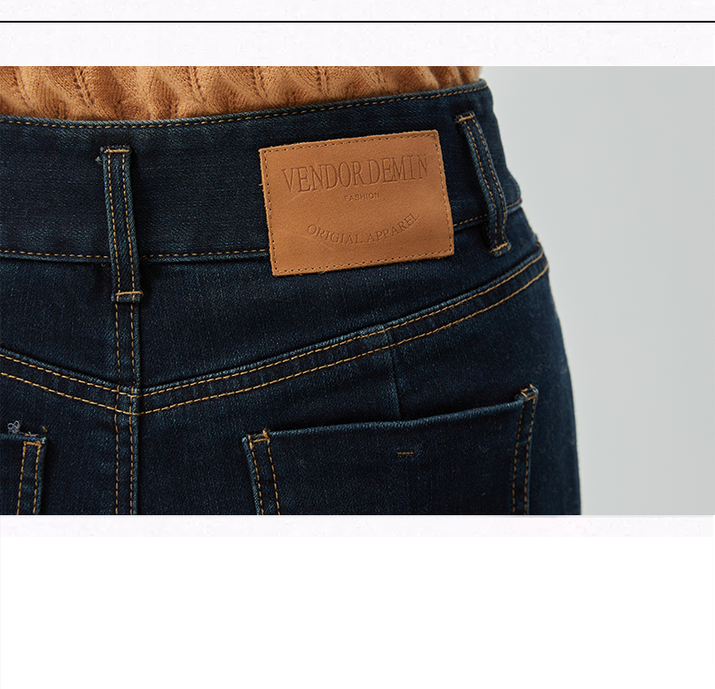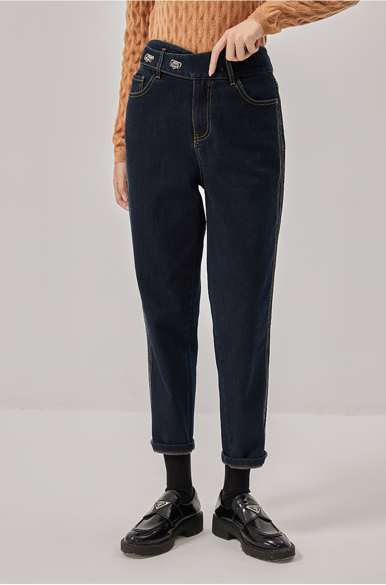 oldcolour冬季新款高腰显瘦直筒加绒九分牛仔裤女O42113223