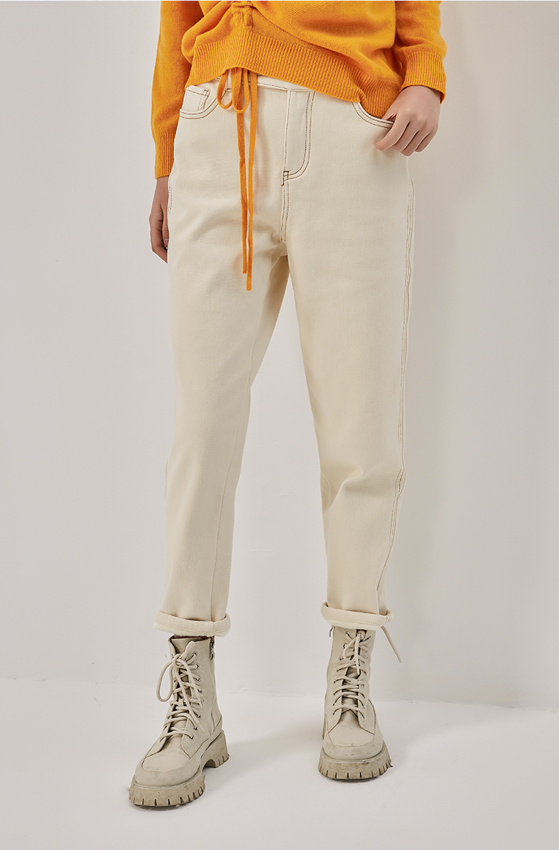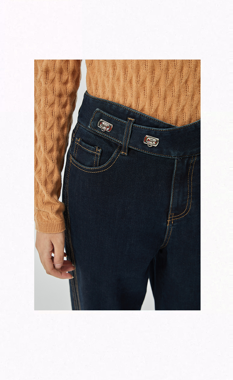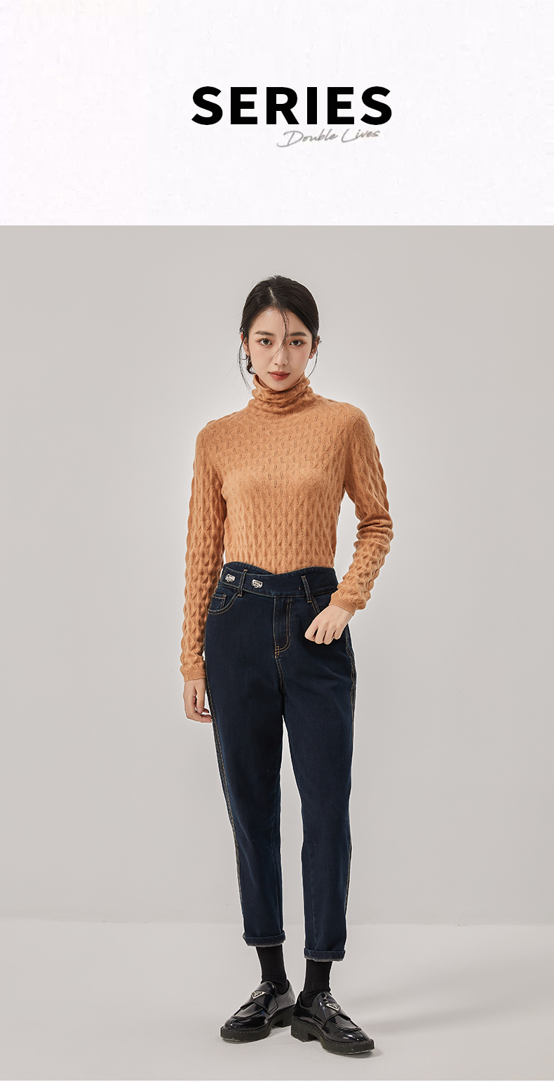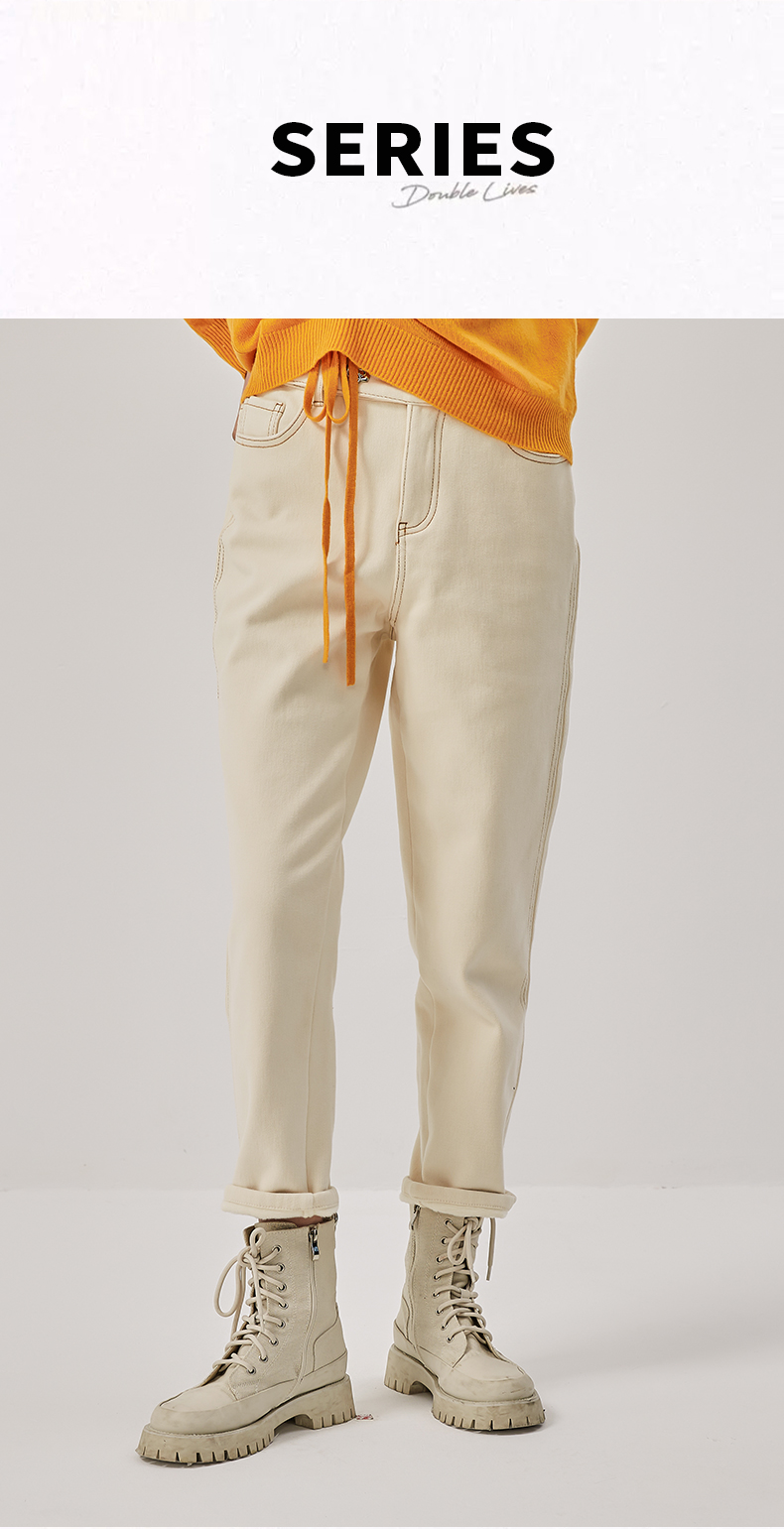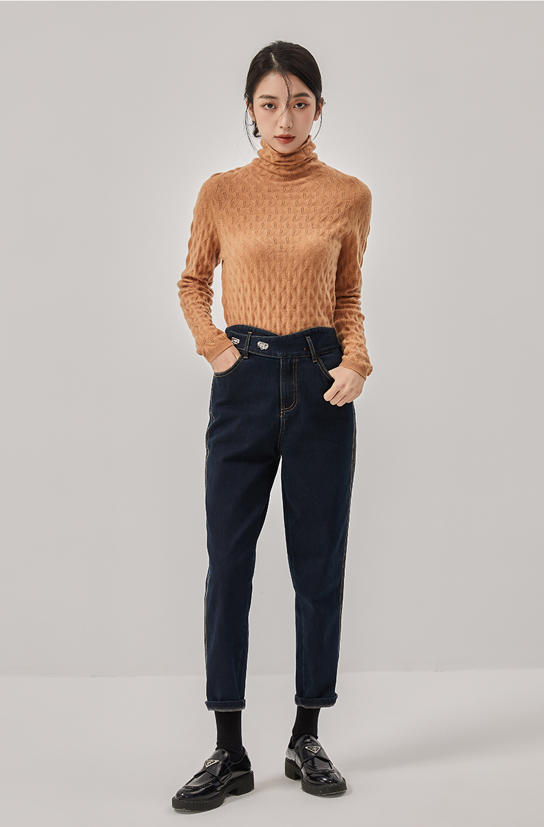 oldcolour冬季新款高腰显瘦直筒加绒九分牛仔裤女O42113223