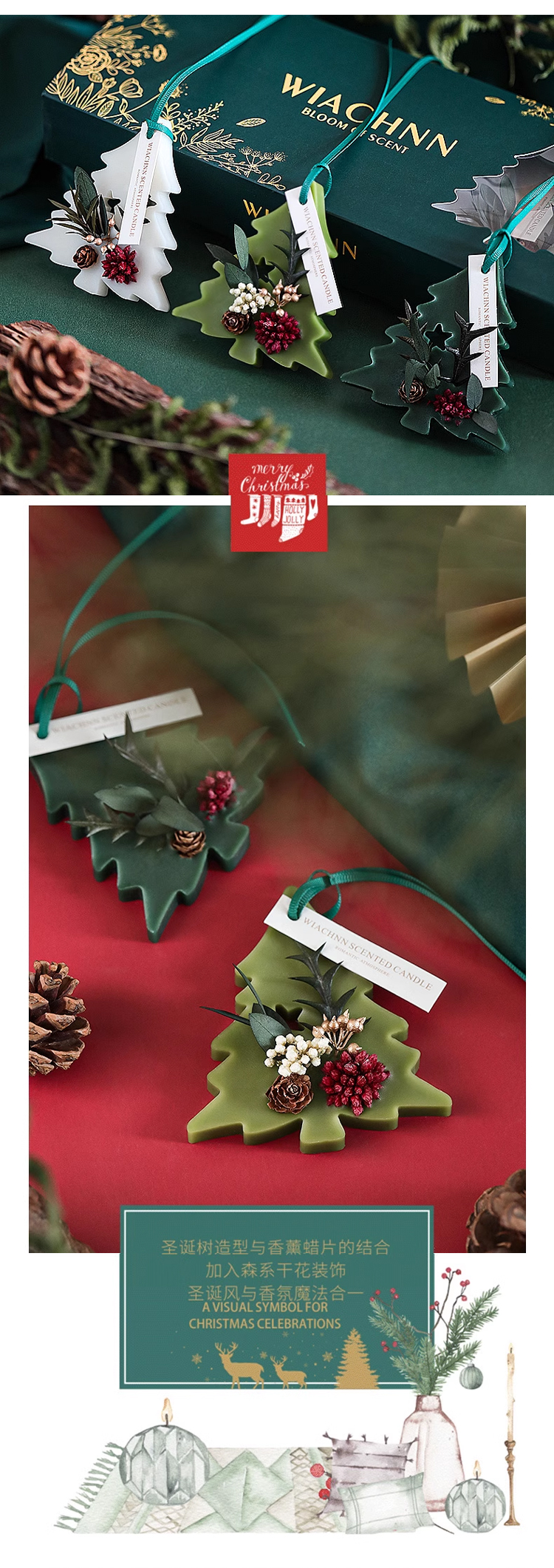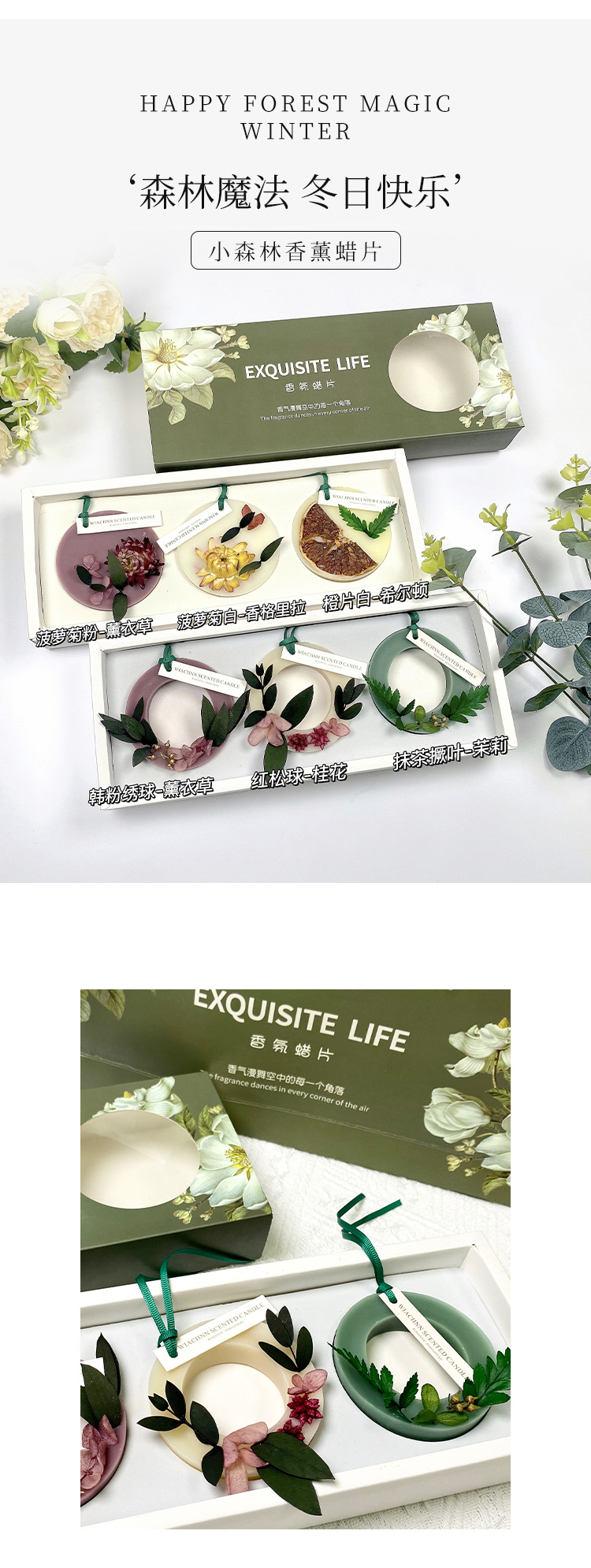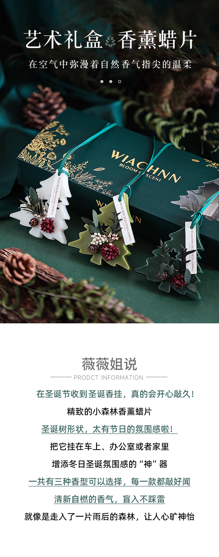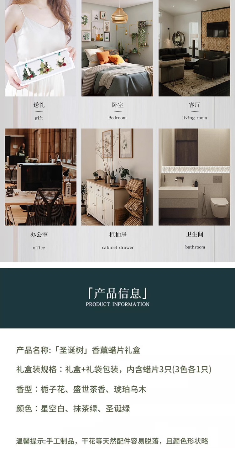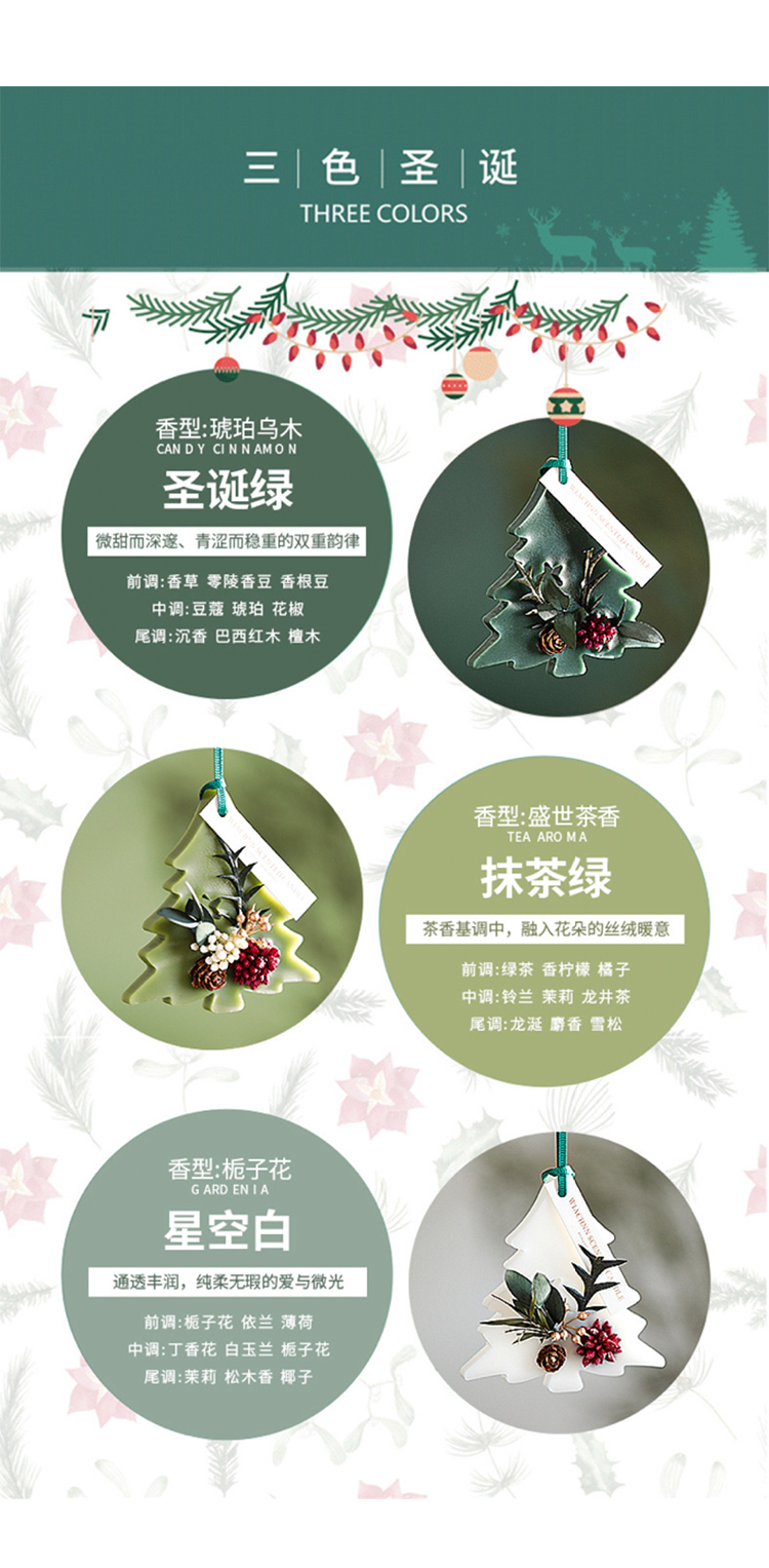 芳贝斯香薰蜡片,圣诞树形状,太有节日的氛围感啦!把它挂在车上、办公室或者家里增添冬日圣诞氛围感,共有三种香型可以选择,每一款都敲好闻清新自燃的香气,盲入不踩雷就像是走入了一片雨后的森林,让人心旷神怡