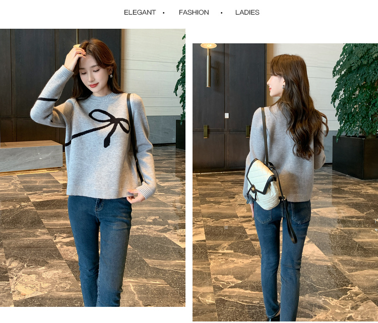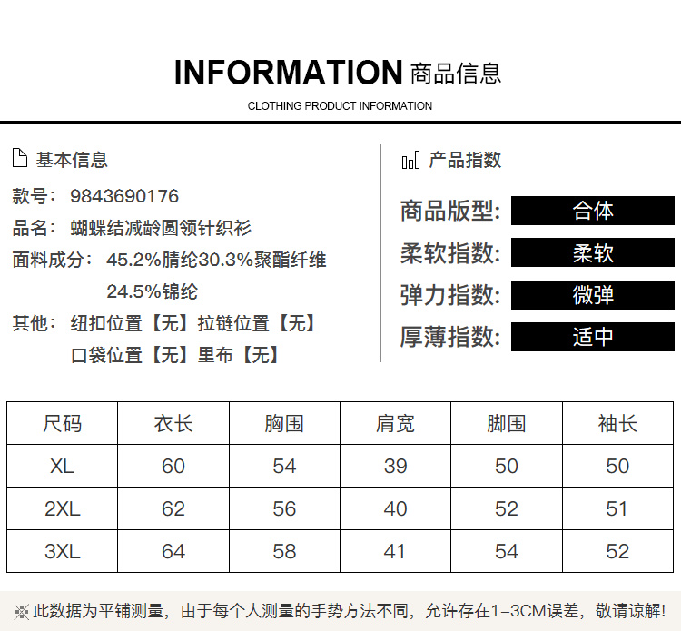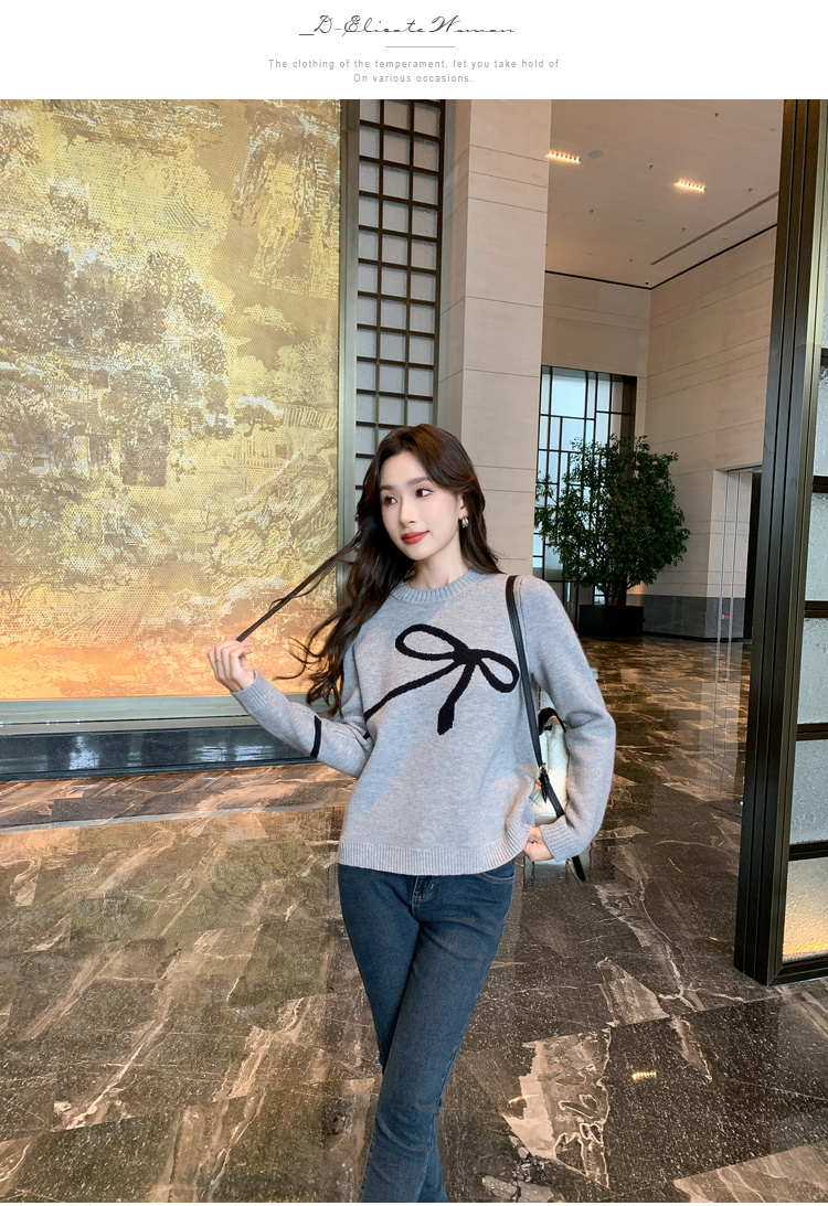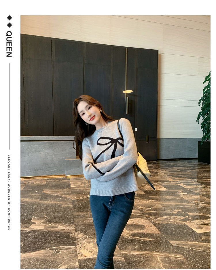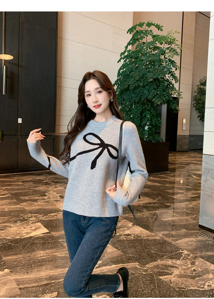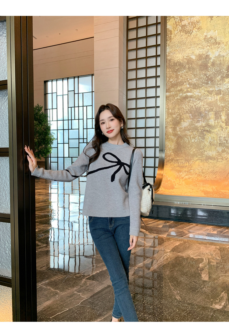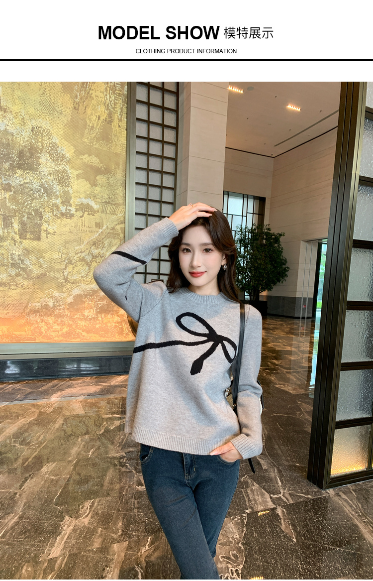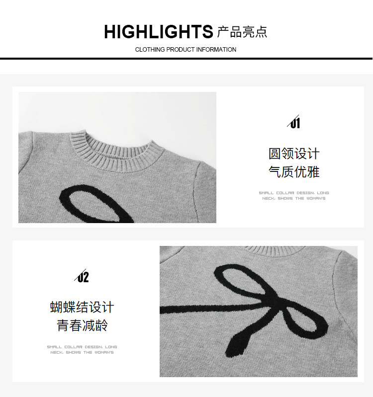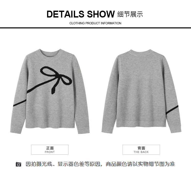 奢姿2025年秋季新款大码女装蝴蝶结休闲上衣胖妹妹减龄圆领针织衫9843690176