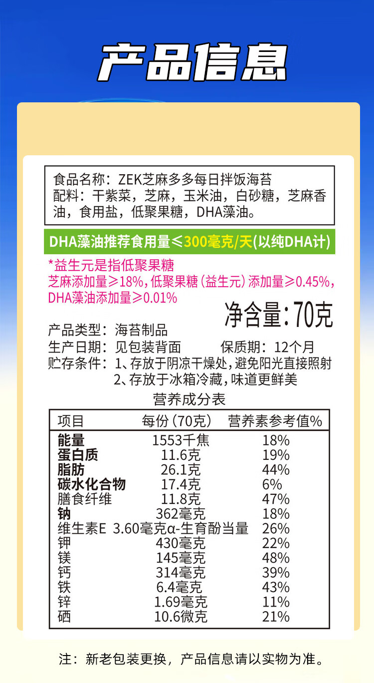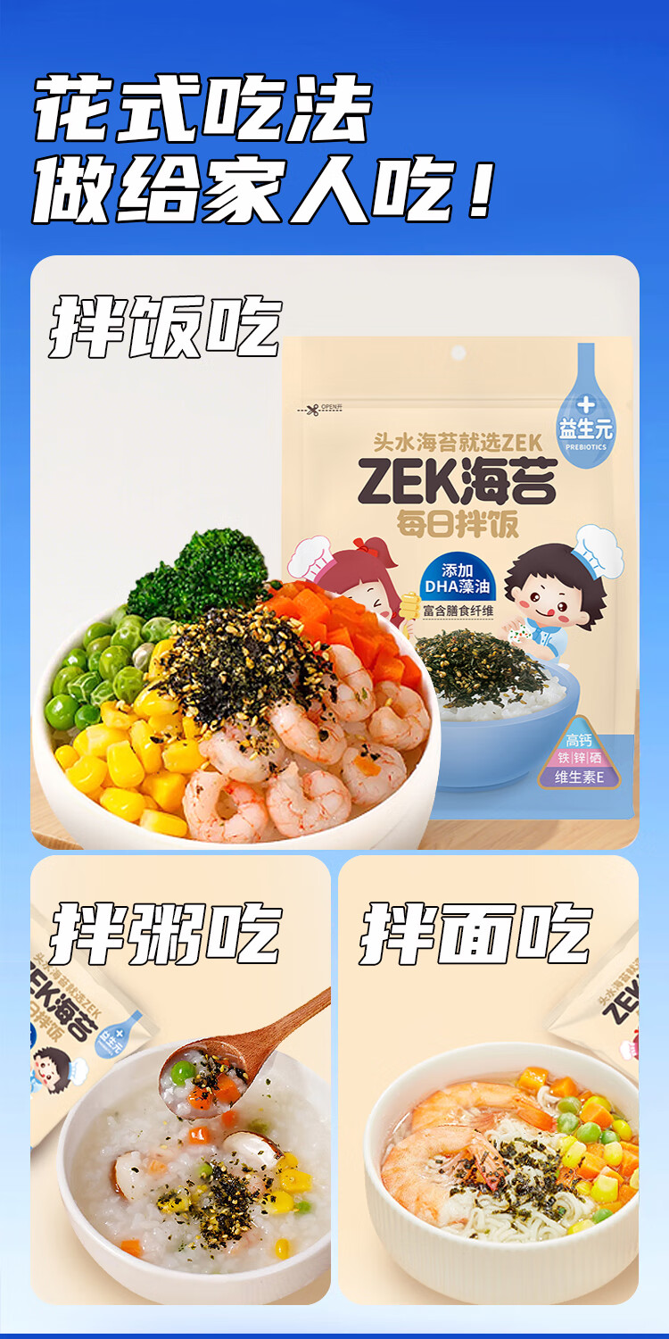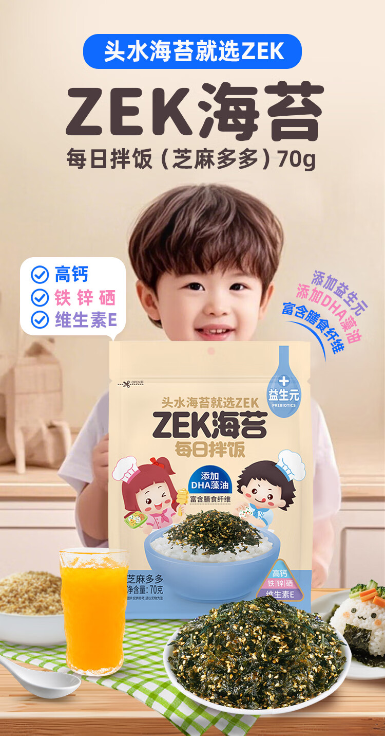 【分仓直发包邮】Zek每日拌饭芝麻多多原味海苔70g*3袋