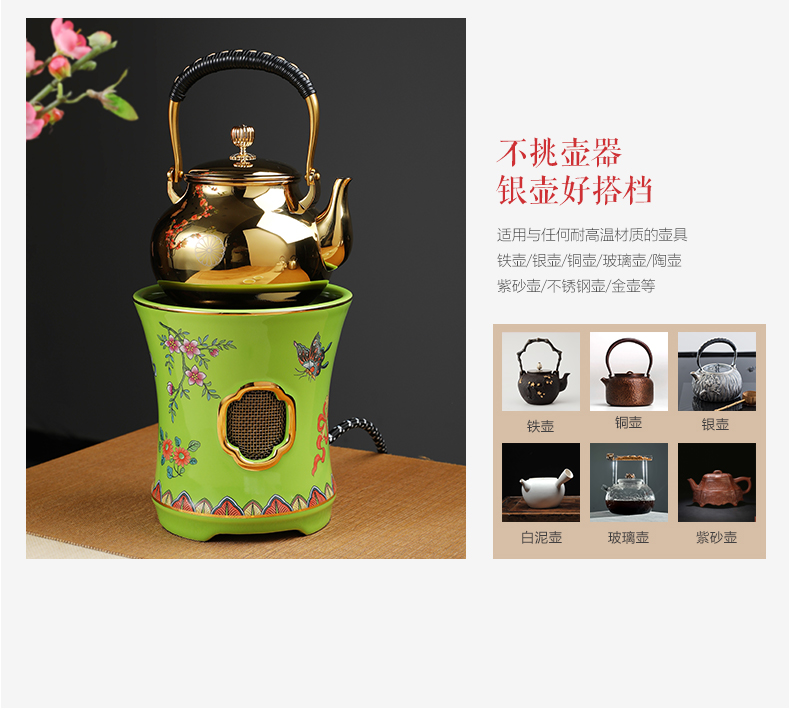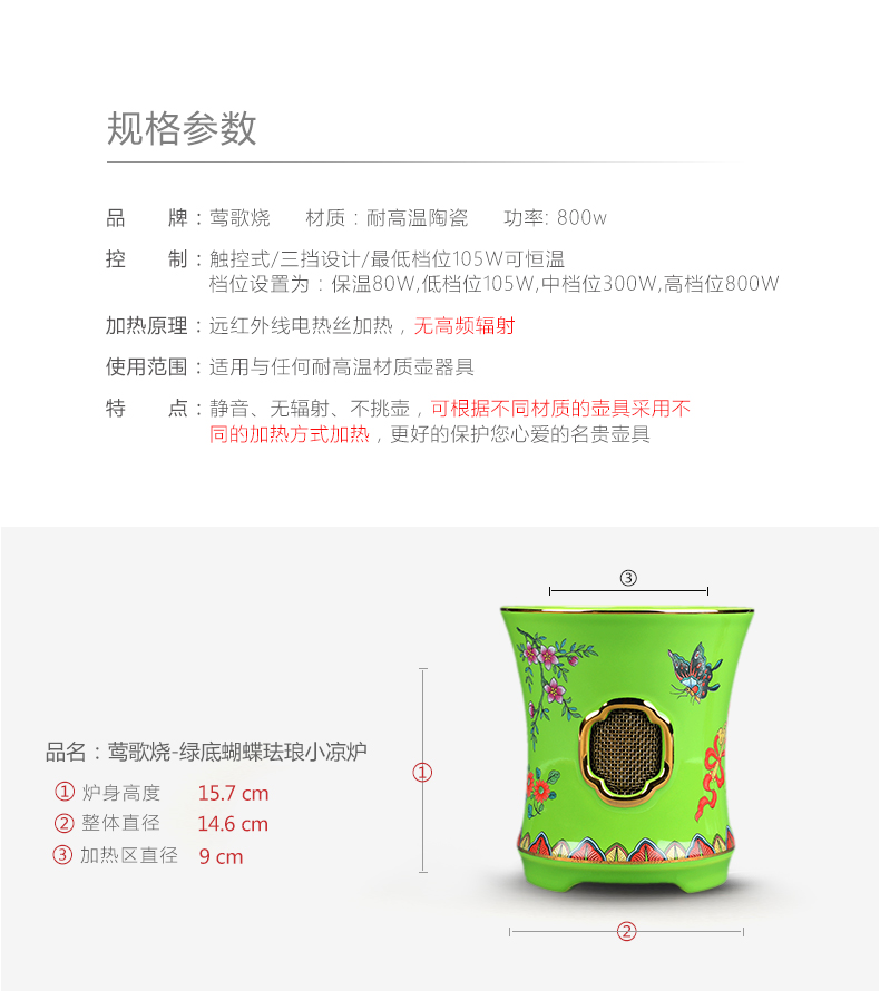 莺歌烧电陶炉家用煮茶茶炉小型铁壶银壶泡茶煮茶器蝴蝶珐琅小凉炉