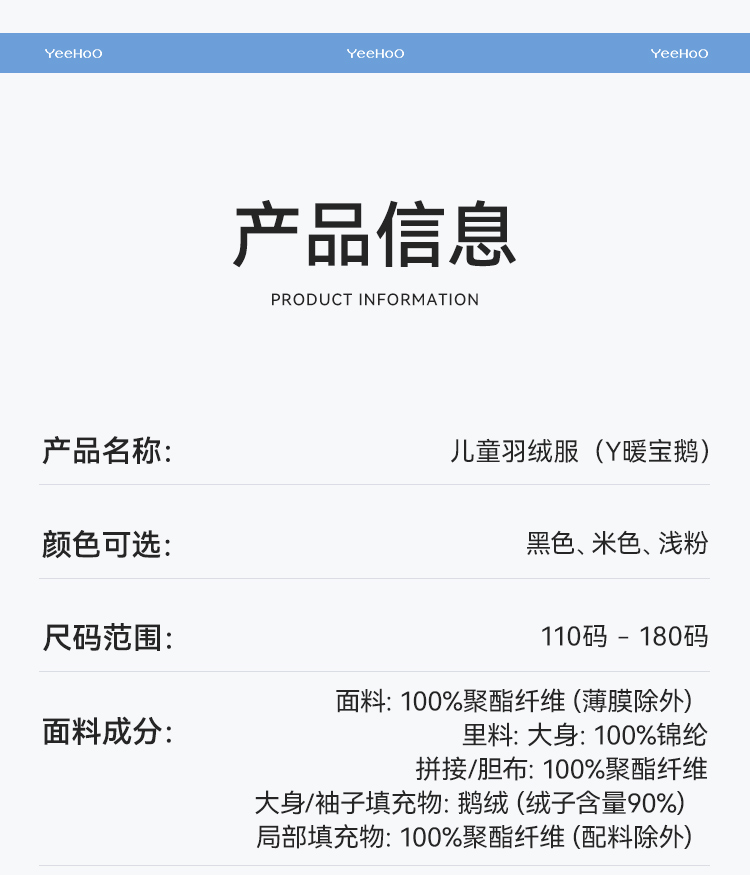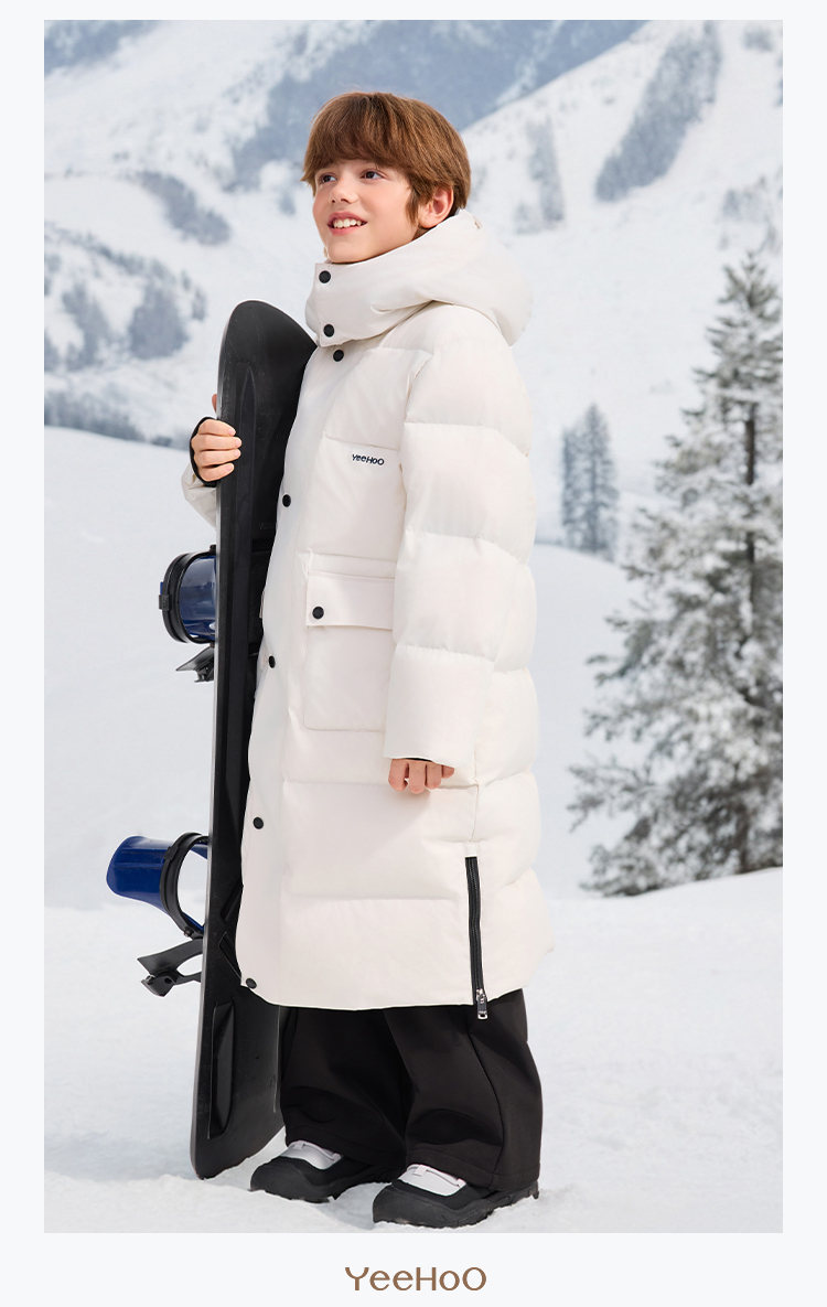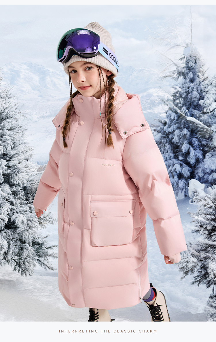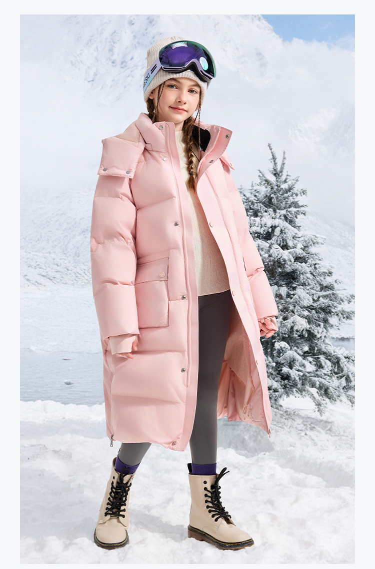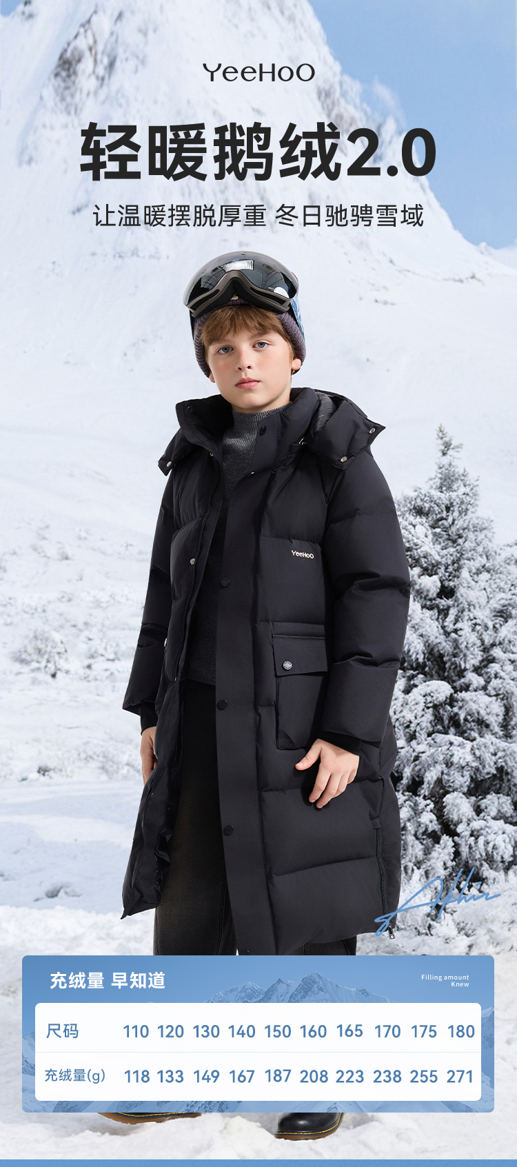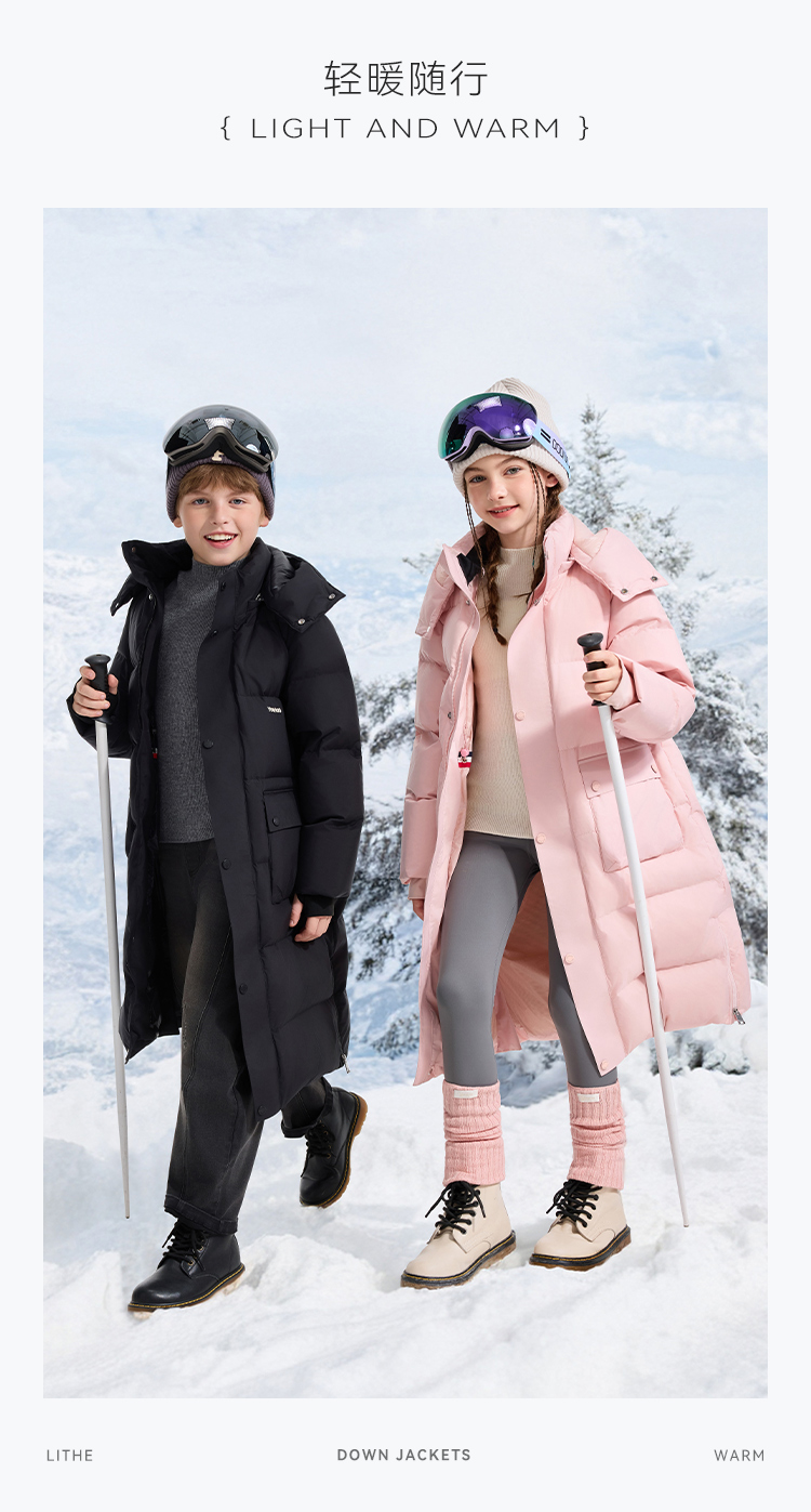 【英氏】【三防鹅绒】【110-180】男女童长款滑雪极寒保暖鹅绒服羽绒服