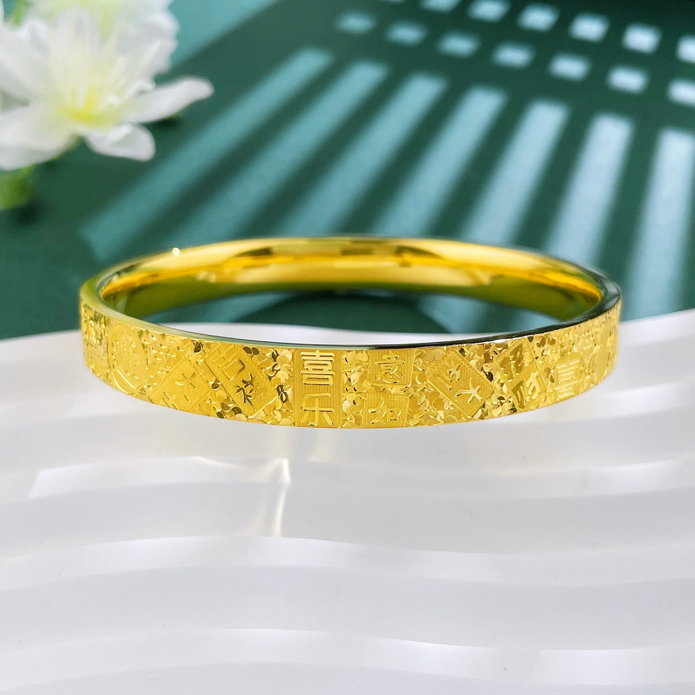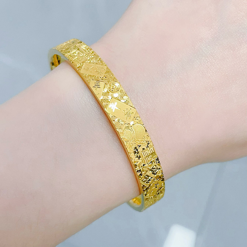 【限时克减150元】足金999.9 #招财进宝 #CNC 空心固口碎冰冰吉言手镯平安喜乐碎碎冰方镯(面宽约7.8-8.2mm)(ANWSZ00052-2),(预售产品下单后不退款不退货不换货不补差价)