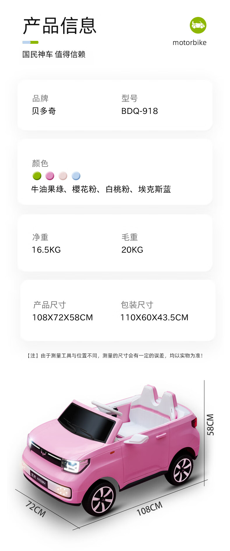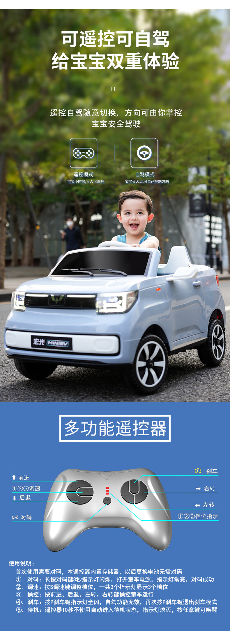 贝多奇五菱宏光mini儿童电动车遥控汽车 BDQ