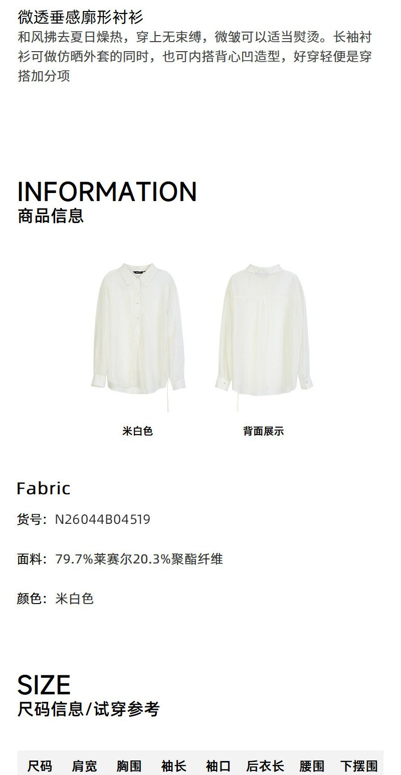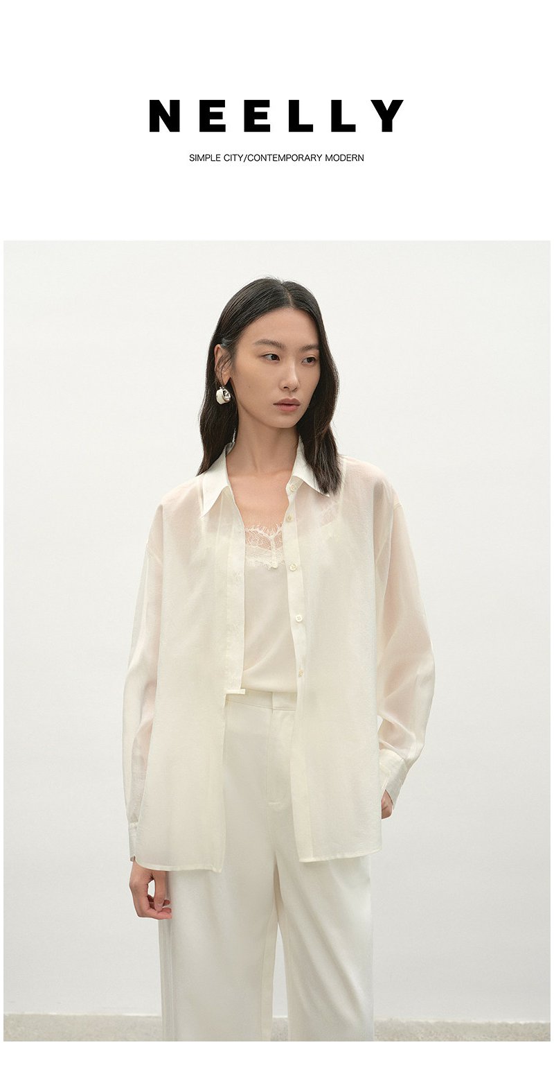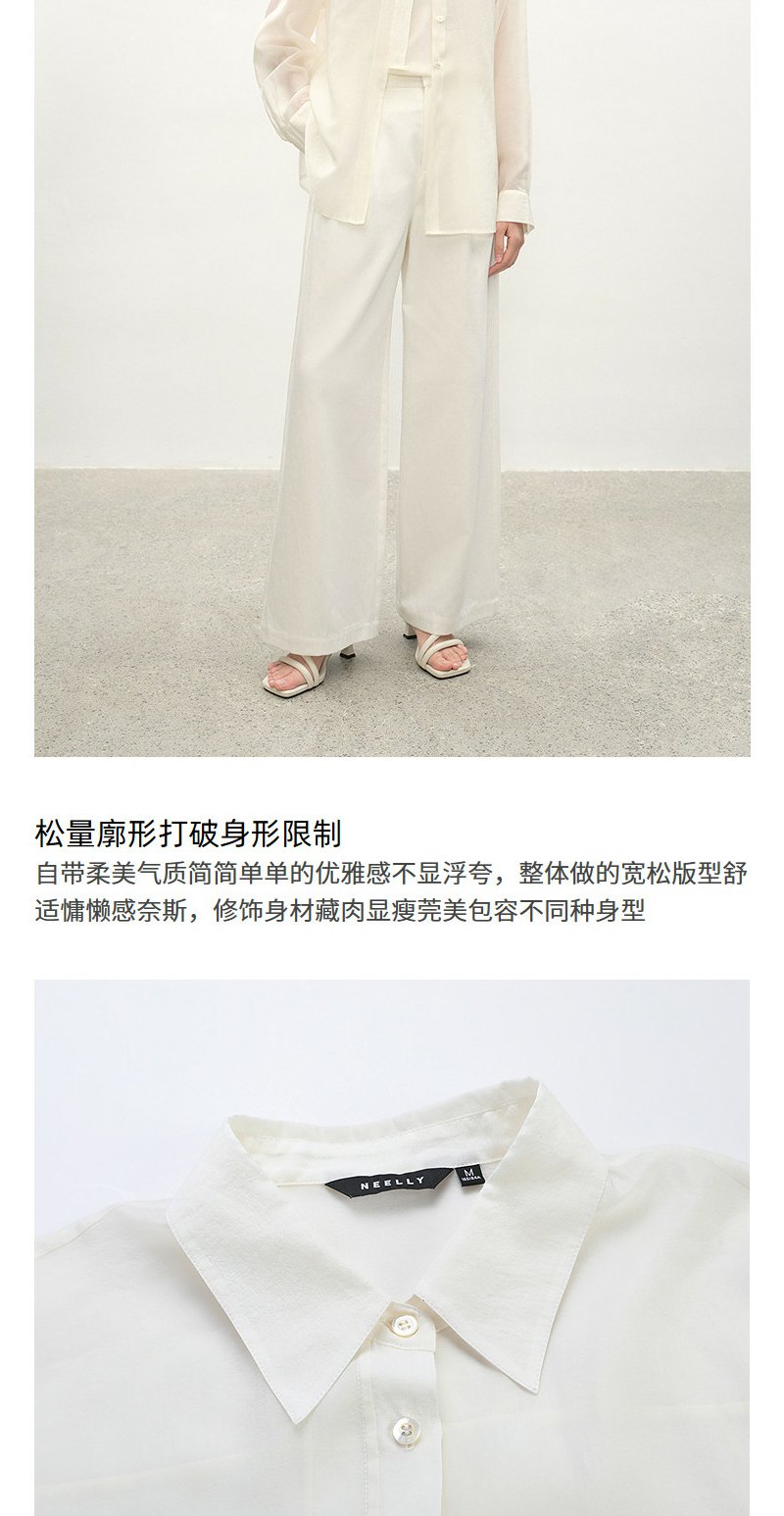 NEELLY纳俪商场同款夏季新款浅色垂感简约衬衫女时尚收腰显瘦上衣N26044B04519