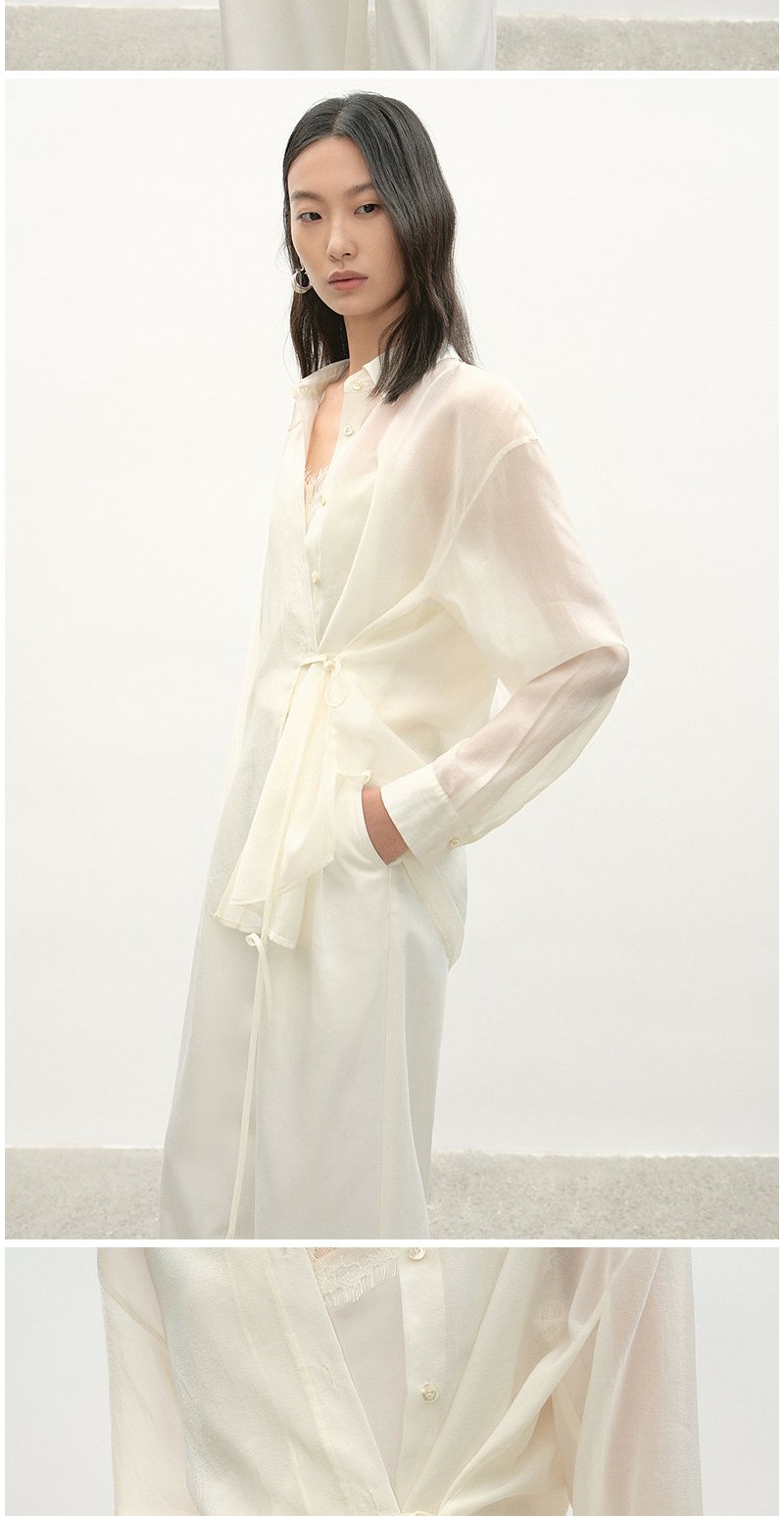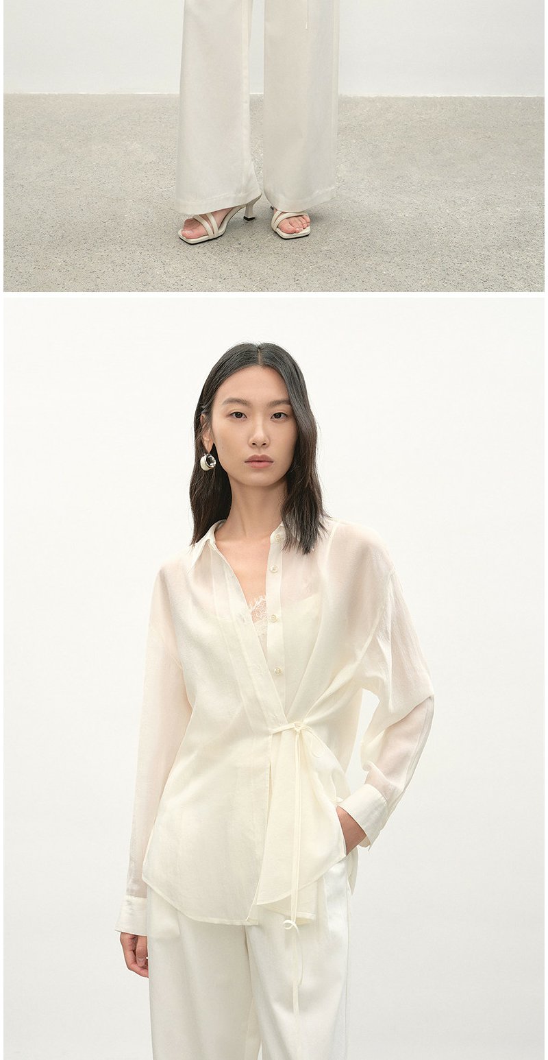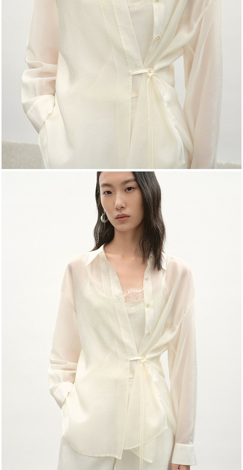 NEELLY纳俪商场同款夏季新款浅色垂感简约衬衫女时尚收腰显瘦上衣N26044B04519