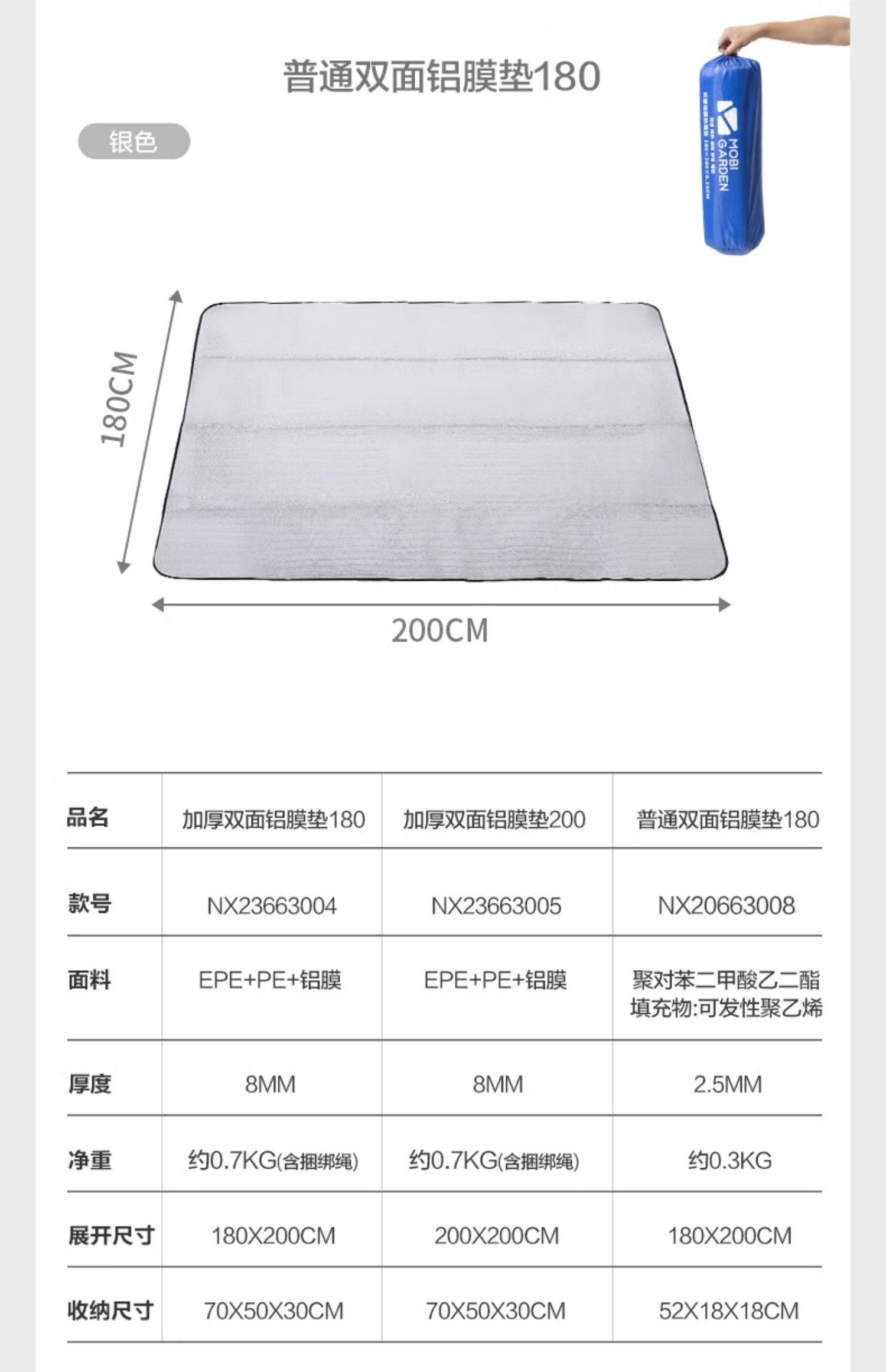 牧高笛双面铝膜防潮垫加大加厚防潮户外防水地垫野餐垫沙滩帐篷垫