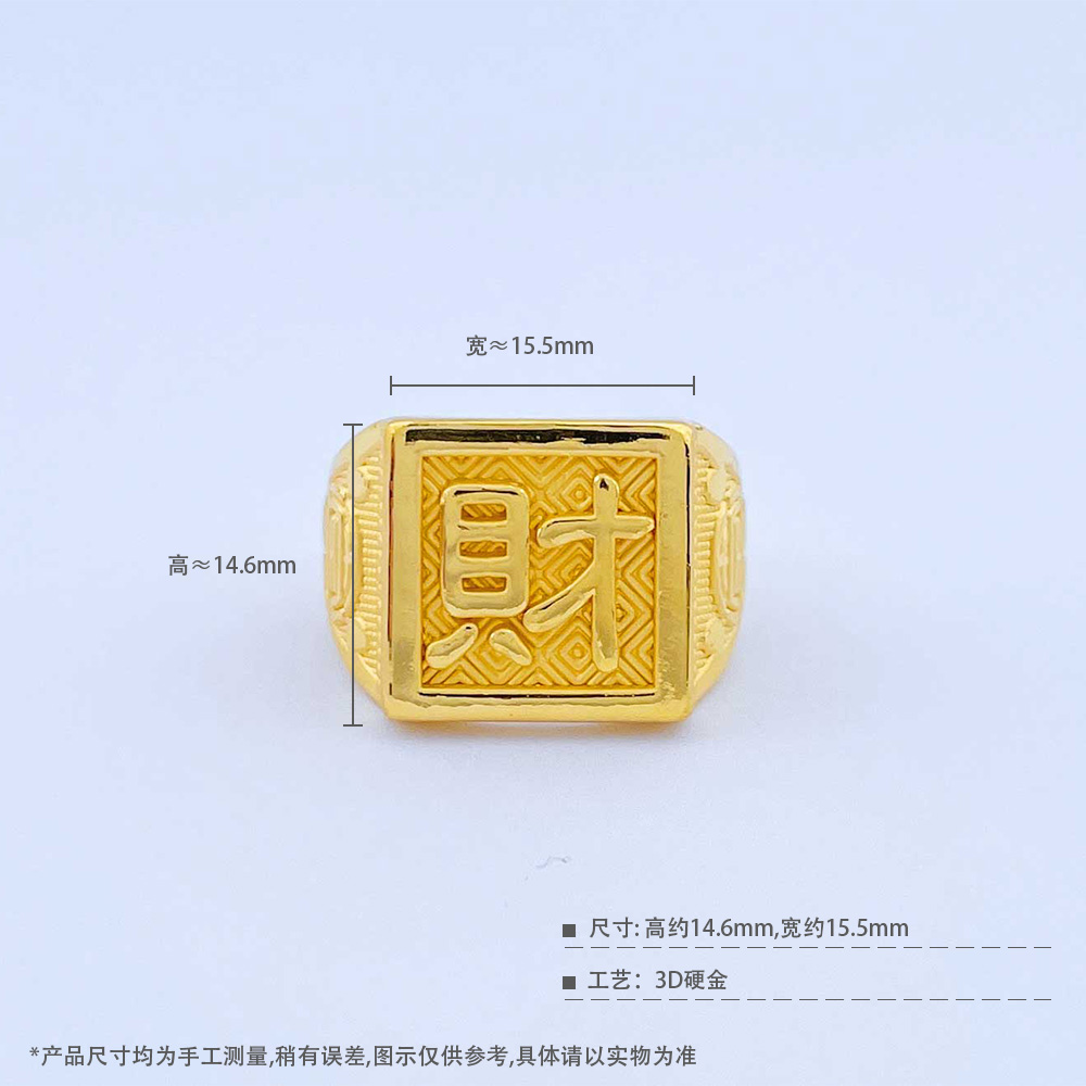【限时克减150元】足金 3D硬金空心固口财字男戒财字方戒指(V3DJZ00006)(预售产品下单后不退款不退货不换货不补差价)(预售产品下单后不退款不退货不换货不补差价)