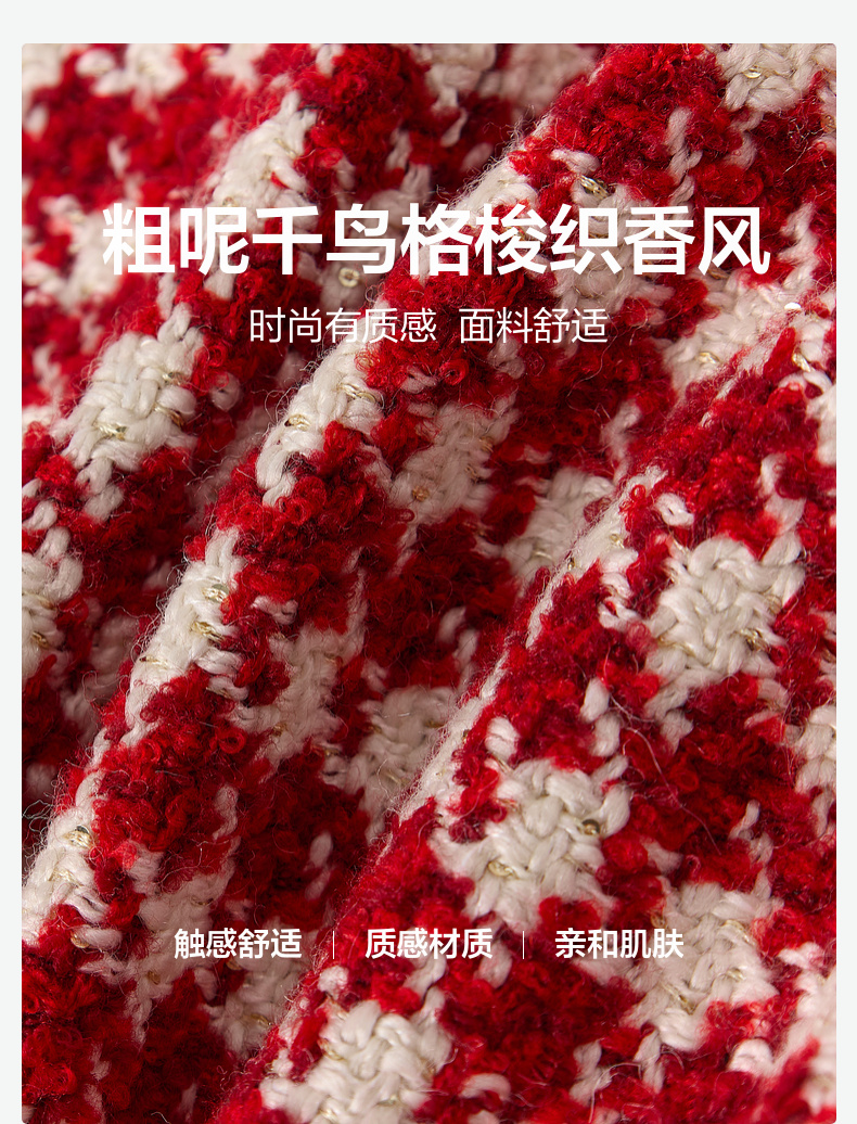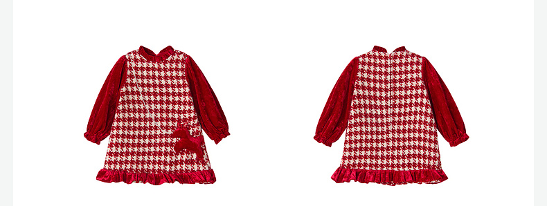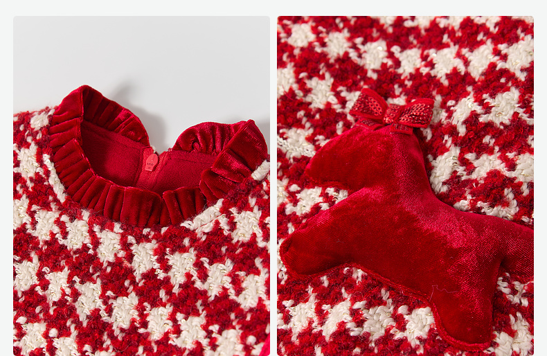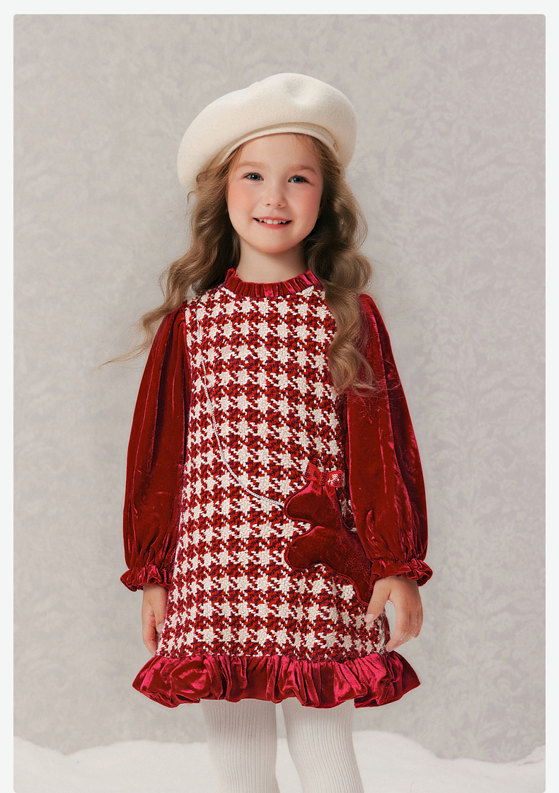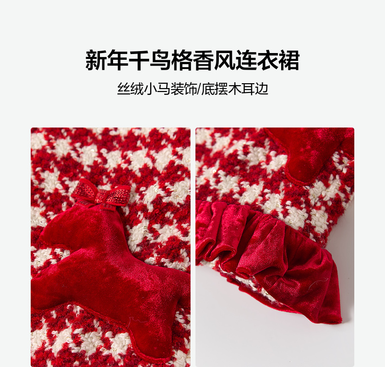 笛莎Deesha 童装女童连衣裙2025冬新款新年干鸟格香风连衣裙