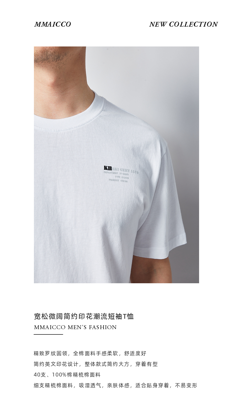 墨麦客男装2021夏季新款圆领简约印花短袖T恤男宽松全棉体恤70123