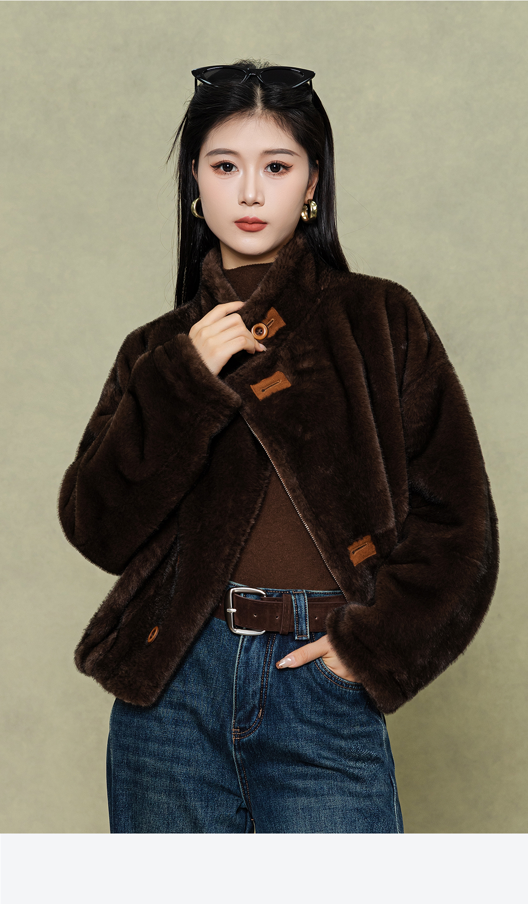冬上新复古通勤焦糖棕麂皮毛绒外套2254132 商品图2